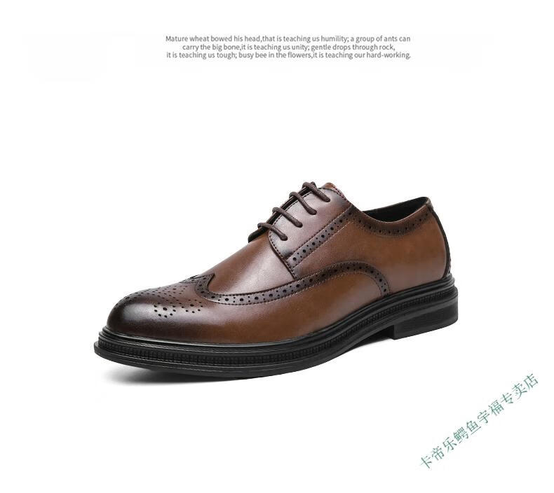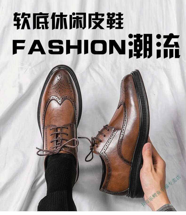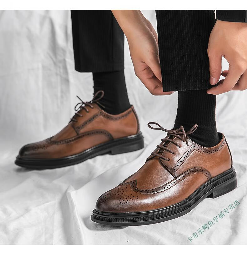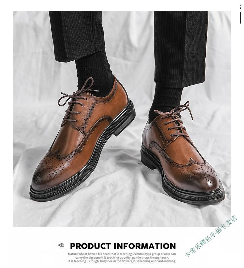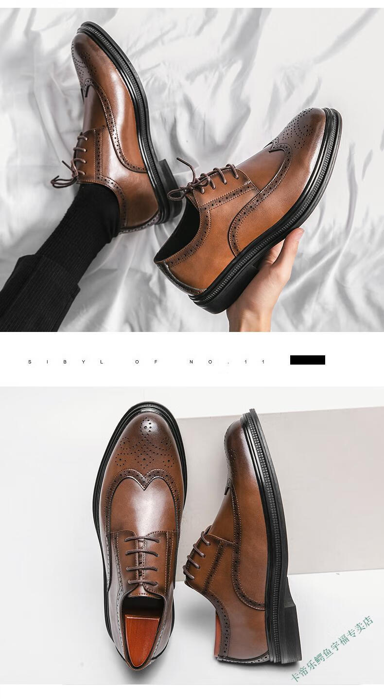 CARTELO Crocodile Brogue Leather Small Leather Shoes Men's Business Formal Casual Dad Leather Shoes Men's Young Men British Style Retro Brown Upgraded Model 41