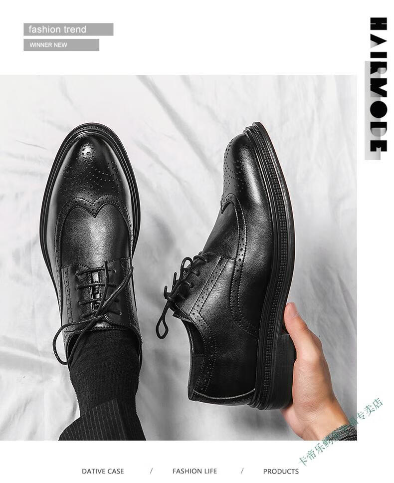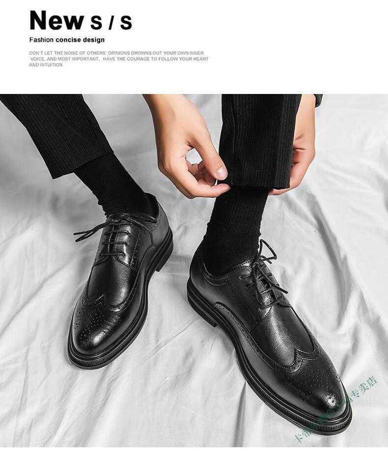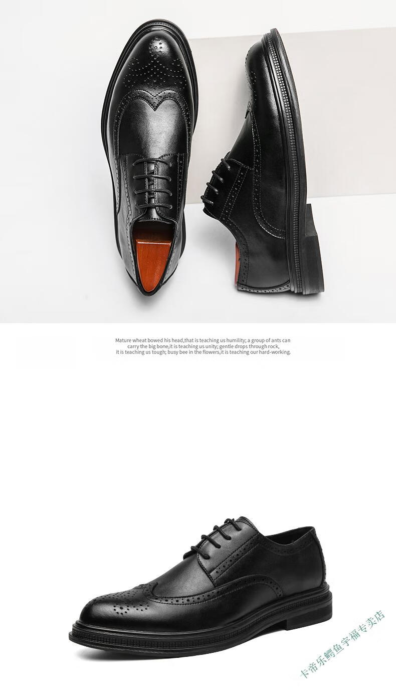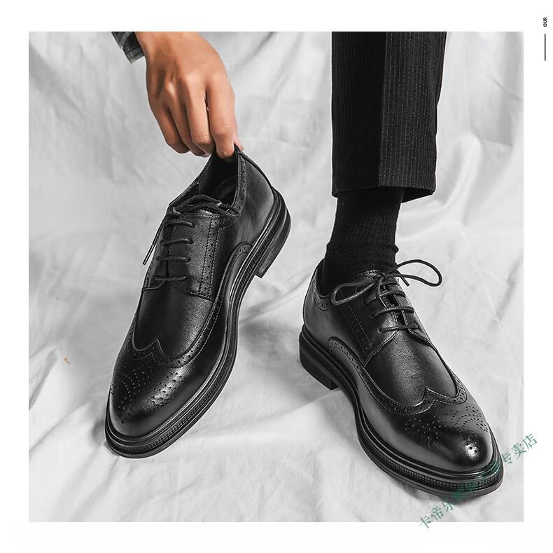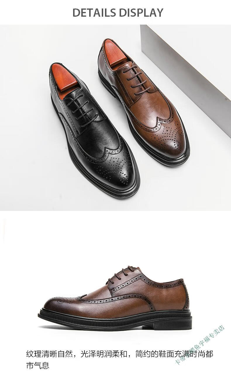 CARTELO Crocodile Brogue Leather Small Leather Shoes Men's Business Formal Casual Dad Leather Shoes Men's Young Men British Style Retro Brown Upgraded Model 41