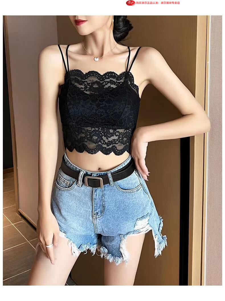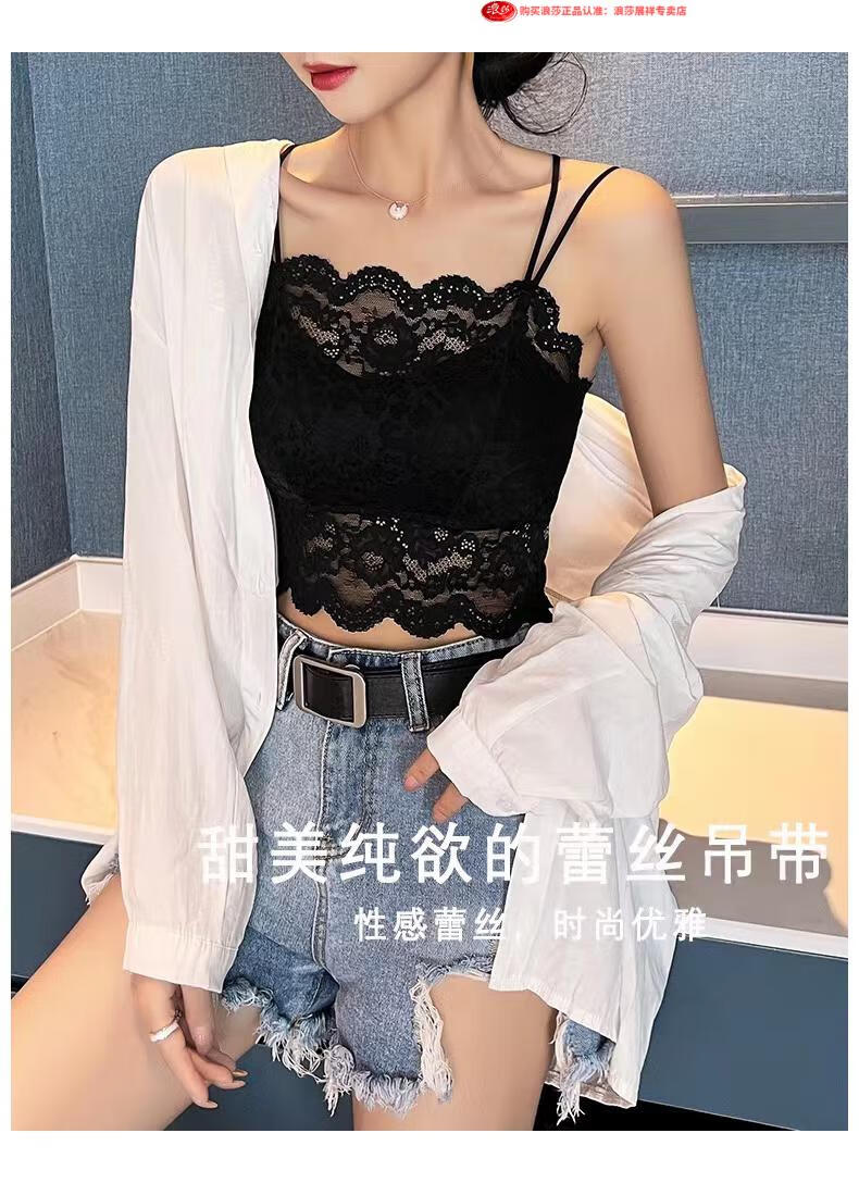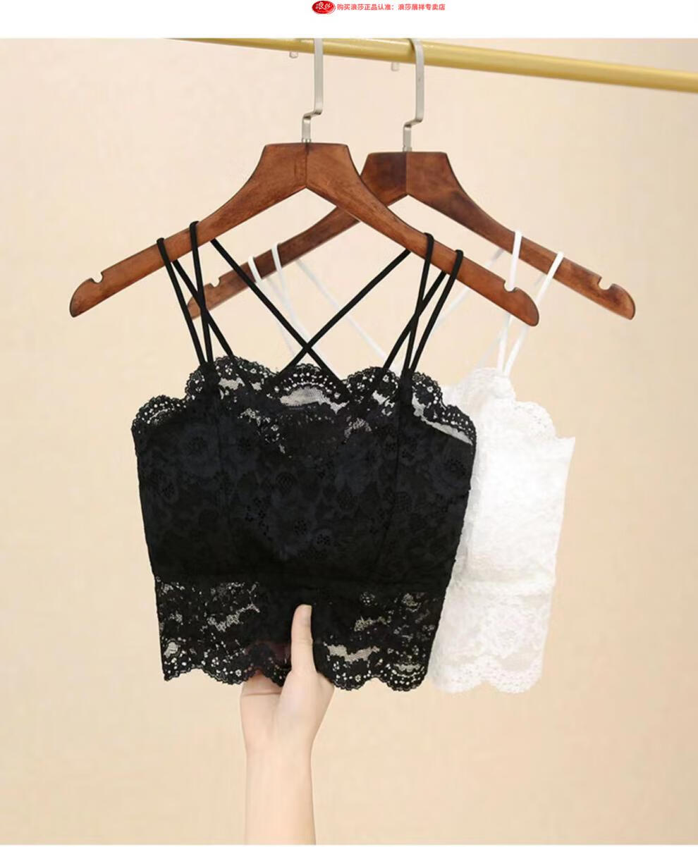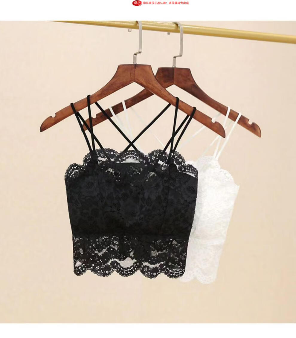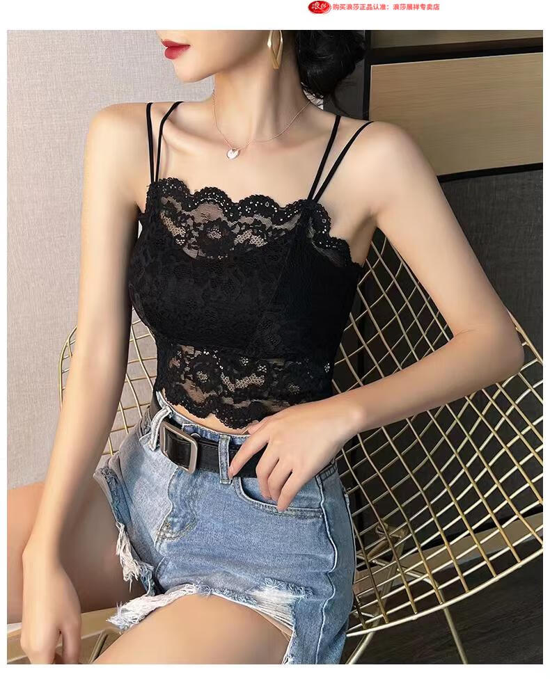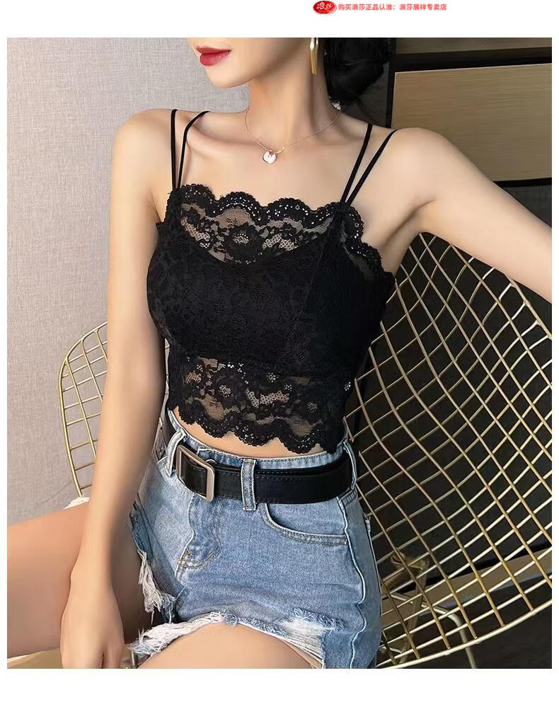 LangSha Light luxury high-end lace bra camisole for women with beautiful back underwear to prevent exposure summer thin tube top outer wear black M