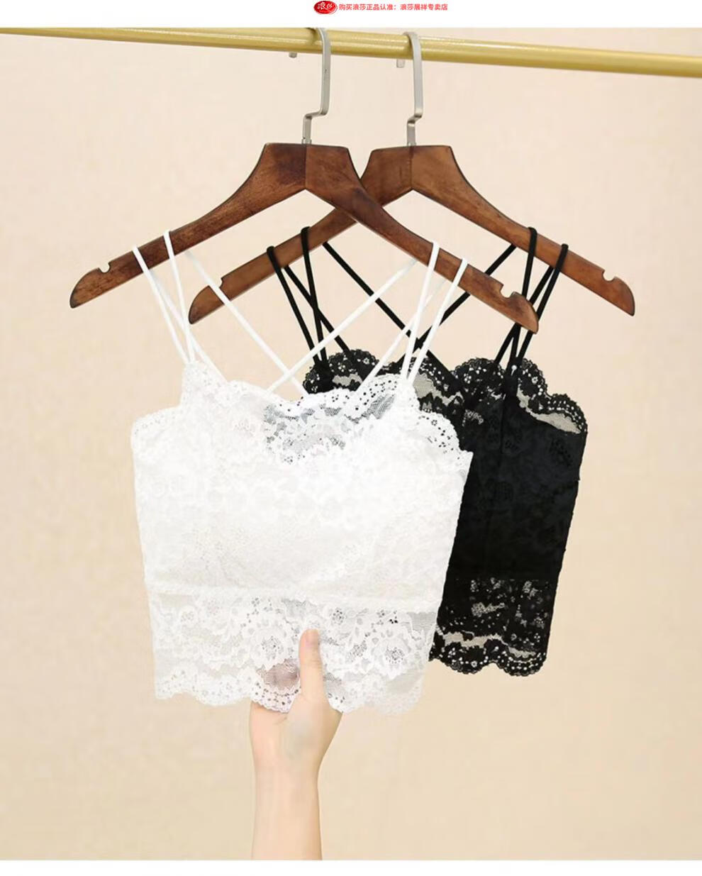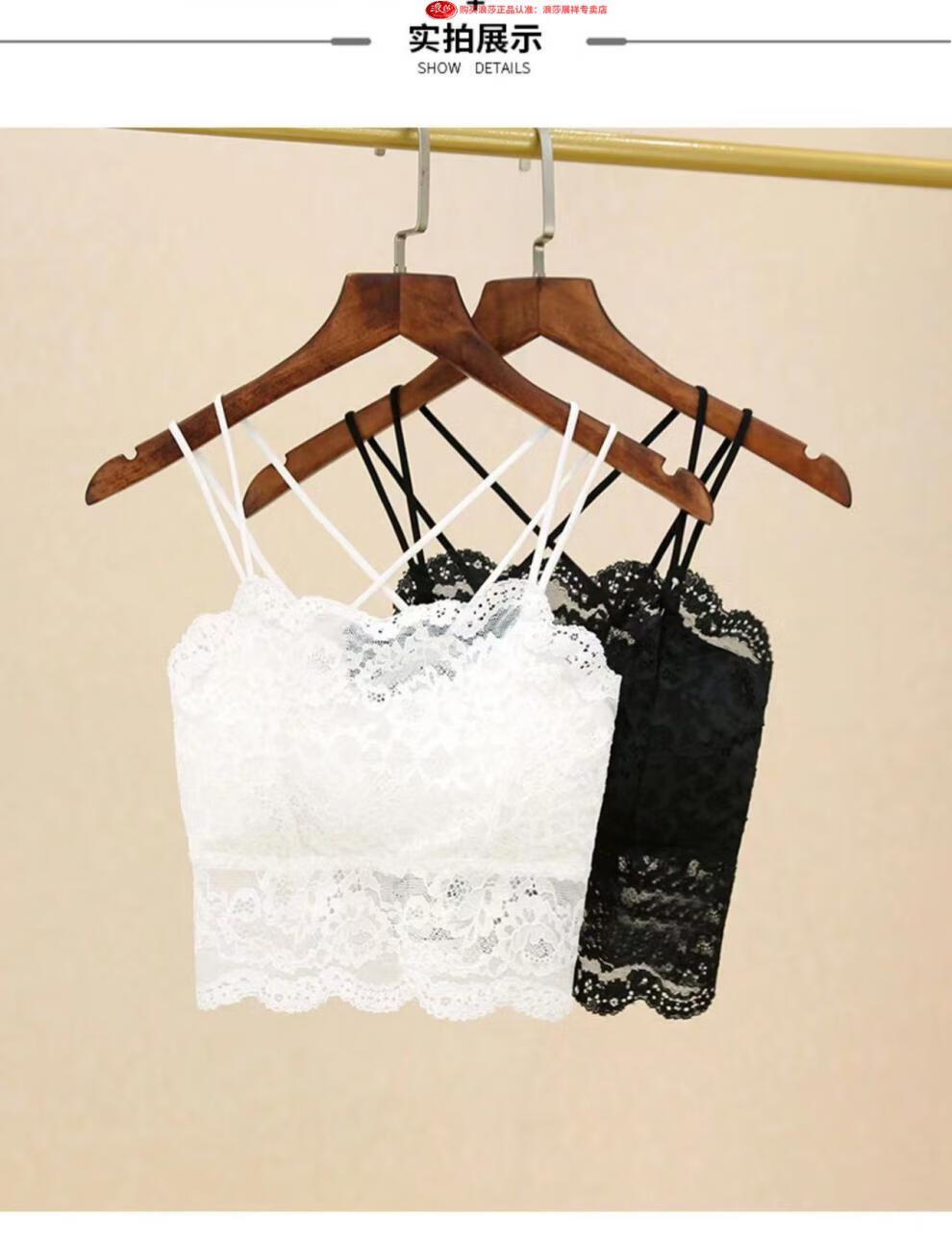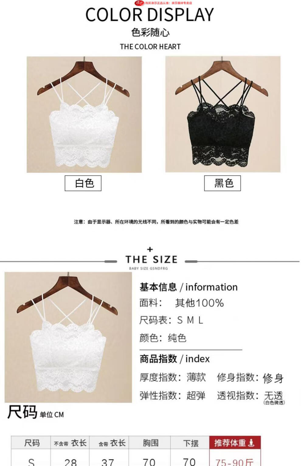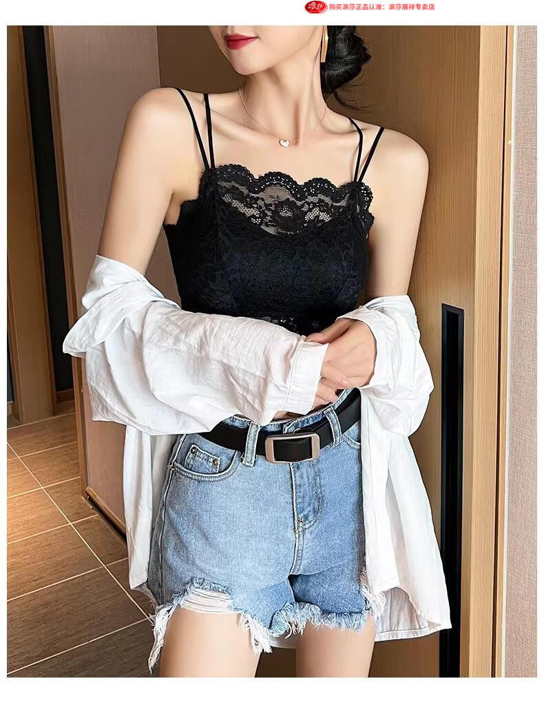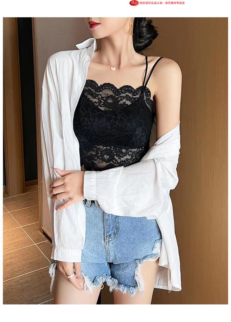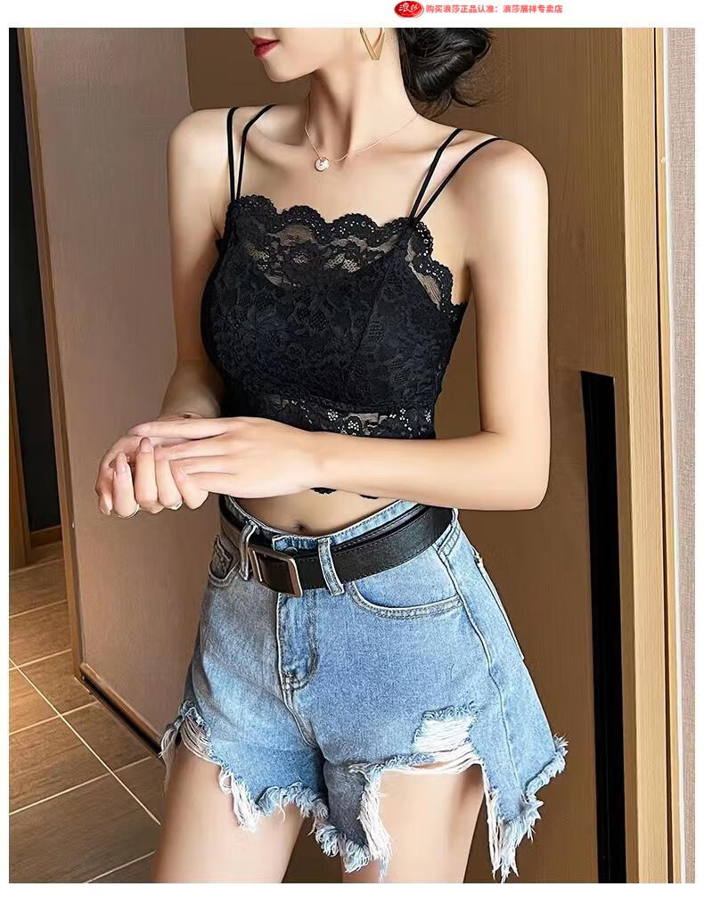 LangSha Light luxury high-end lace bra camisole for women with beautiful back underwear to prevent exposure summer thin tube top outer wear black M