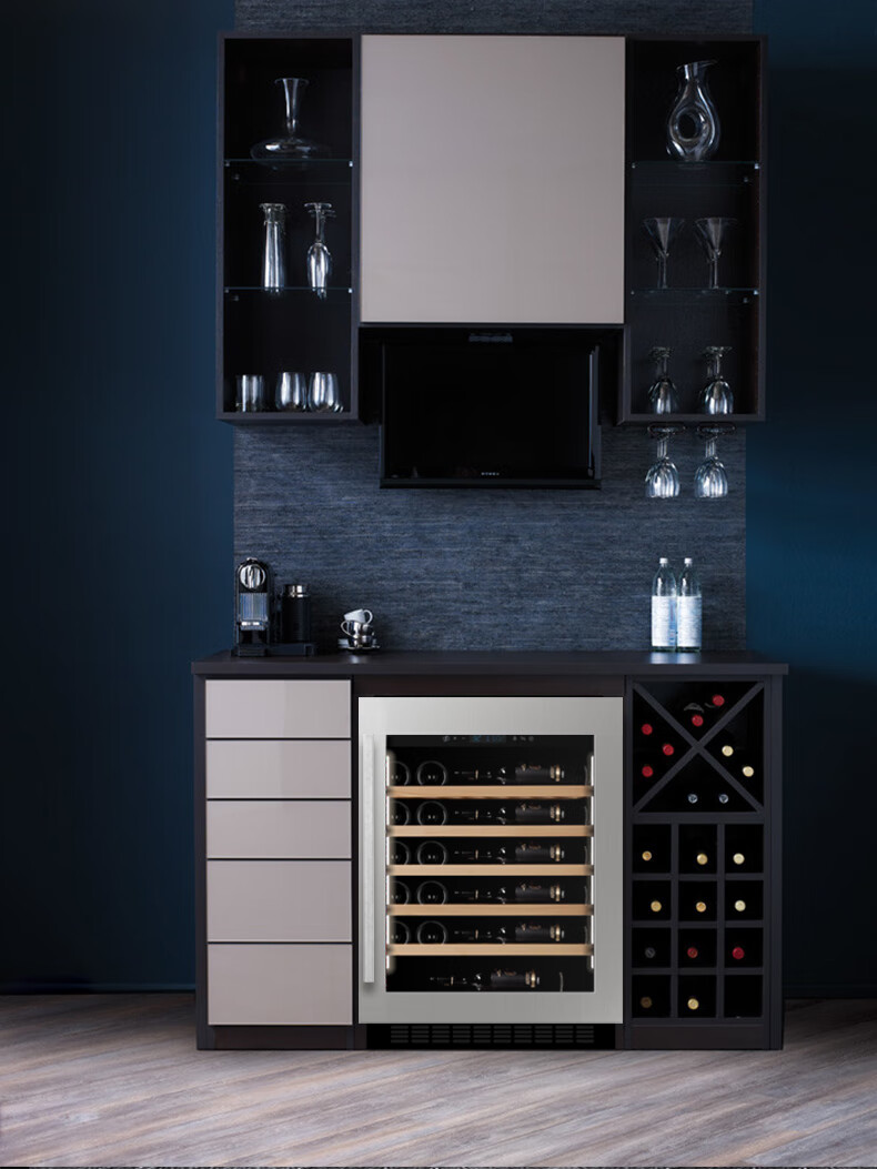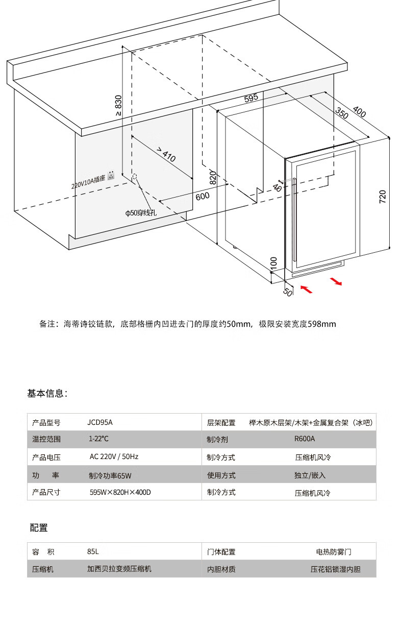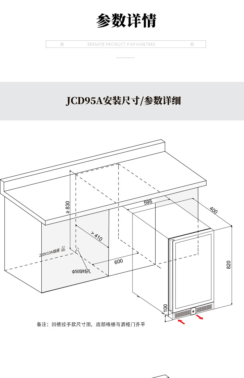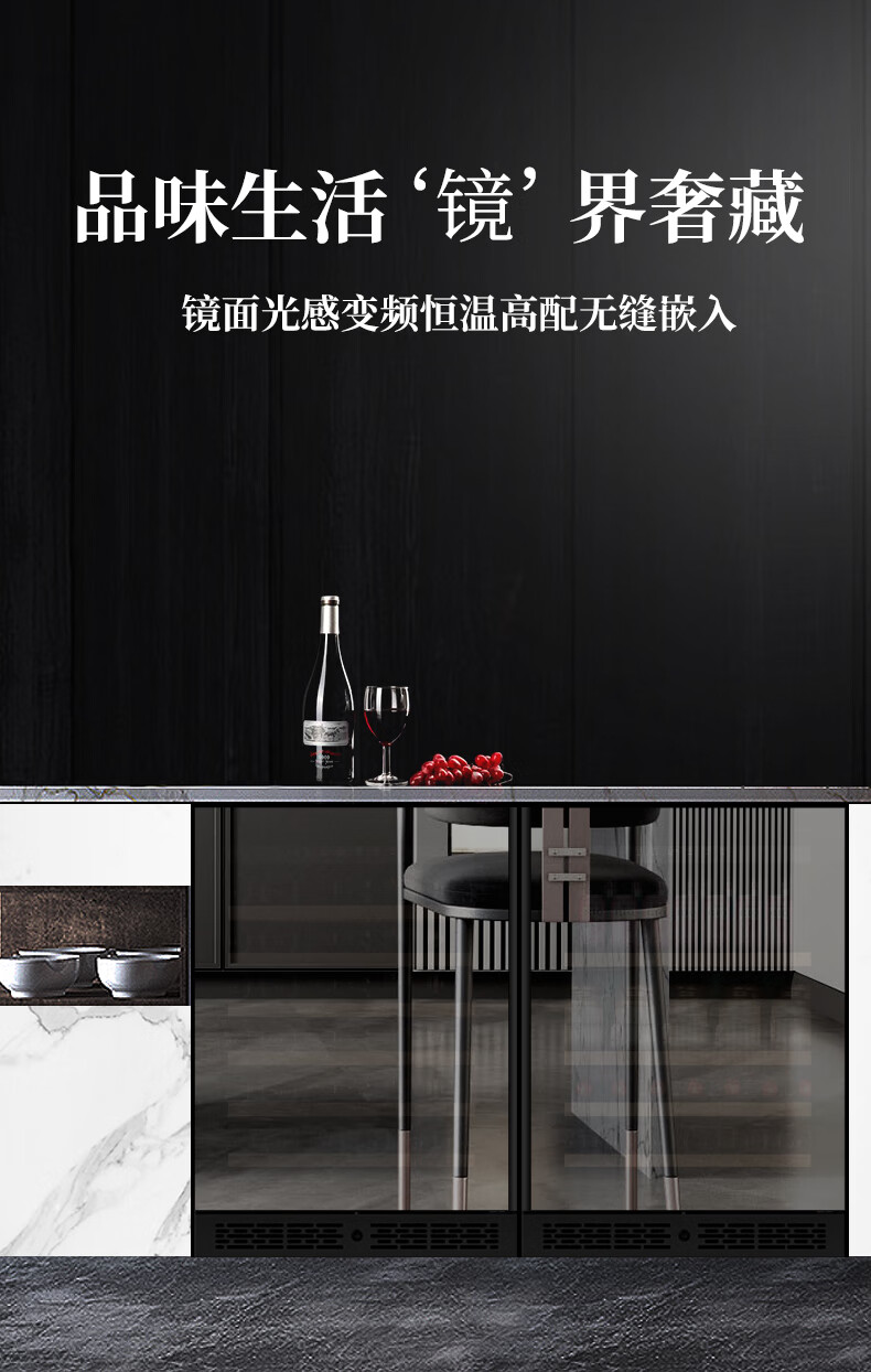 Faseeny 400mm ultra-thin variable frequency embedded red wine cabinet constant temperature wine cabinet built-in wine cabinet bar under counter embedded constant temperature storage cabinet refrigerated beer tea cold drink cabinet 400 deep stainless steel door ice bar/frequency conversion/defog door 85L