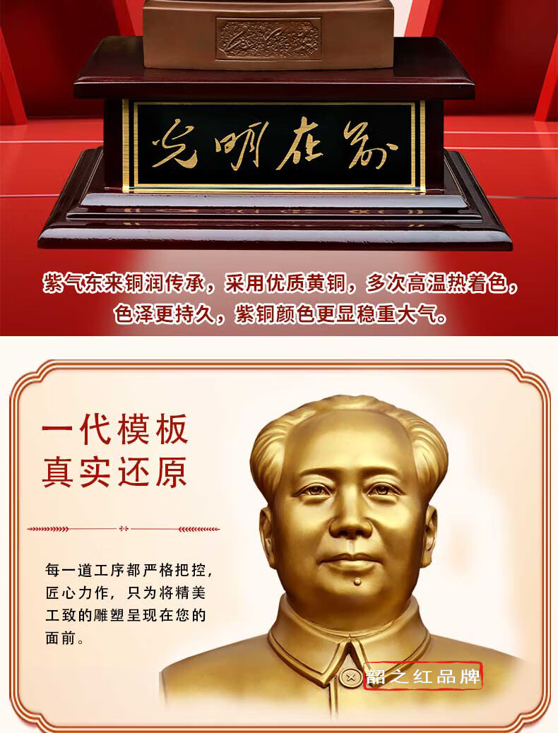 Шаочихун 2024 новый стиль Председатель Мао бронзовая статуя латунь великий человек чистая скульптура гостиная офисный стол украшение босс лидерство подарок бывшая резиденция поколение 25 см портрет великого человека задняя крышка