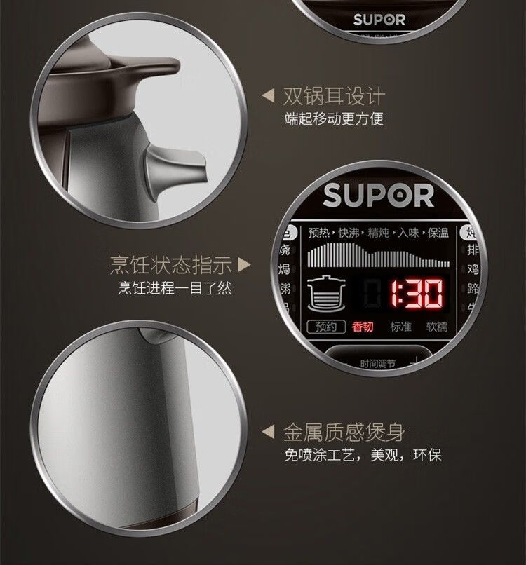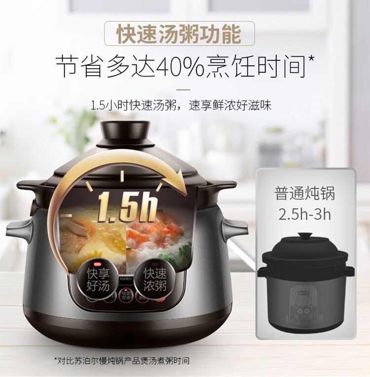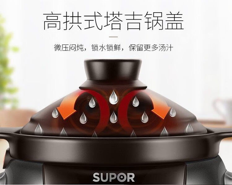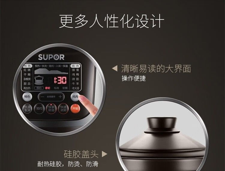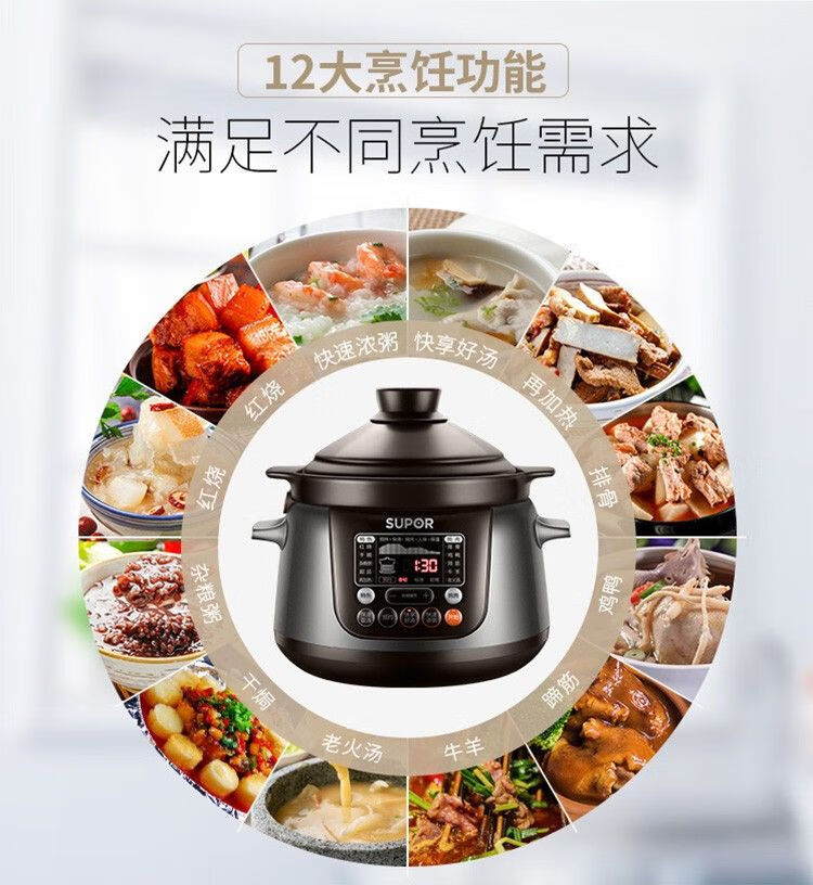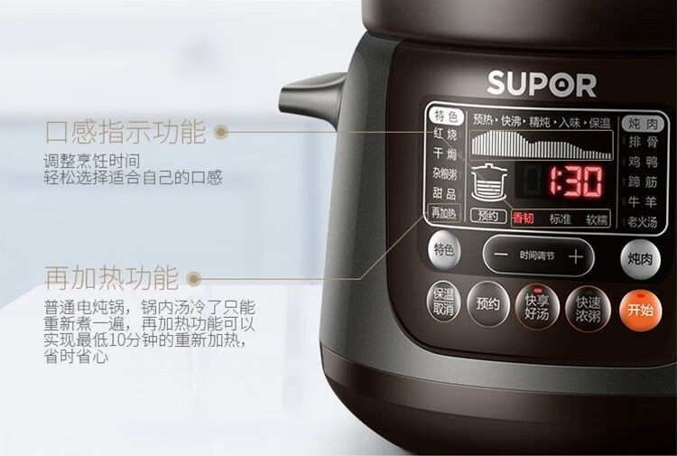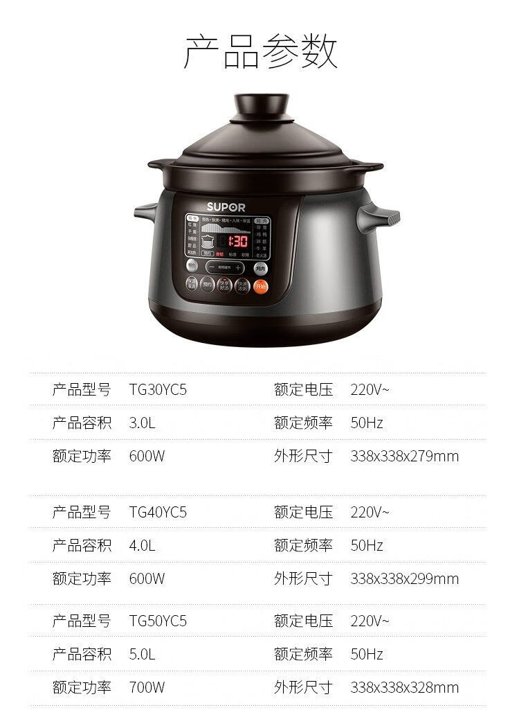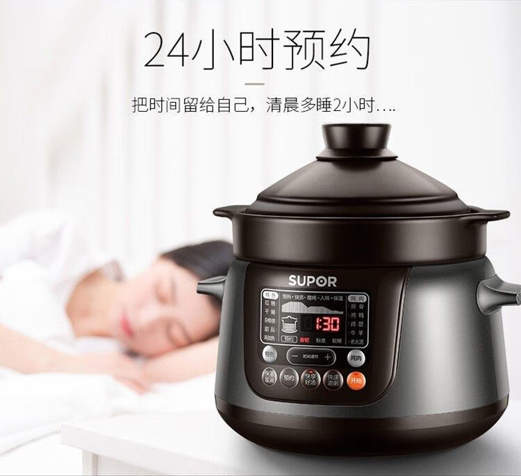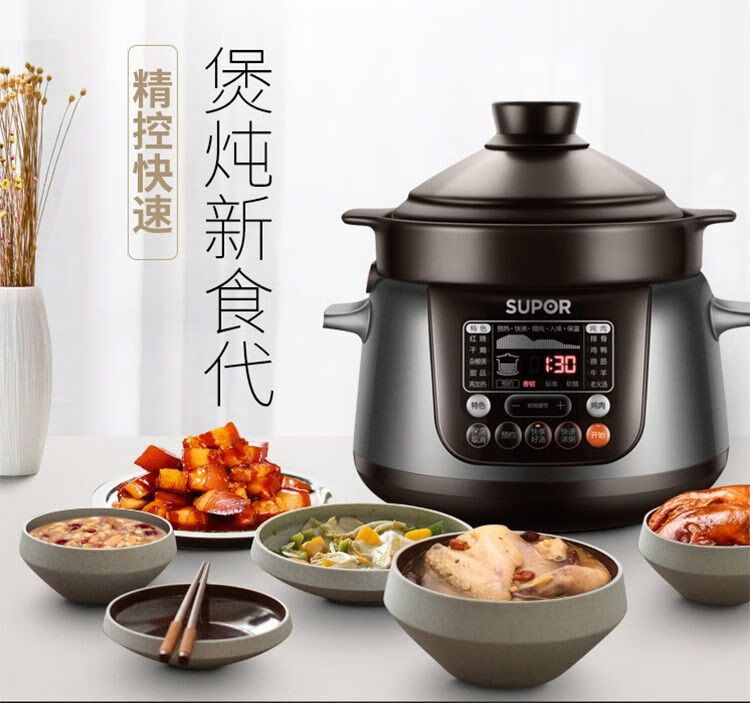 Supor electric stew pot electric stew pot soup pot stew household large capacity precise control fast incandescent pottery electric stew pot precision control fast incineration pottery TG30YC5 appointment timer 3L