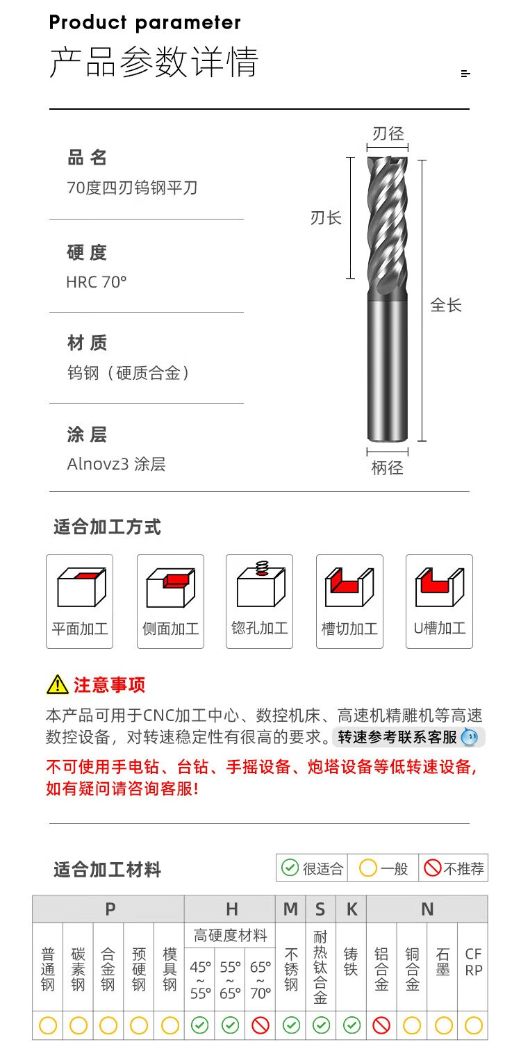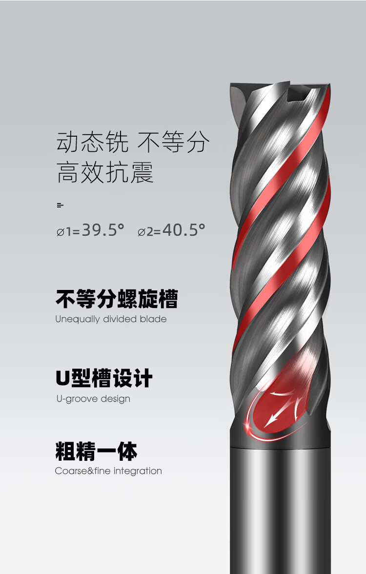 70-degree 4-edge tungsten steel milling cutter U-shaped groove CNC stainless steel special extended high-efficiency rough-finish integrated dynamic end mill 70-degree dynamic milling high-efficiency cutter 6*15*6D*50L