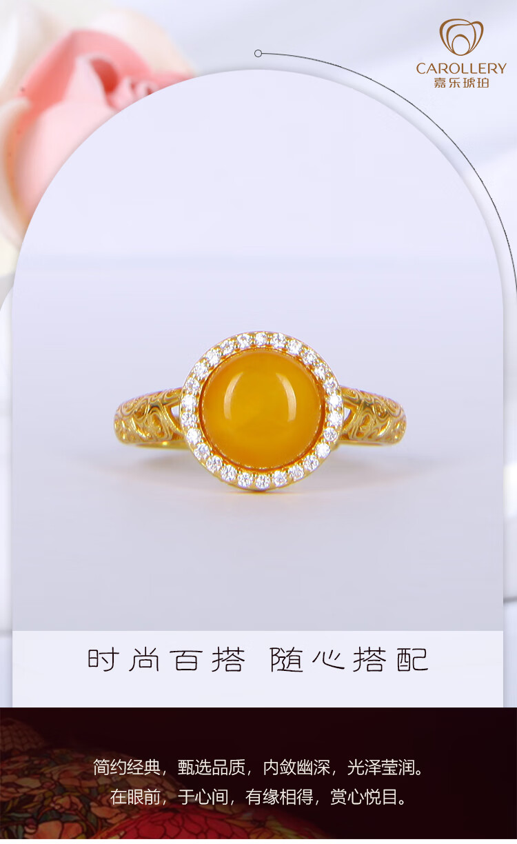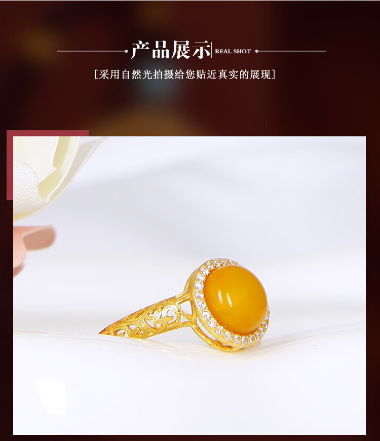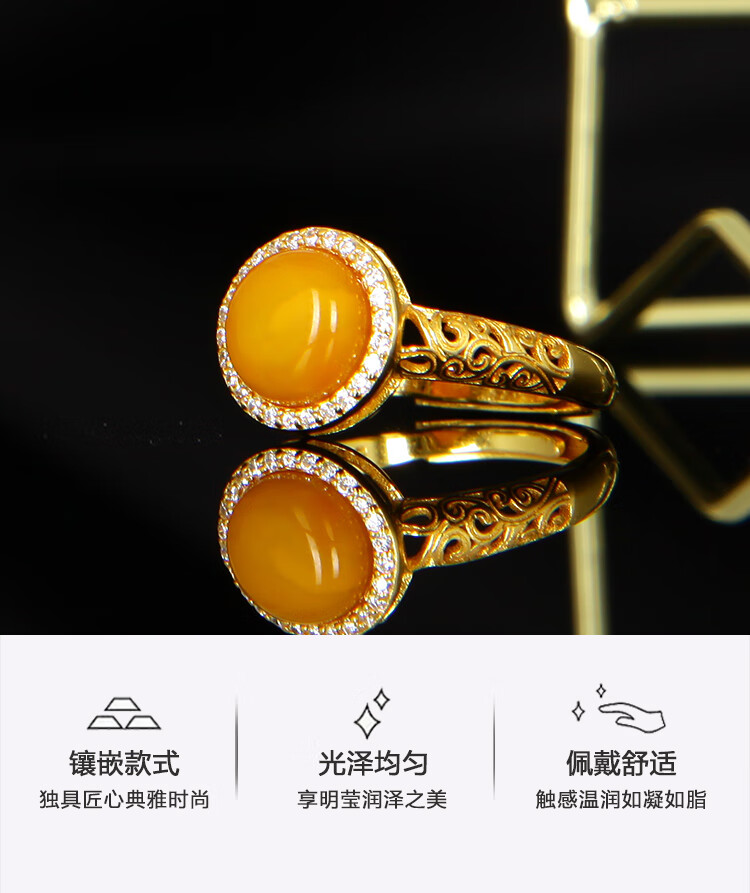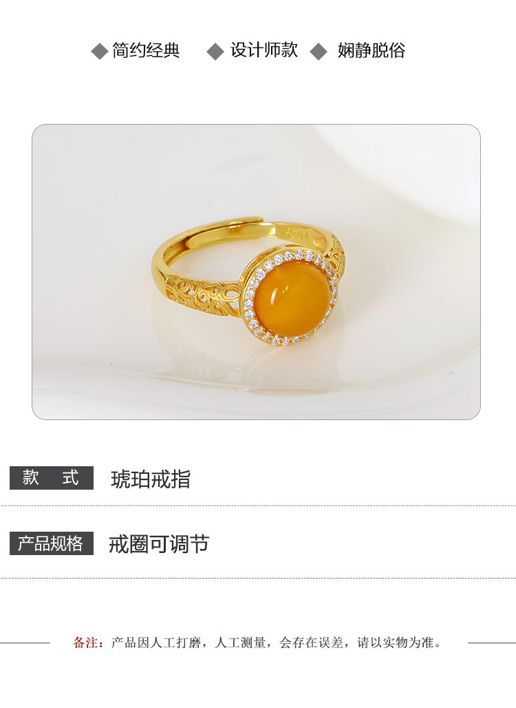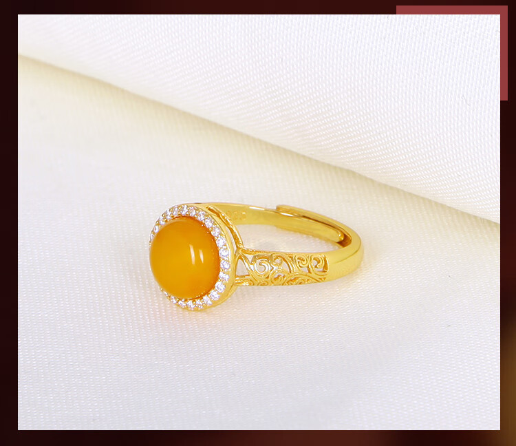 Jiale Beeswax Ring Women's S925 Silver Gold Plated Old Beeswax Ring Hollow Design Chicken Oil Yellow Women's Ring Gift Interface Approximately 10mm Adjustable/A0280
