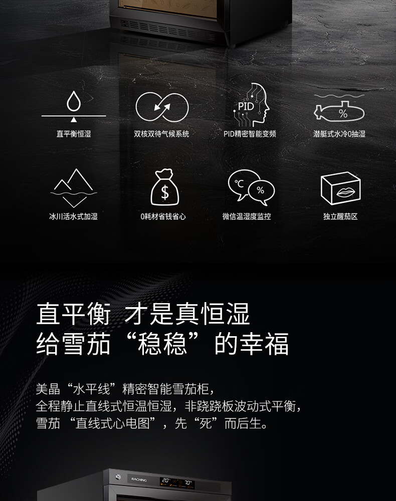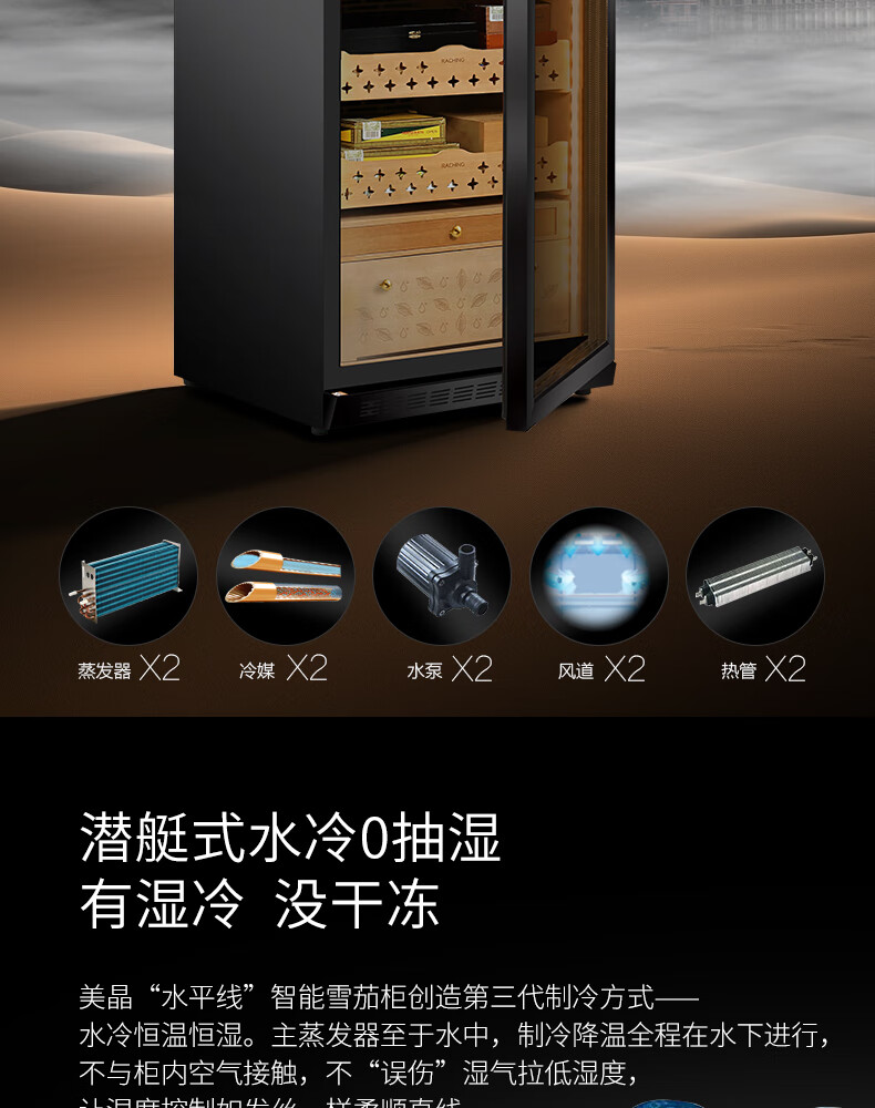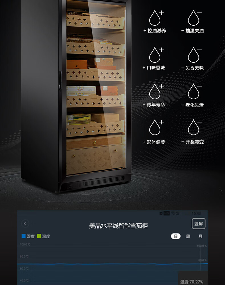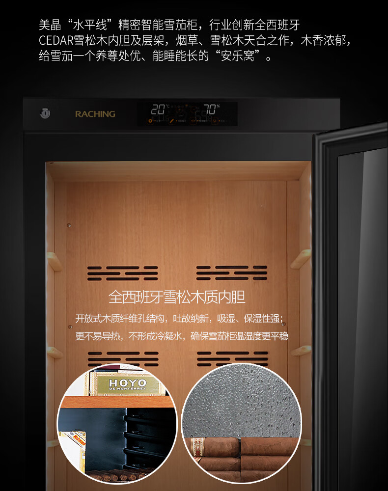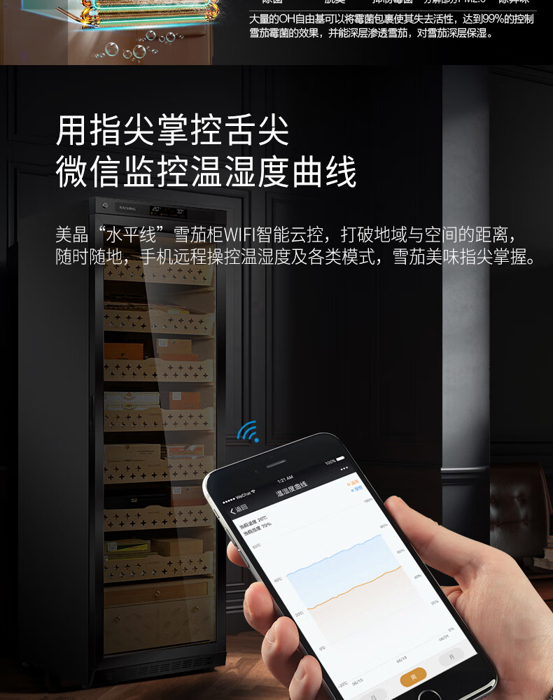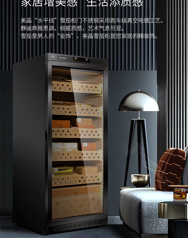 Meijing MON1800A WIFI smart solid wood horizontal line constant temperature cigar cabinet with temperature control and humidity control cigar humidifier for home use Starry Sky Black (Spanish cedar wood shelf) 230L