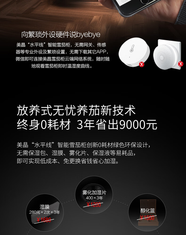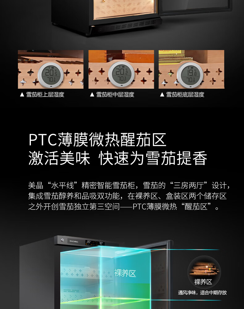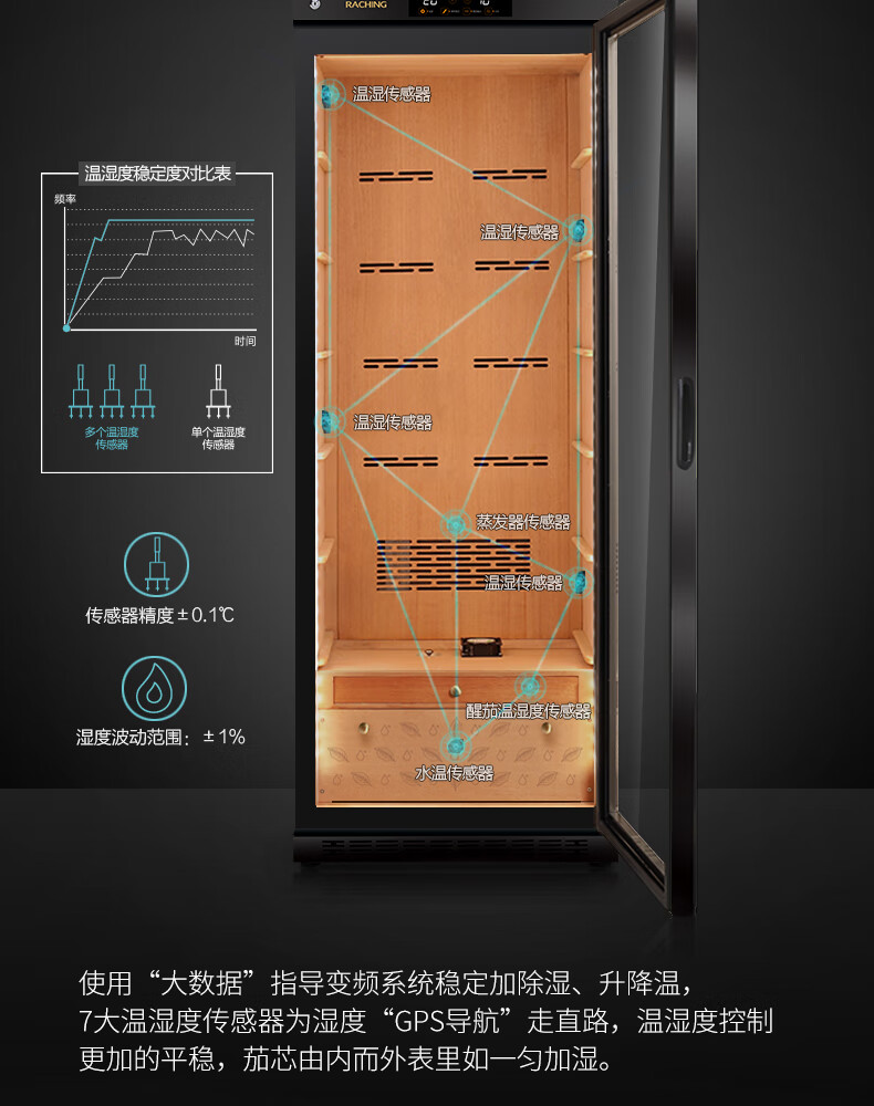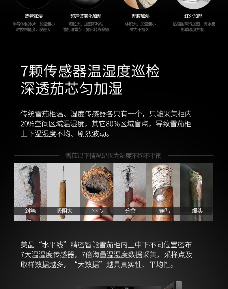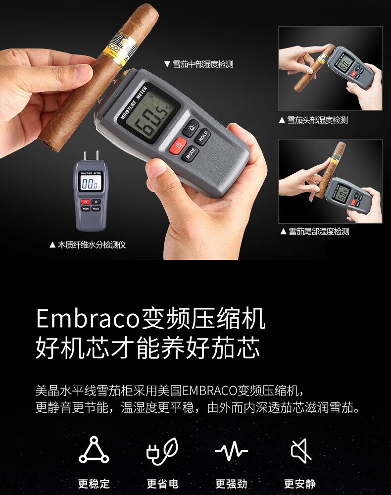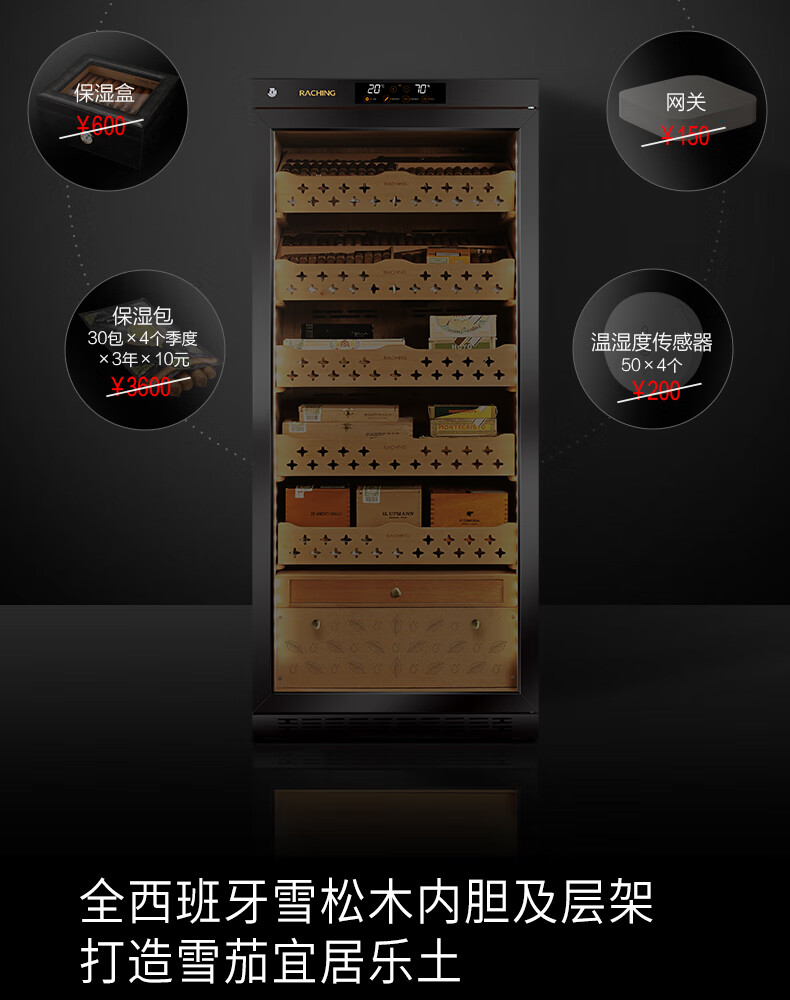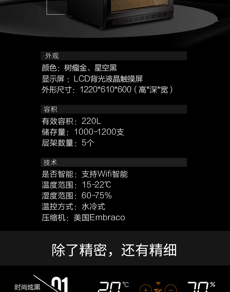 Meijing MON1800A WIFI smart solid wood horizontal line constant temperature cigar cabinet with temperature control and humidity control cigar humidifier for home use Starry Sky Black (Spanish cedar wood shelf) 230L