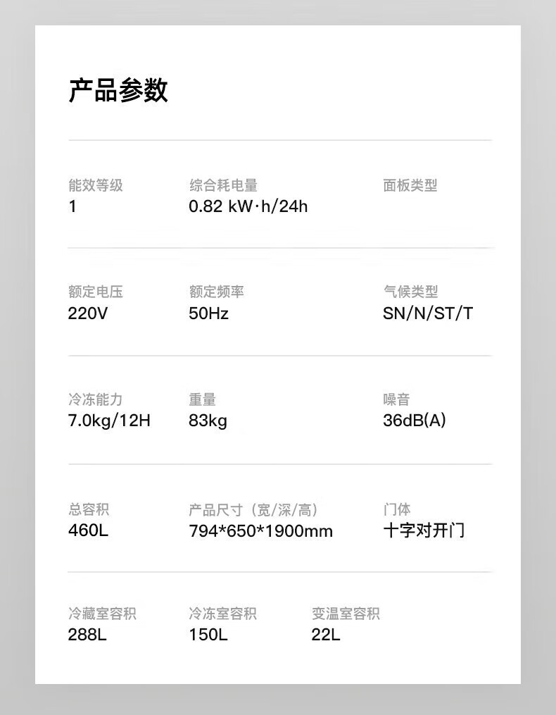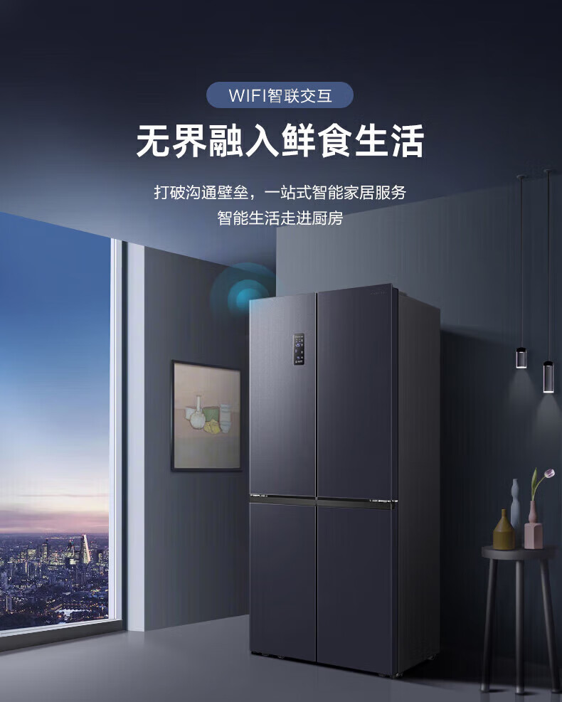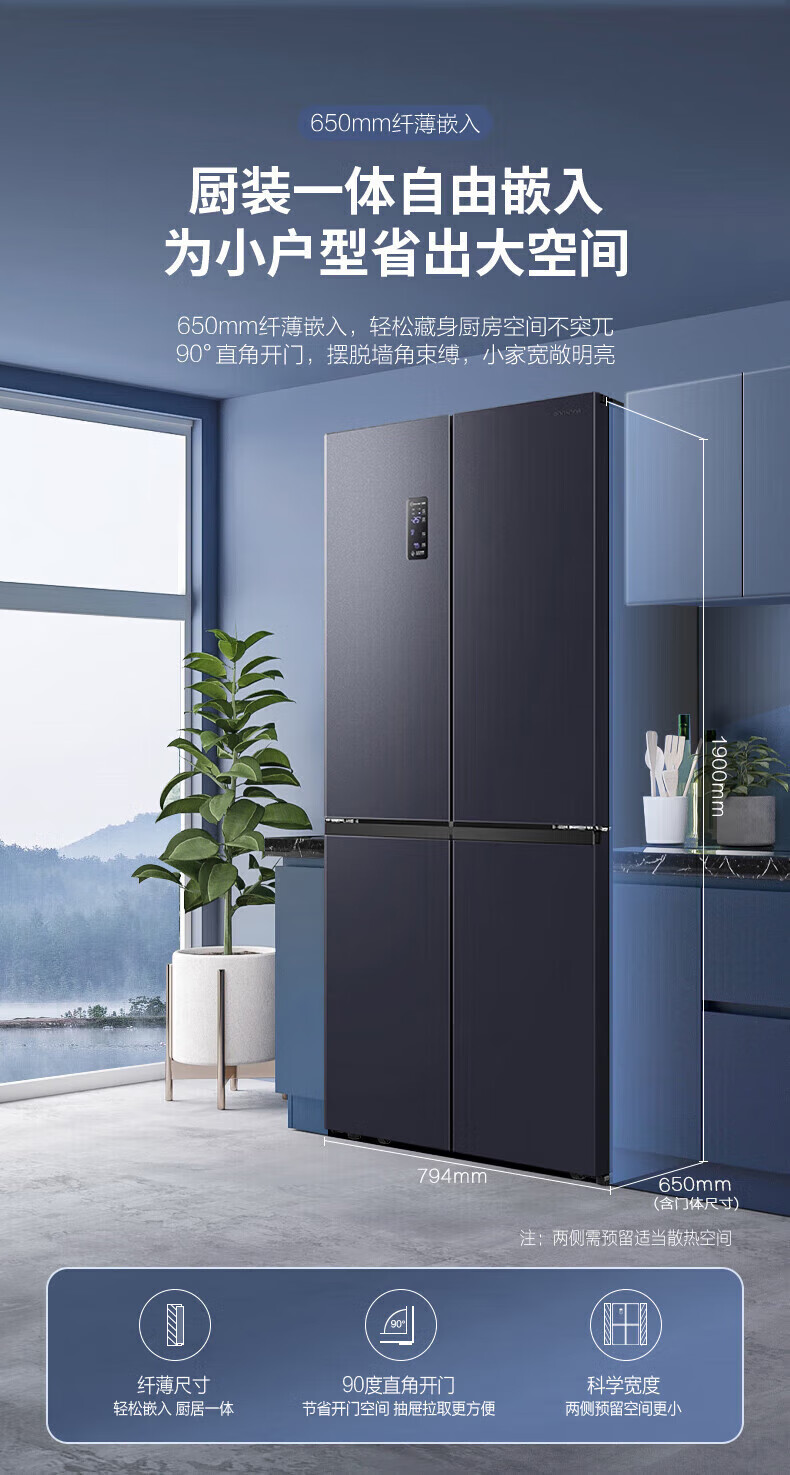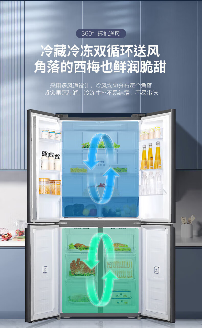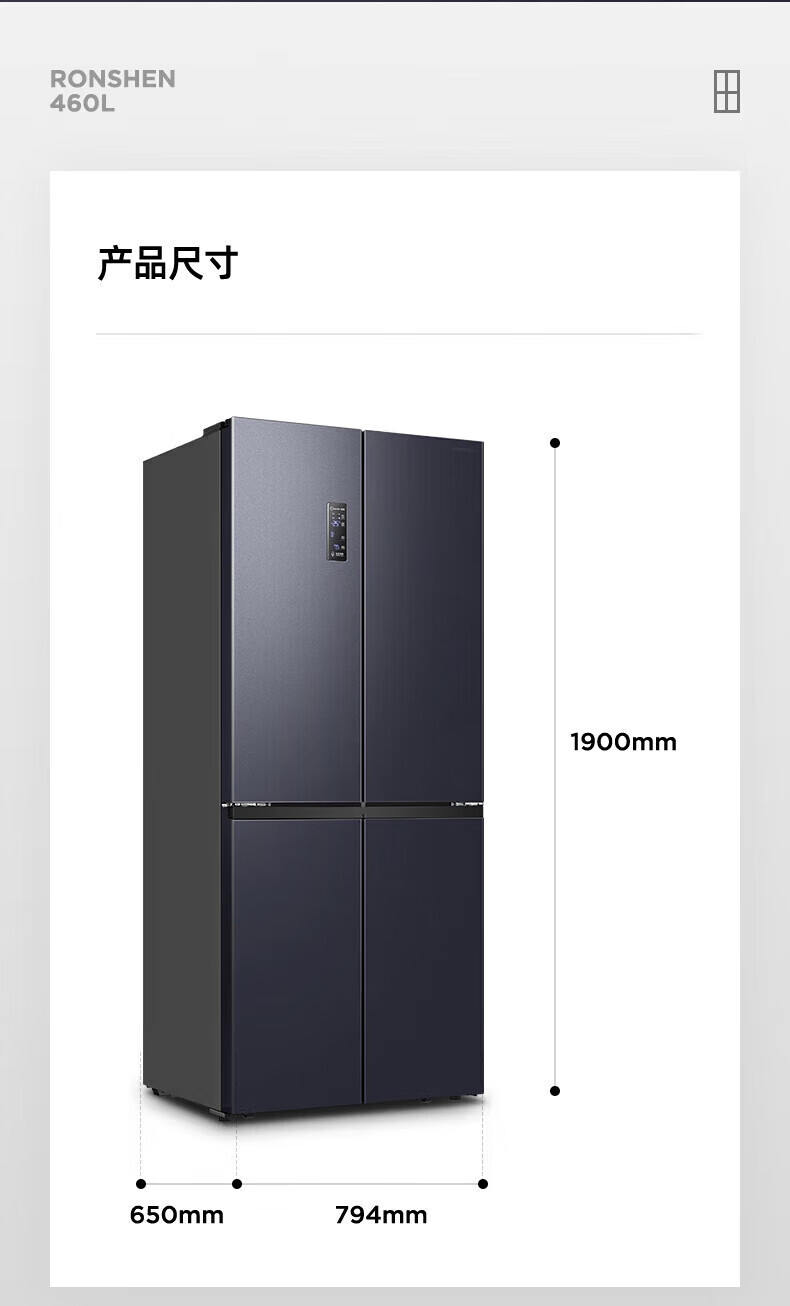 Rongsheng 460L cross-door four-door embedded first-class energy efficiency variable frequency air-cooled frost-free household refrigerator BCD-460WD12FPA Moyun Gray 460L