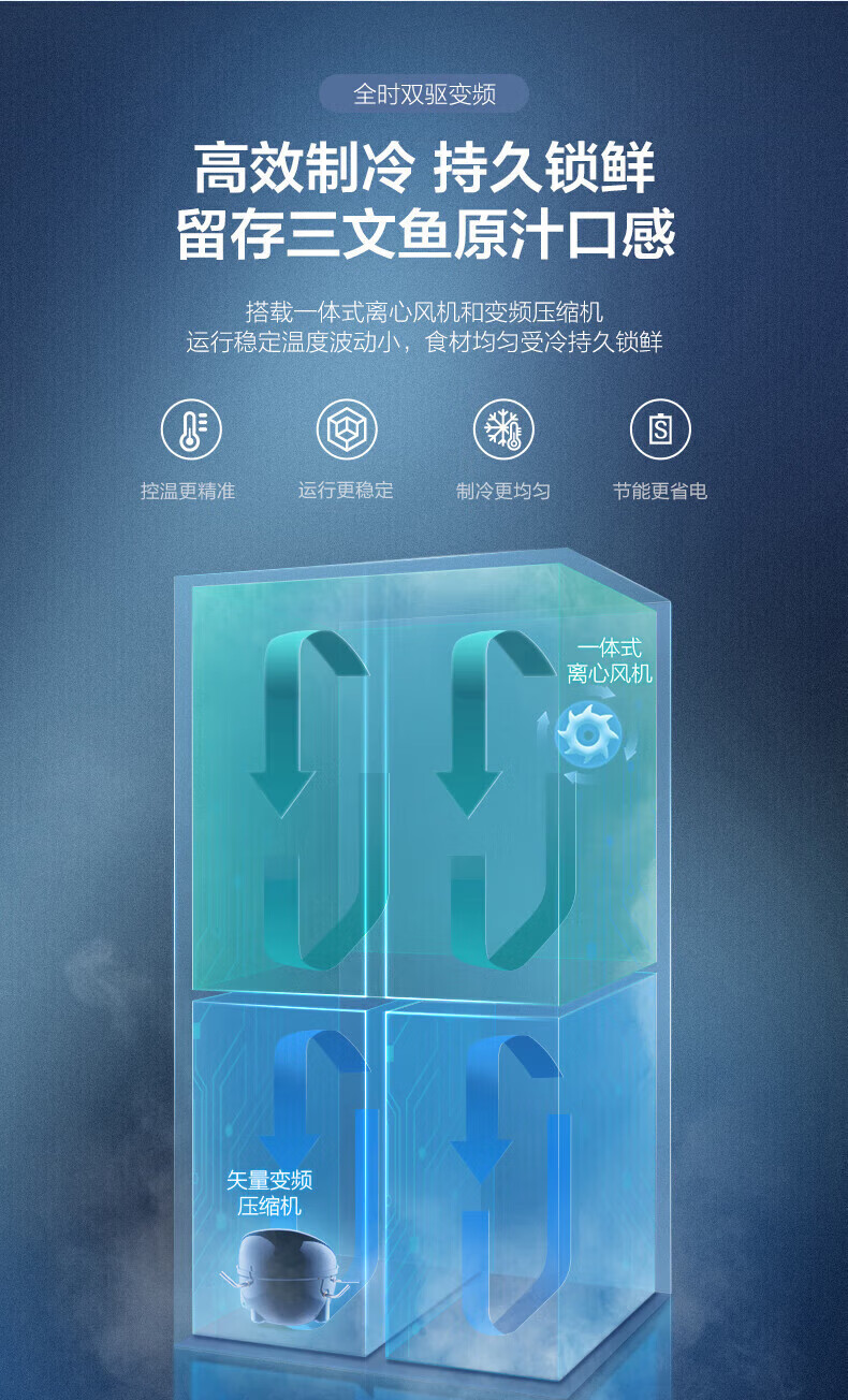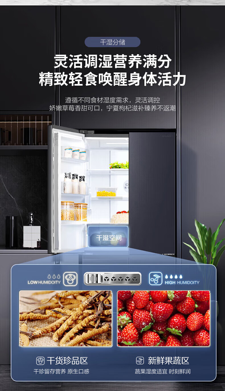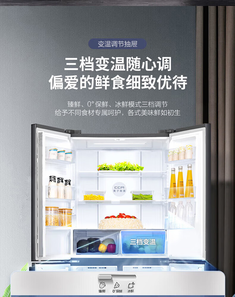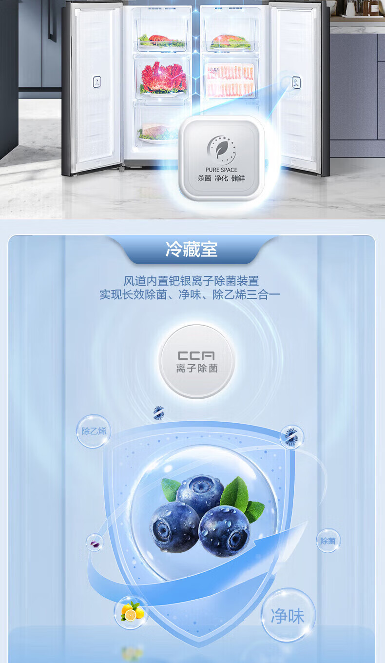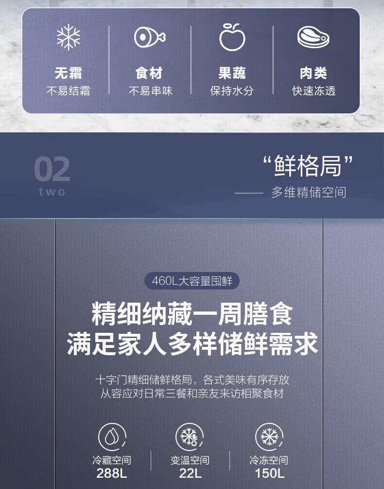 Rongsheng 460L cross-door four-door embedded first-class energy efficiency variable frequency air-cooled frost-free household refrigerator BCD-460WD12FPA Moyun Gray 460L