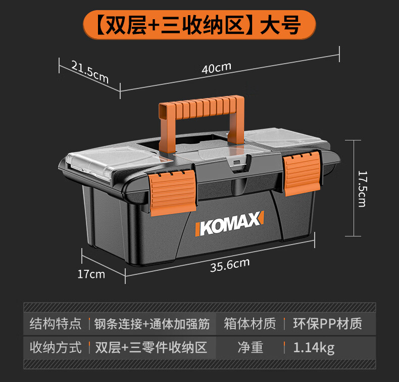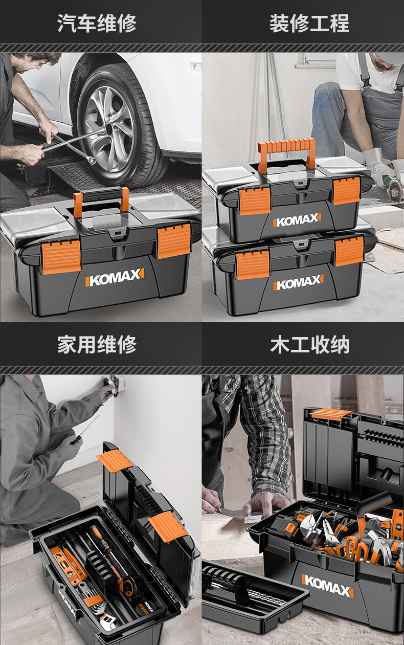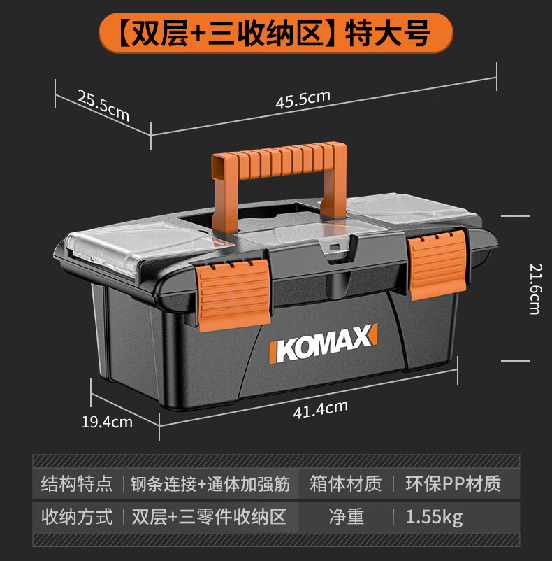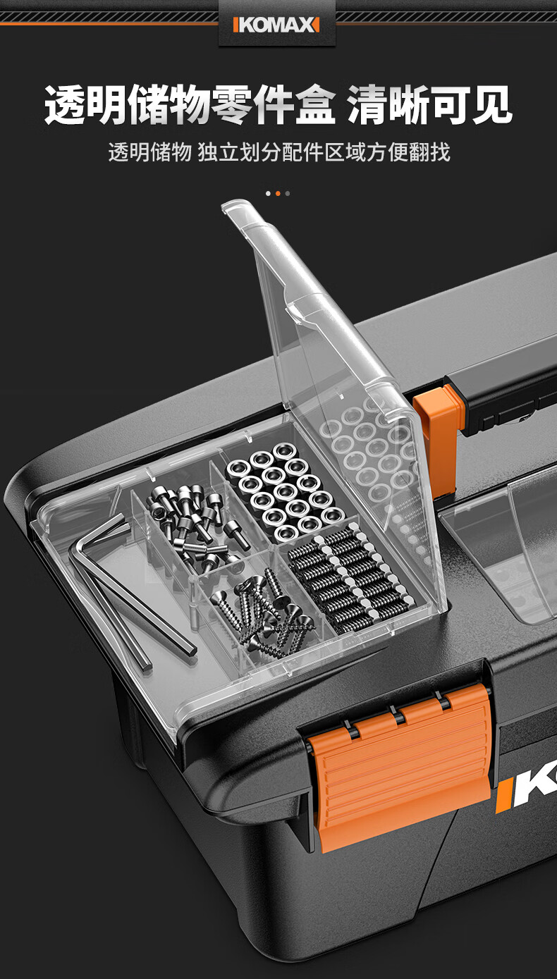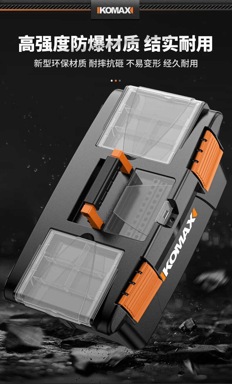 Komax Tool Box Storage Box Household Hardware Repair Box Parts Box Plastic Art Box Electrician Folding Suitcase Double Layer + Three Storage Areas Mini