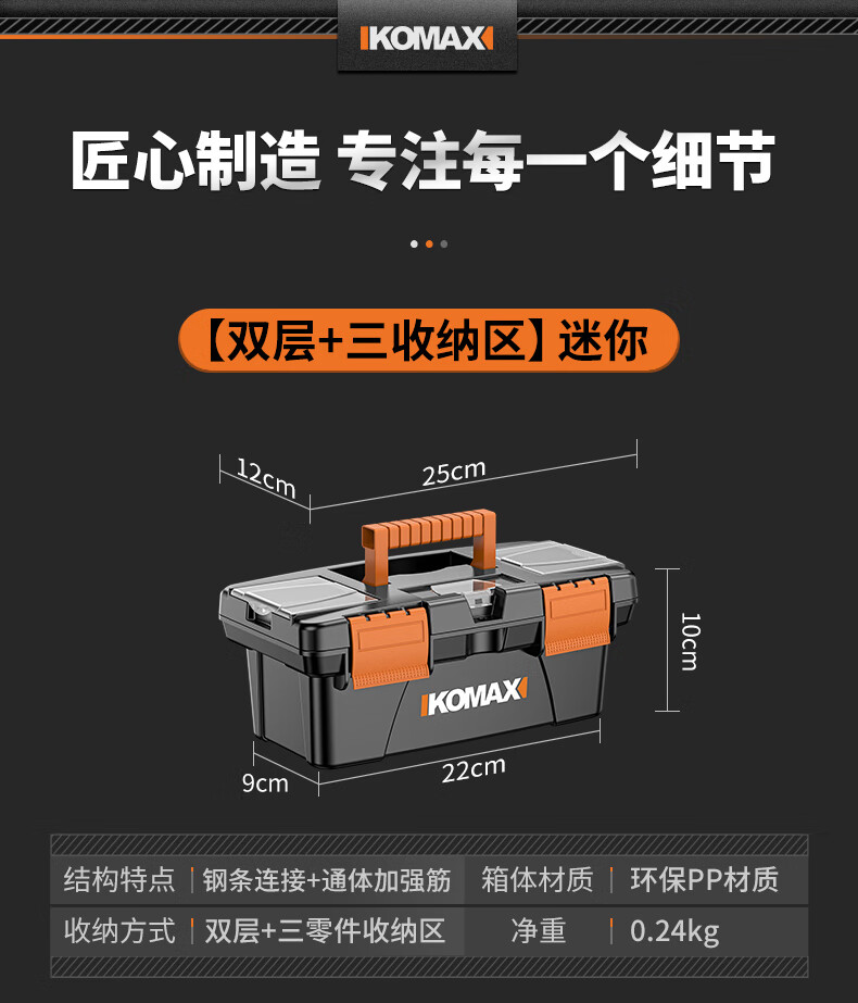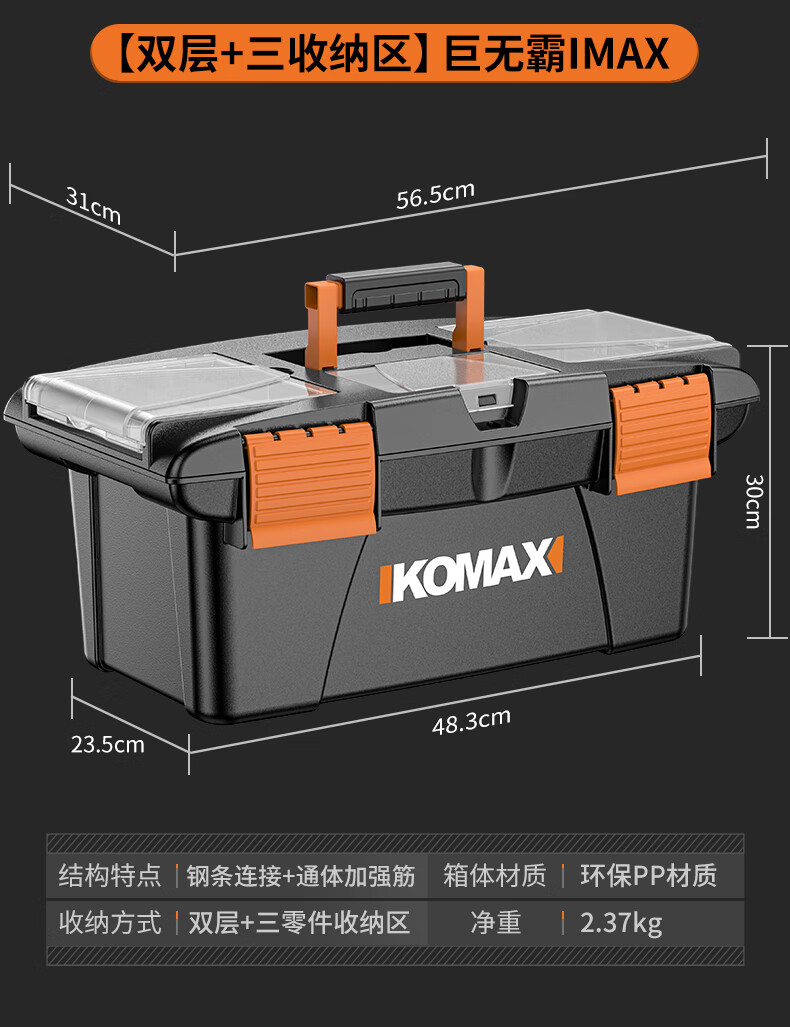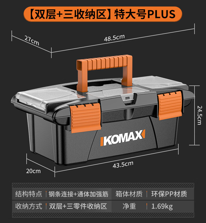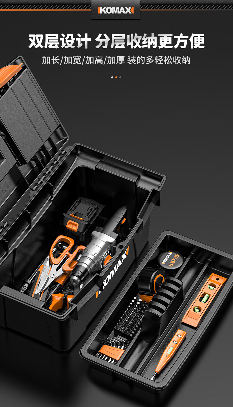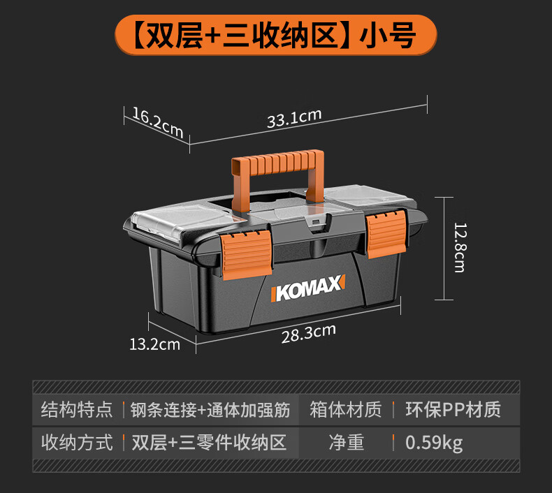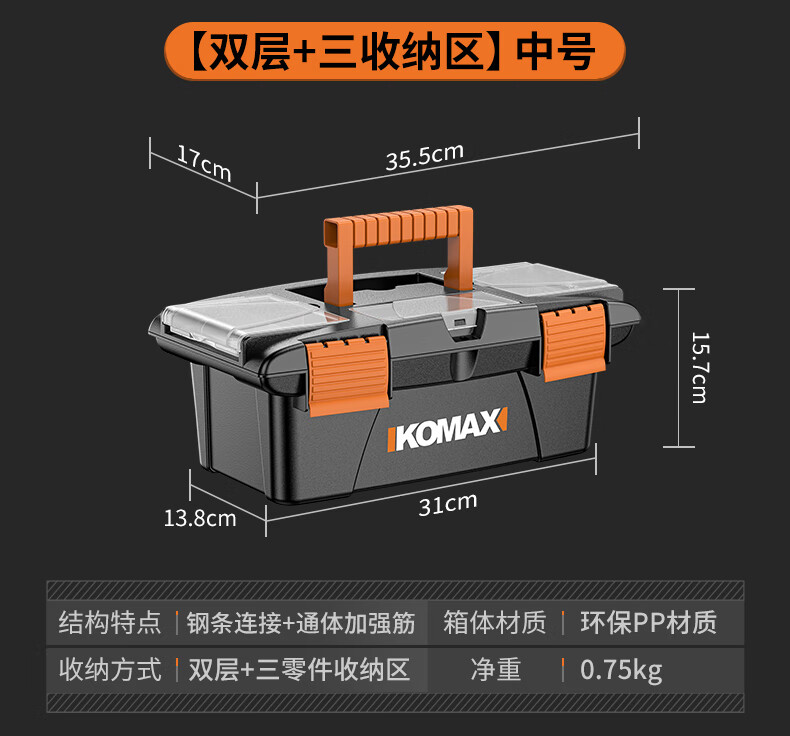 Komax Tool Box Storage Box Household Hardware Repair Box Parts Box Plastic Art Box Electrician Folding Suitcase Double Layer + Three Storage Areas Mini