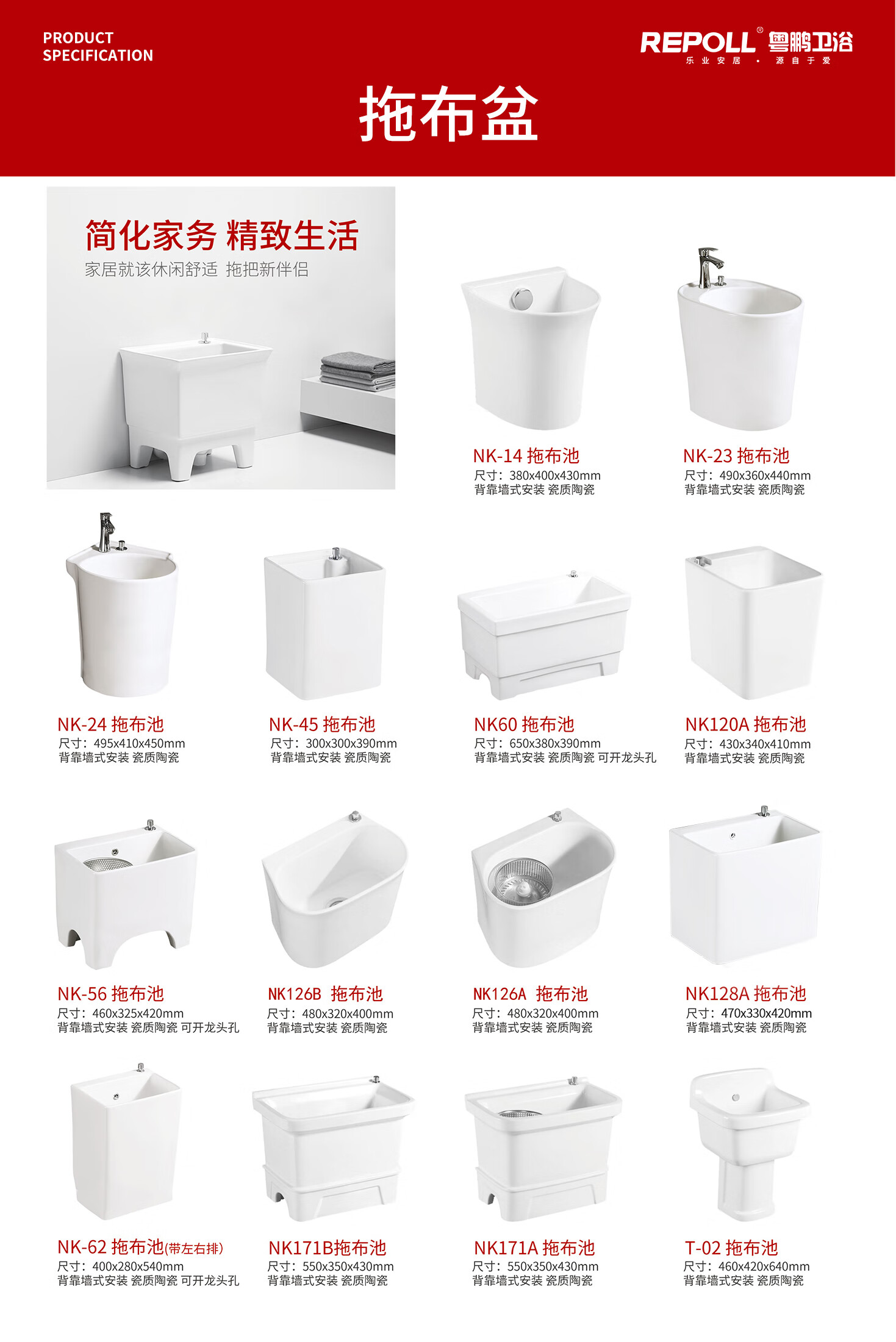 Yuepeng bathroom ceramic mop pool household outdoor courtyard balcony mop pool floor-standing mop pool T-02 (460*420*640)
