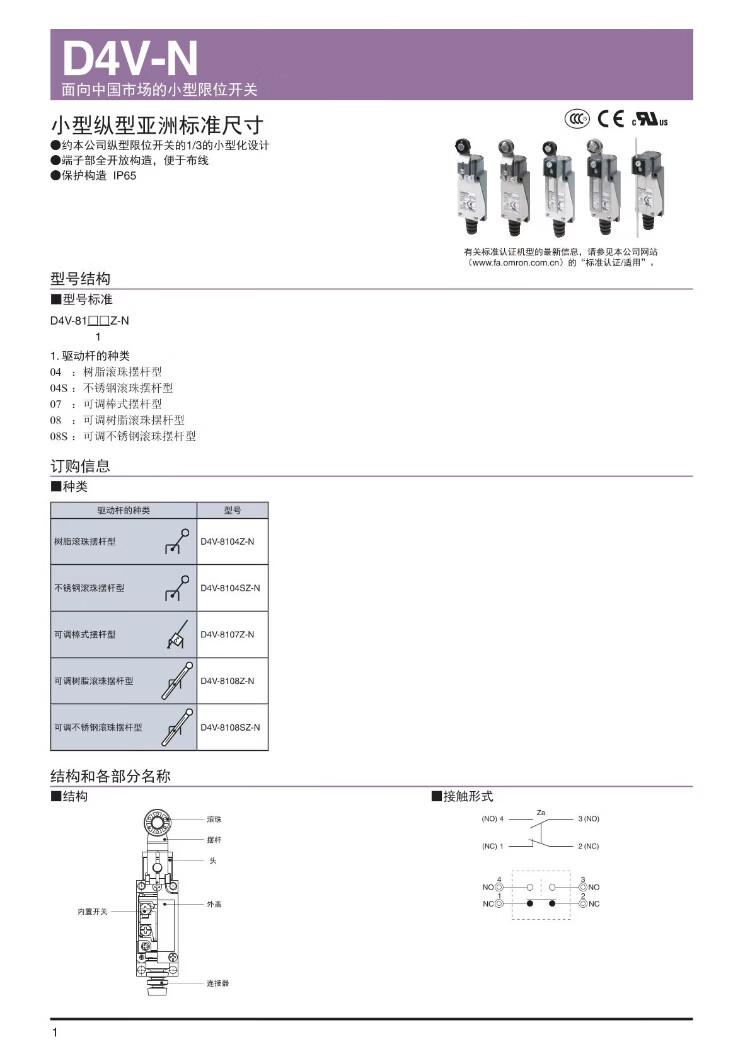 Omron (OMRON) D4V travel switch original OMRON Omron D4V-8112Z series limit switch travel switch one open and one closed D4V-8112Z-N