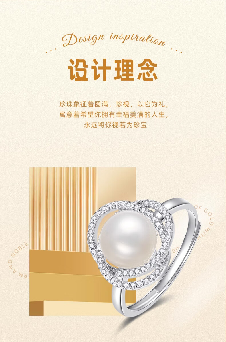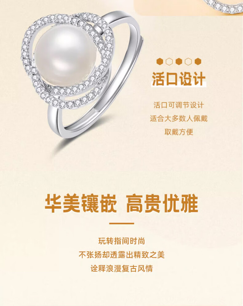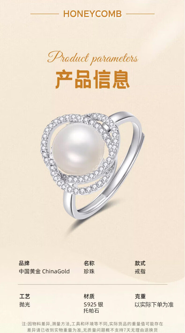 China Gold (CHINA GOLD) S Silver Pearl Ring Women's New Simple Vegetarian Ring Index Ring Valentine's Day Birthday Gift Year of the Horse Animal Year Gift Pearl Ring