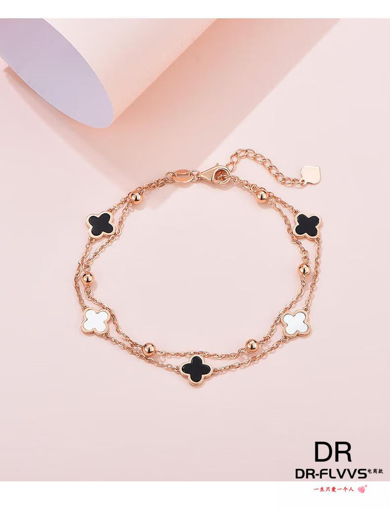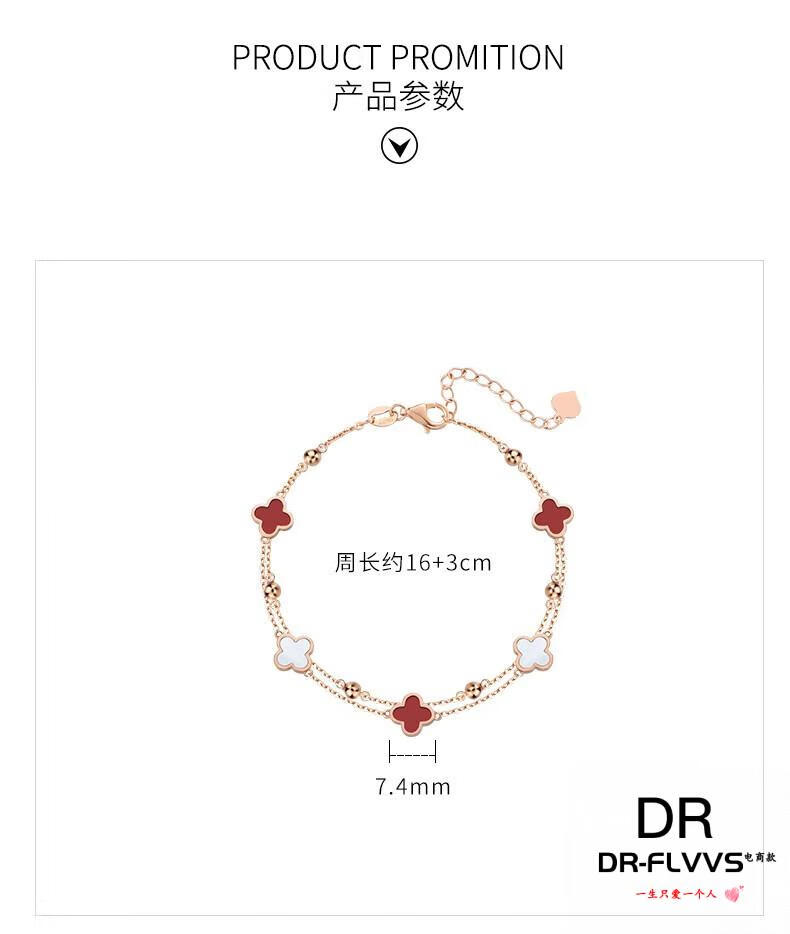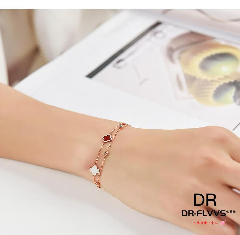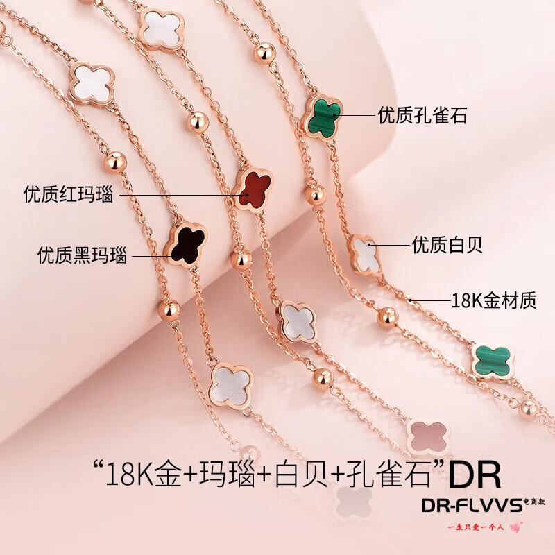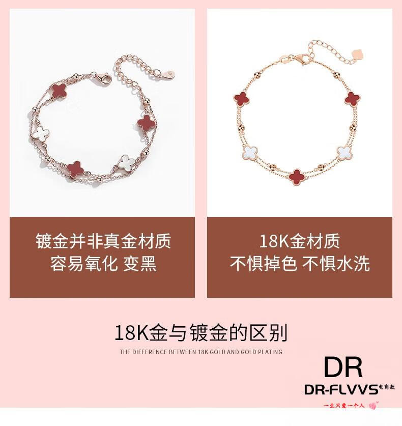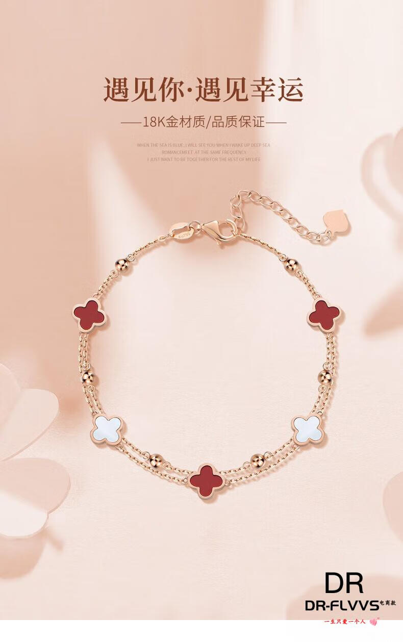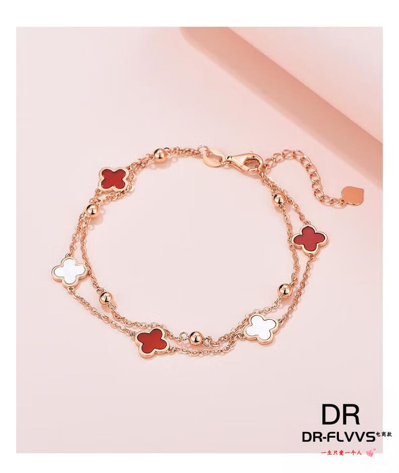 DL 1998 Fat Donglai same style 18k gold four-leaf clover bracelet 18K women's five-flowered red agate V gold 750 color gold double layer bracelet free rose gold black agate bracelet