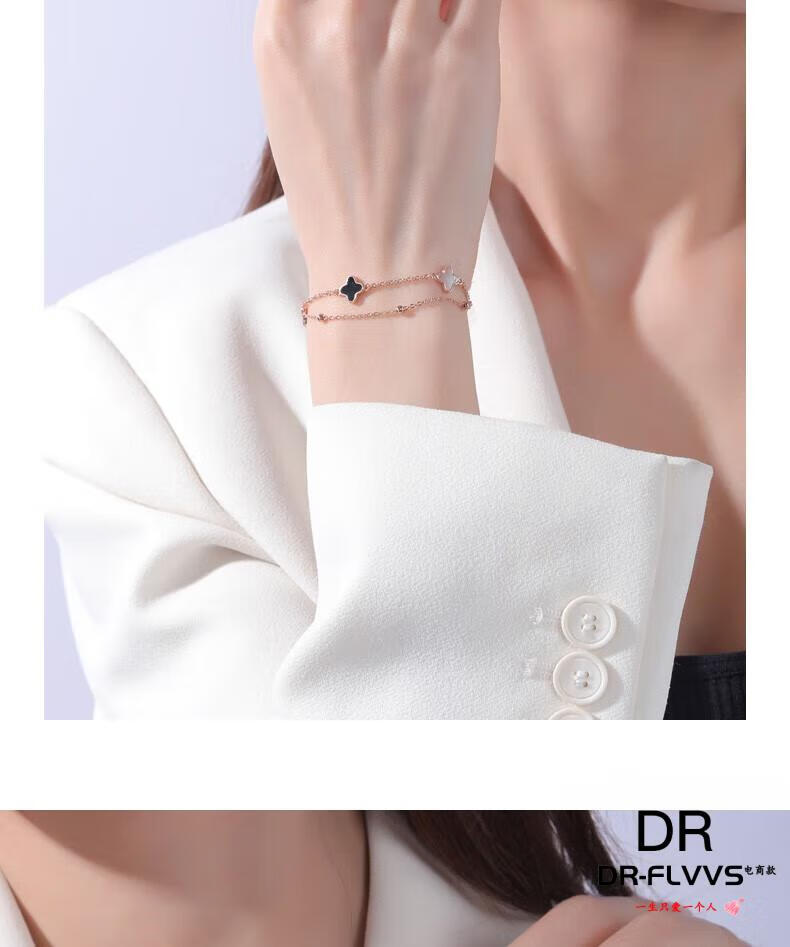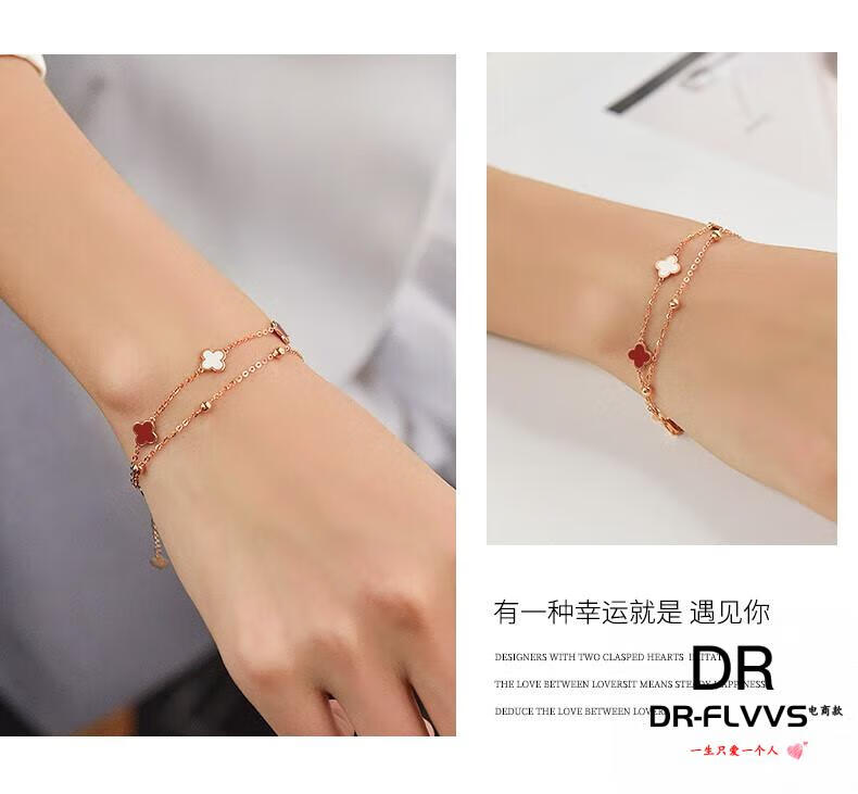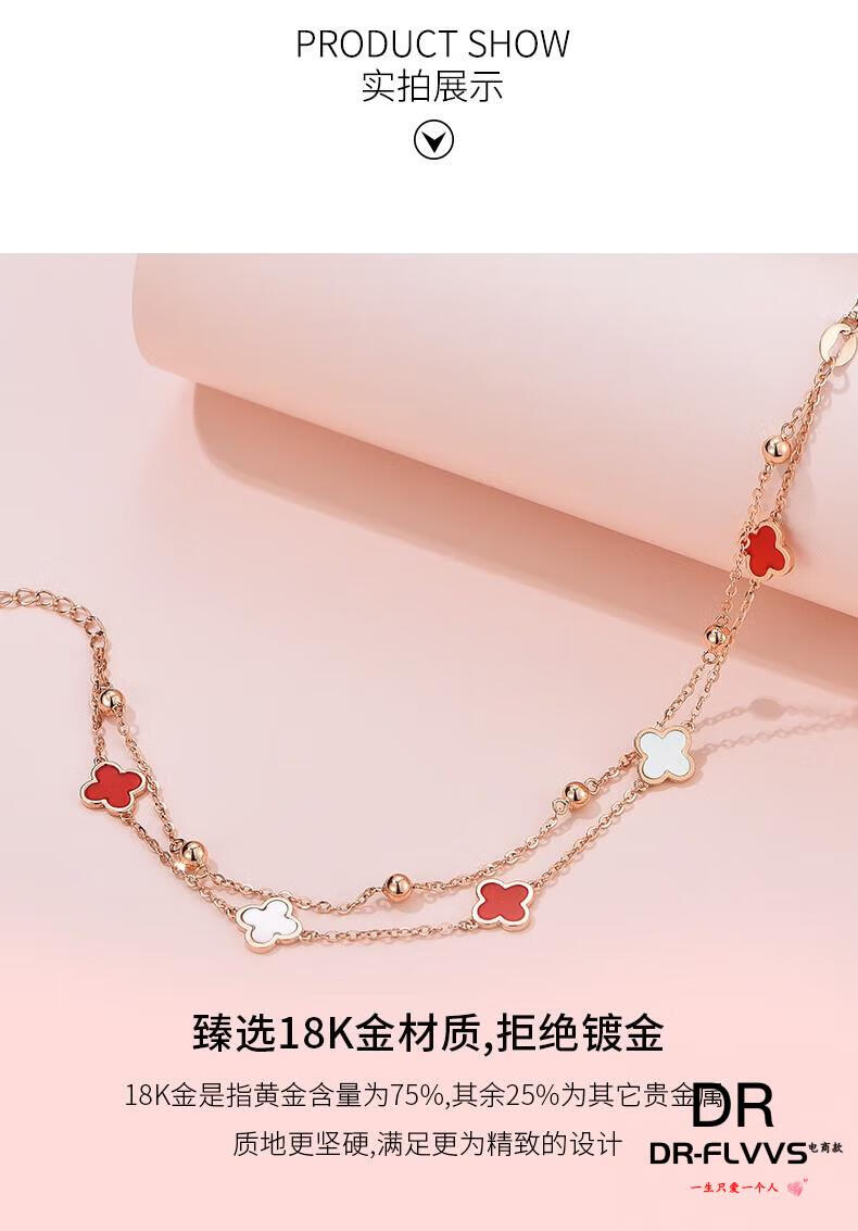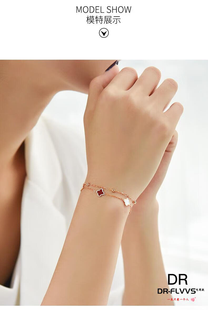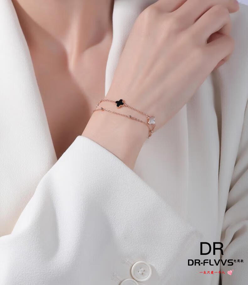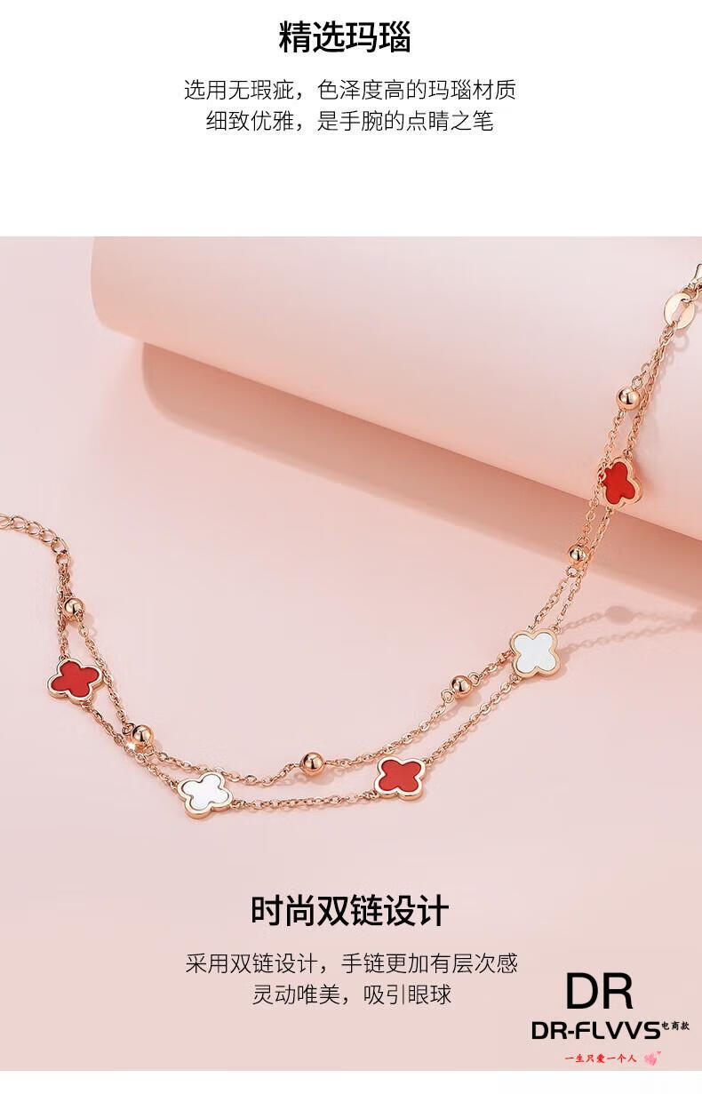 DL 1998 Fat Donglai same style 18k gold four-leaf clover bracelet 18K women's five-flowered red agate V gold 750 color gold double layer bracelet free rose gold black agate bracelet