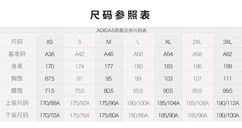 China (cm) 160-165/84-86 165-170 / 88-90 167-172 / 92-96 168-173 / 98-102 170-176 / 106-110