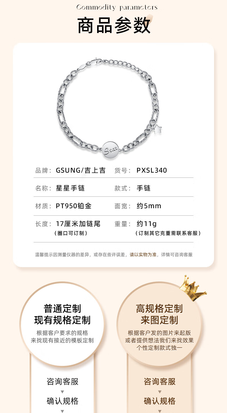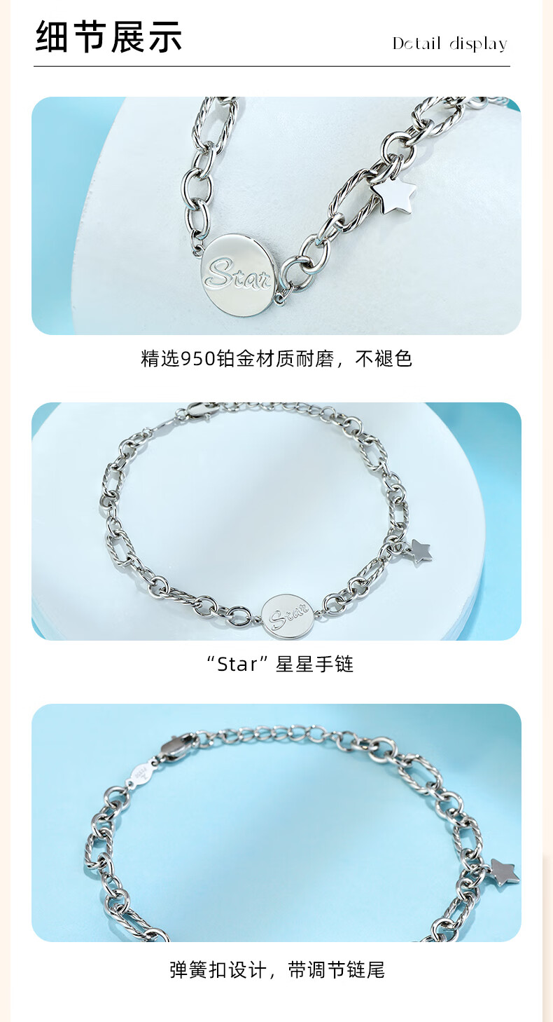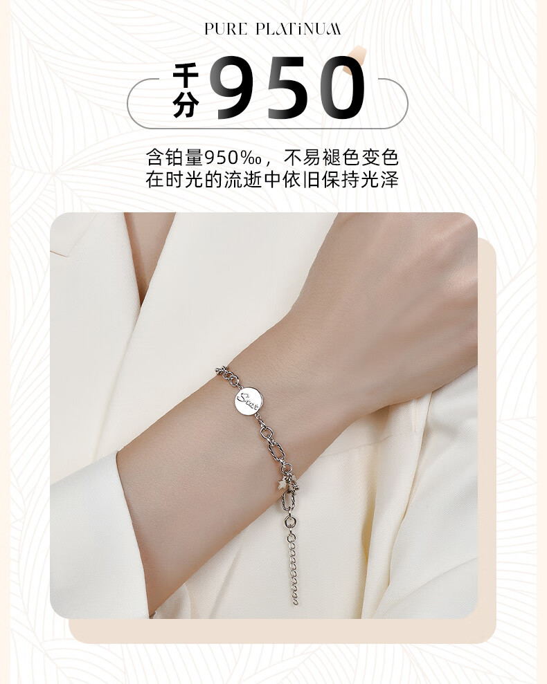 GsunG platinum women's bracelet PT950 new fashion Star star bracelet simple platinum bracelet female elegant gift calculated according to the gold price of the store that day