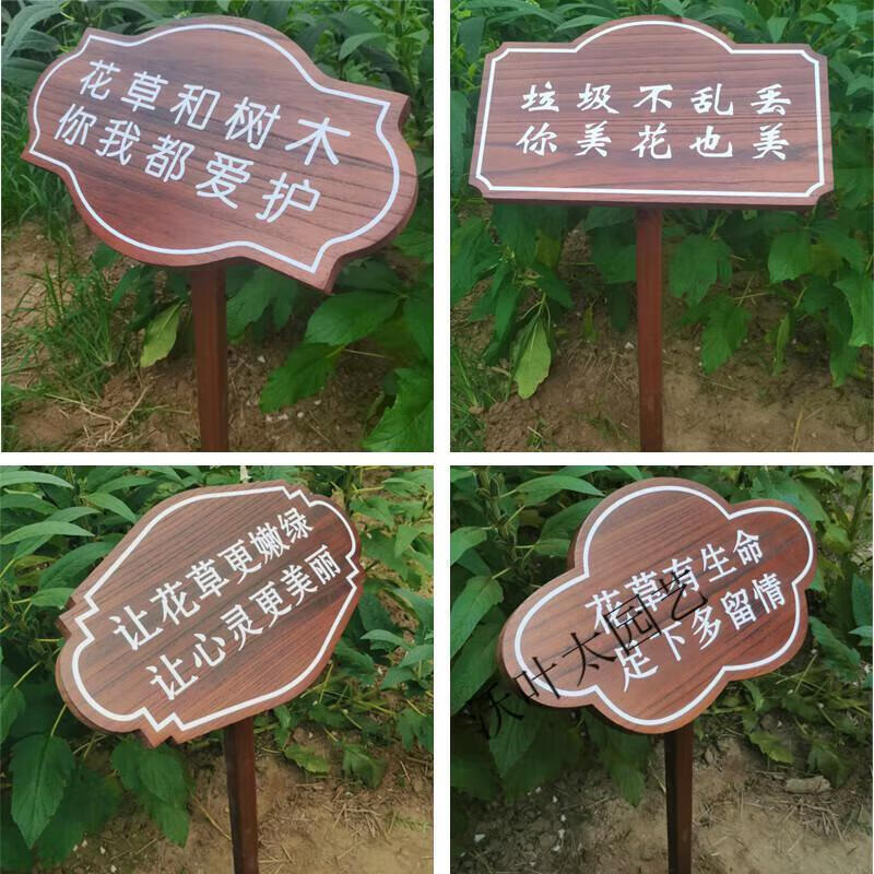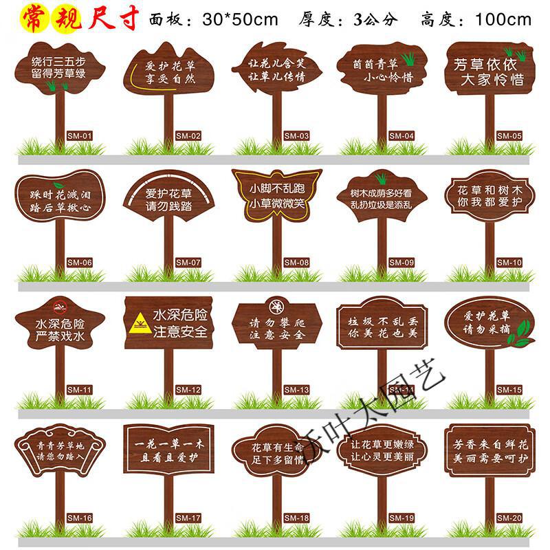 Customized outdoor small grass brand solid wood lawn brand flower and grass prompt card green warning sign civilized placard lawn card ready-made flower and grass card-1 24x40cm