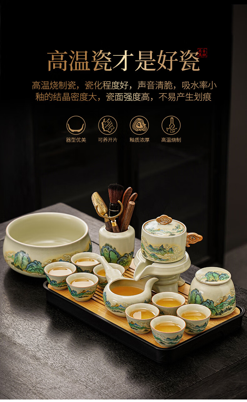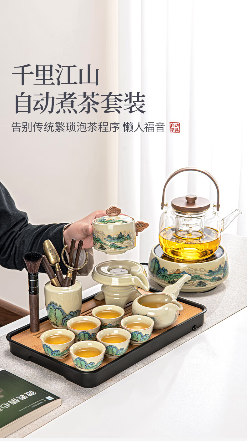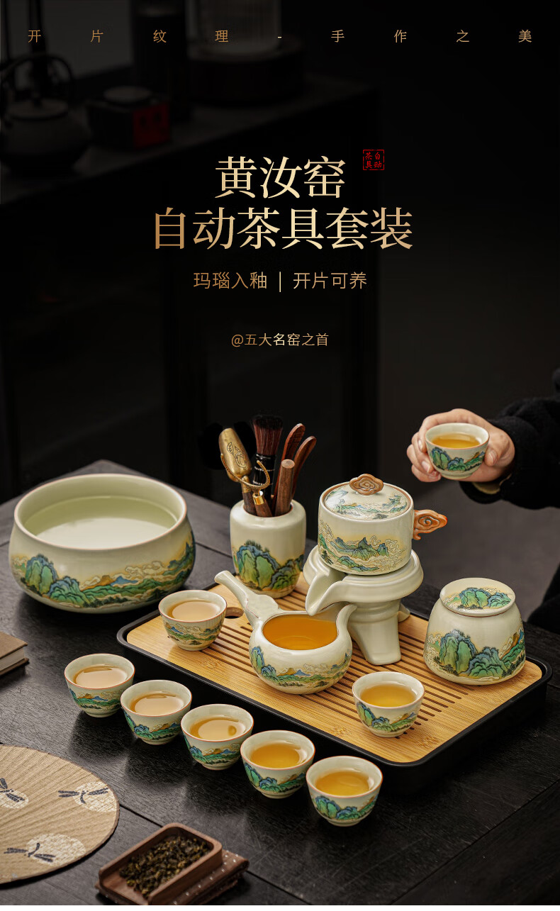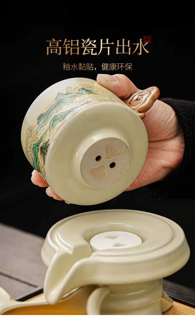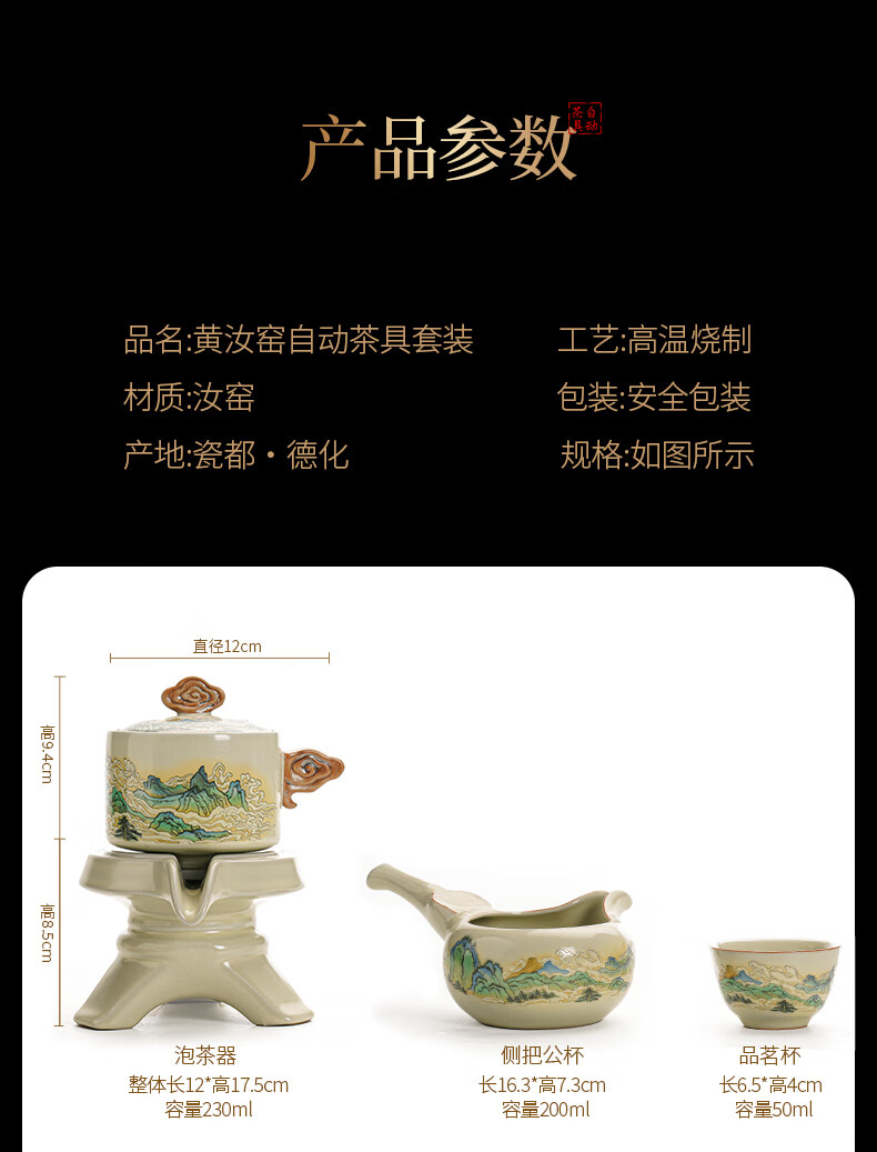 Xiangye Huangru kiln fully automatic lazy kung fu tea set set for home light luxury high-end lazy teapot artifact tea cup Huangru Qianli Jiangshan automatic eight cups 12 pieces + gift box