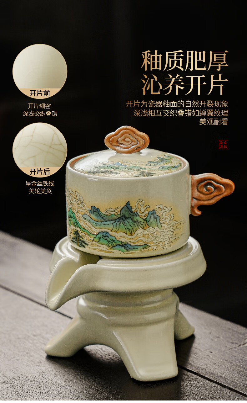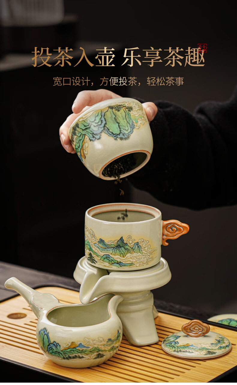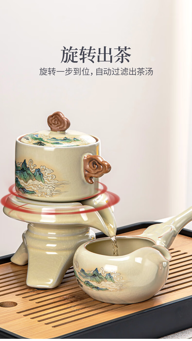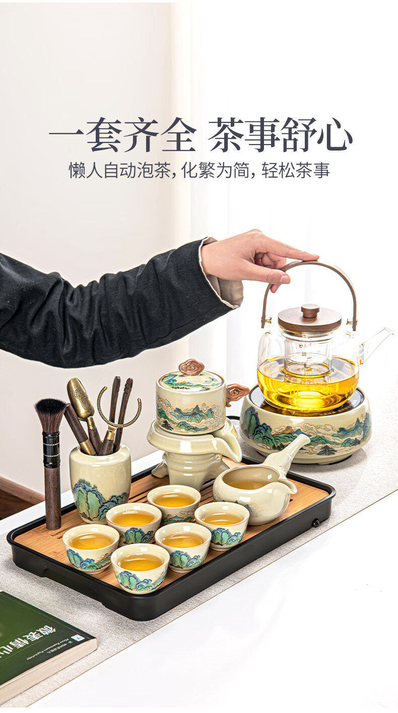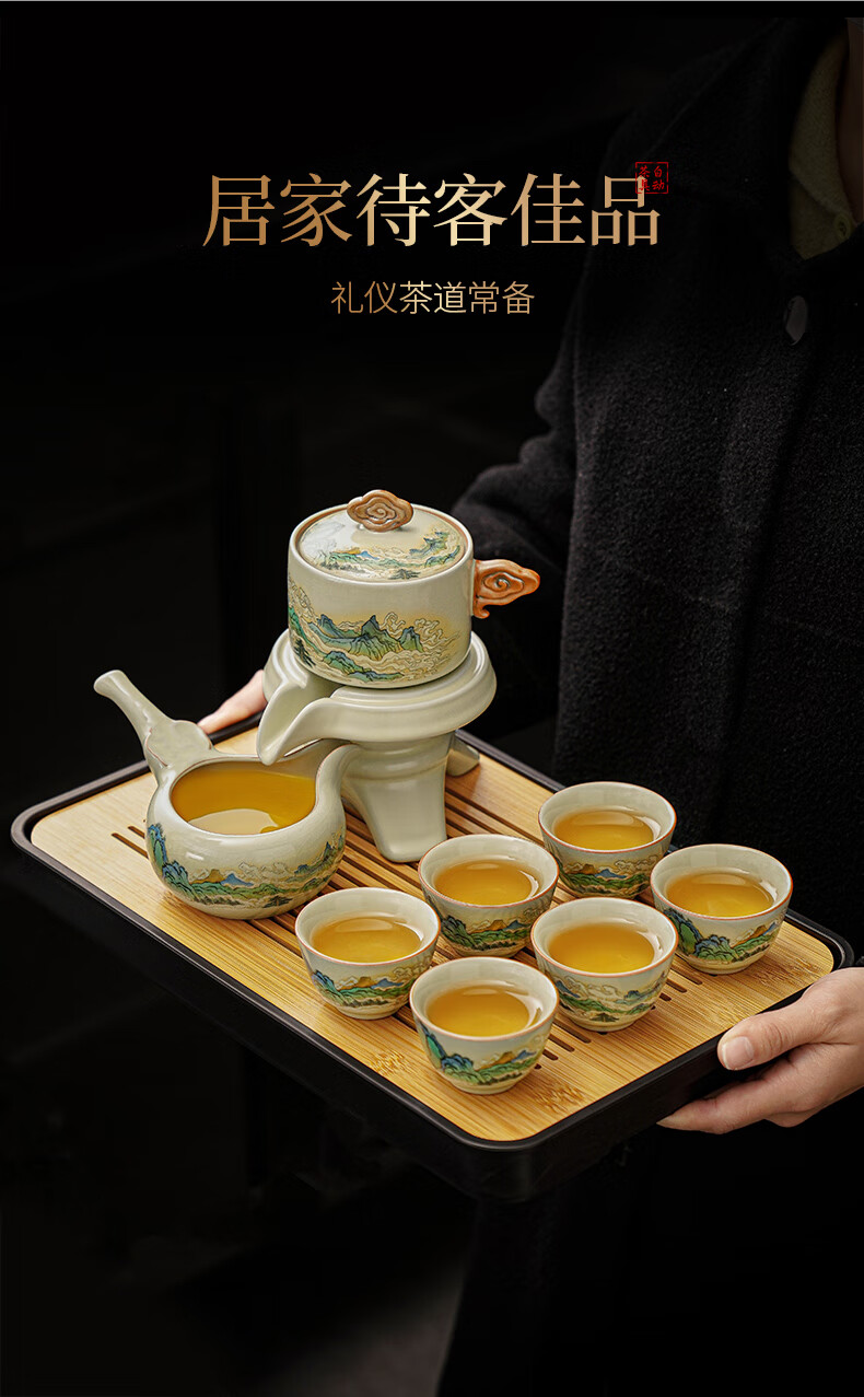 Xiangye Huangru kiln fully automatic lazy kung fu tea set set for home light luxury high-end lazy teapot artifact tea cup Huangru Qianli Jiangshan automatic eight cups 12 pieces + gift box