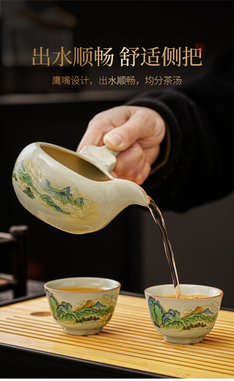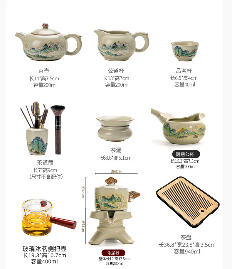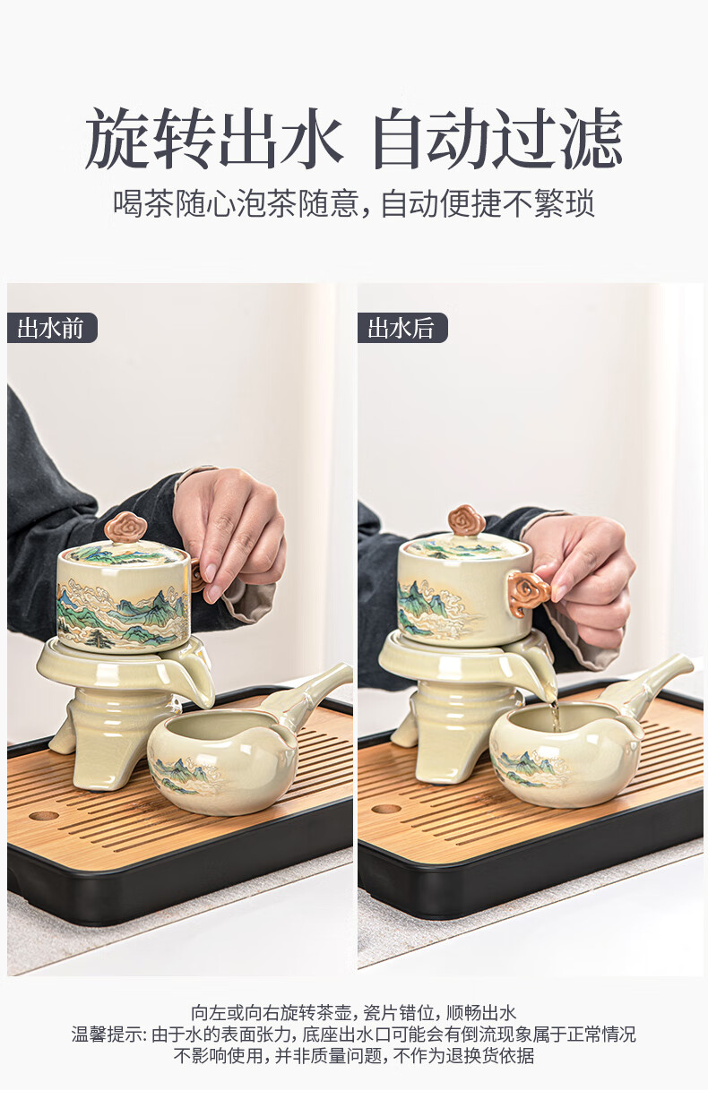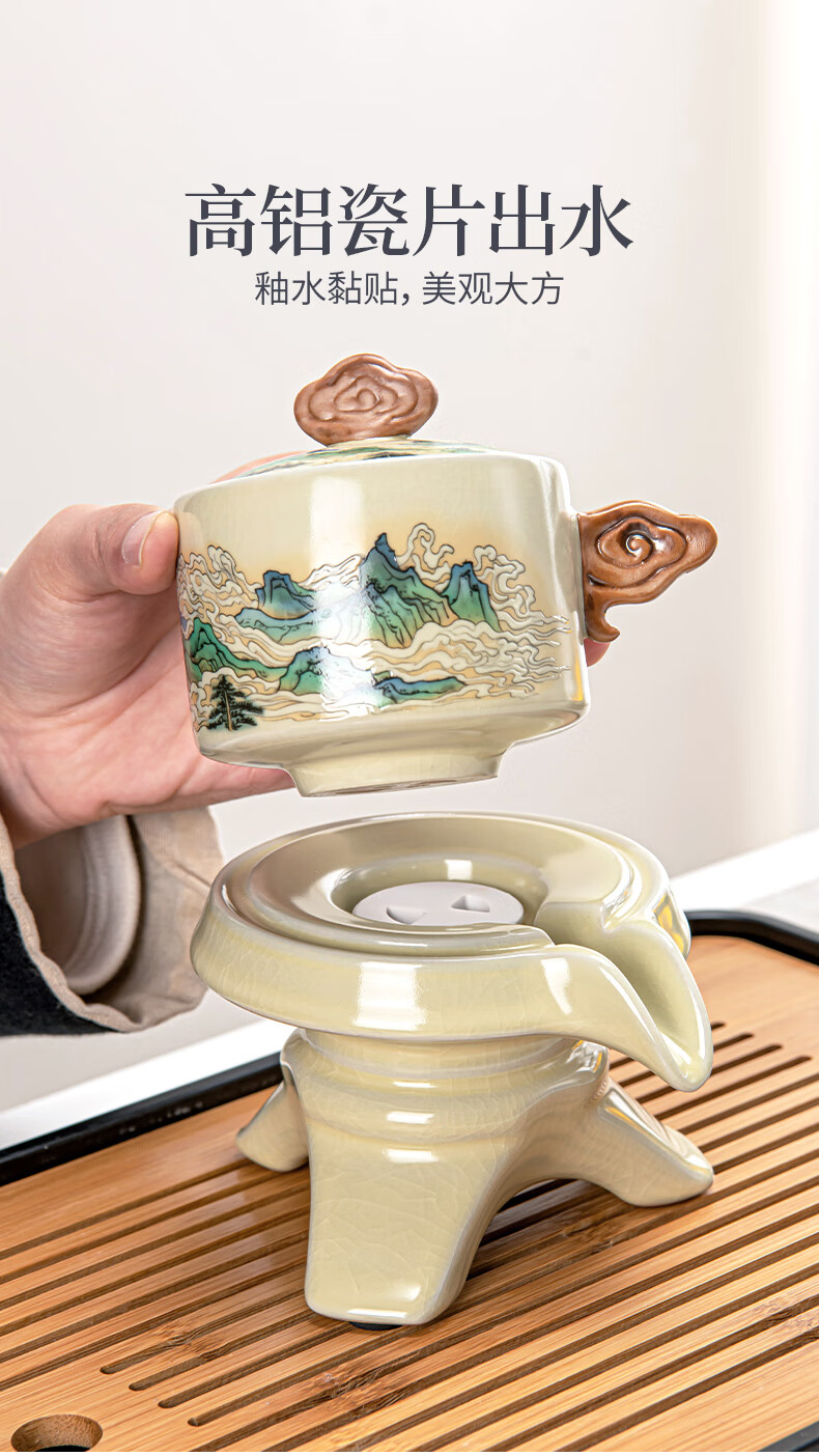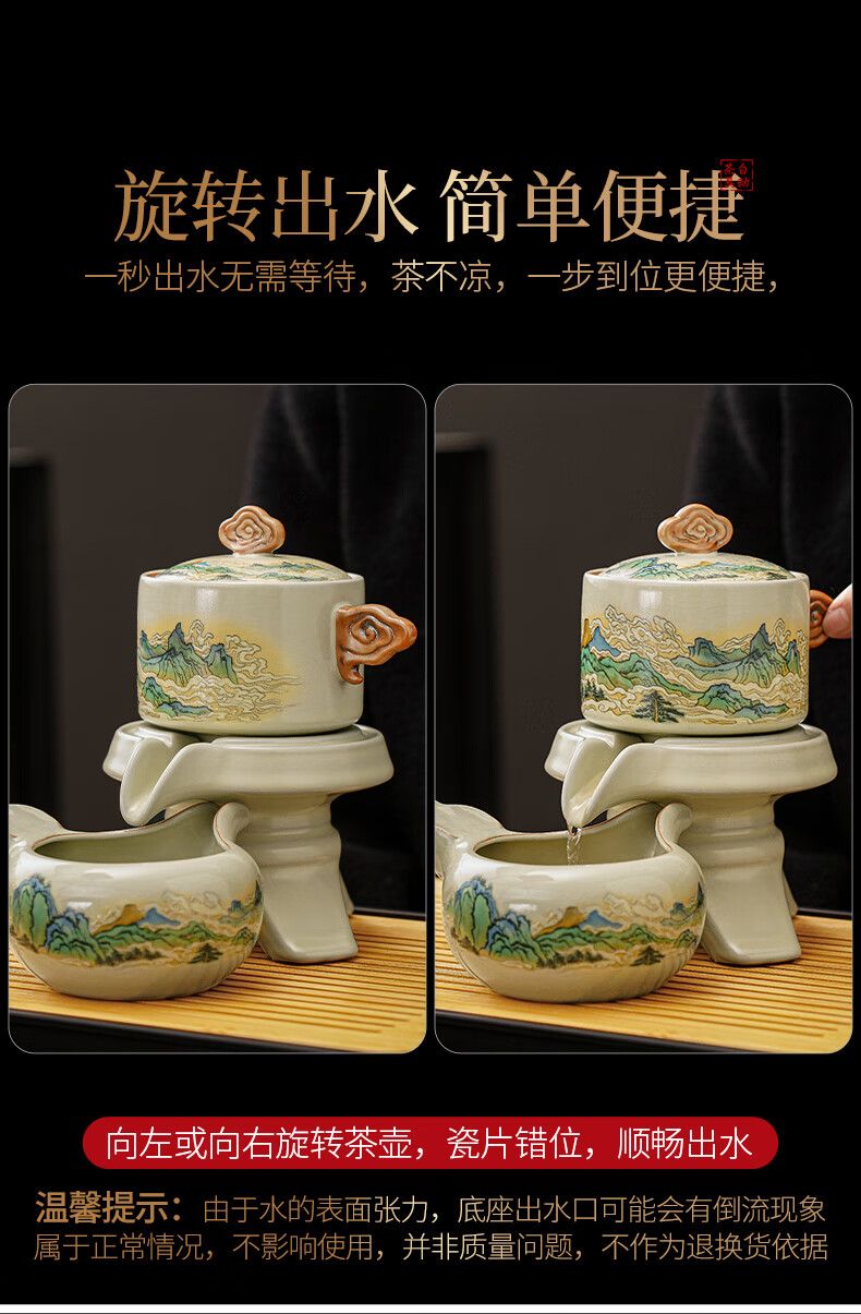 Xiangye Huangru kiln fully automatic lazy kung fu tea set set for home light luxury high-end lazy teapot artifact tea cup Huangru Qianli Jiangshan automatic eight cups 12 pieces + gift box