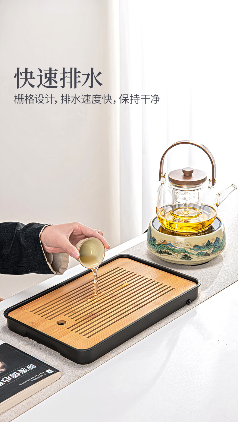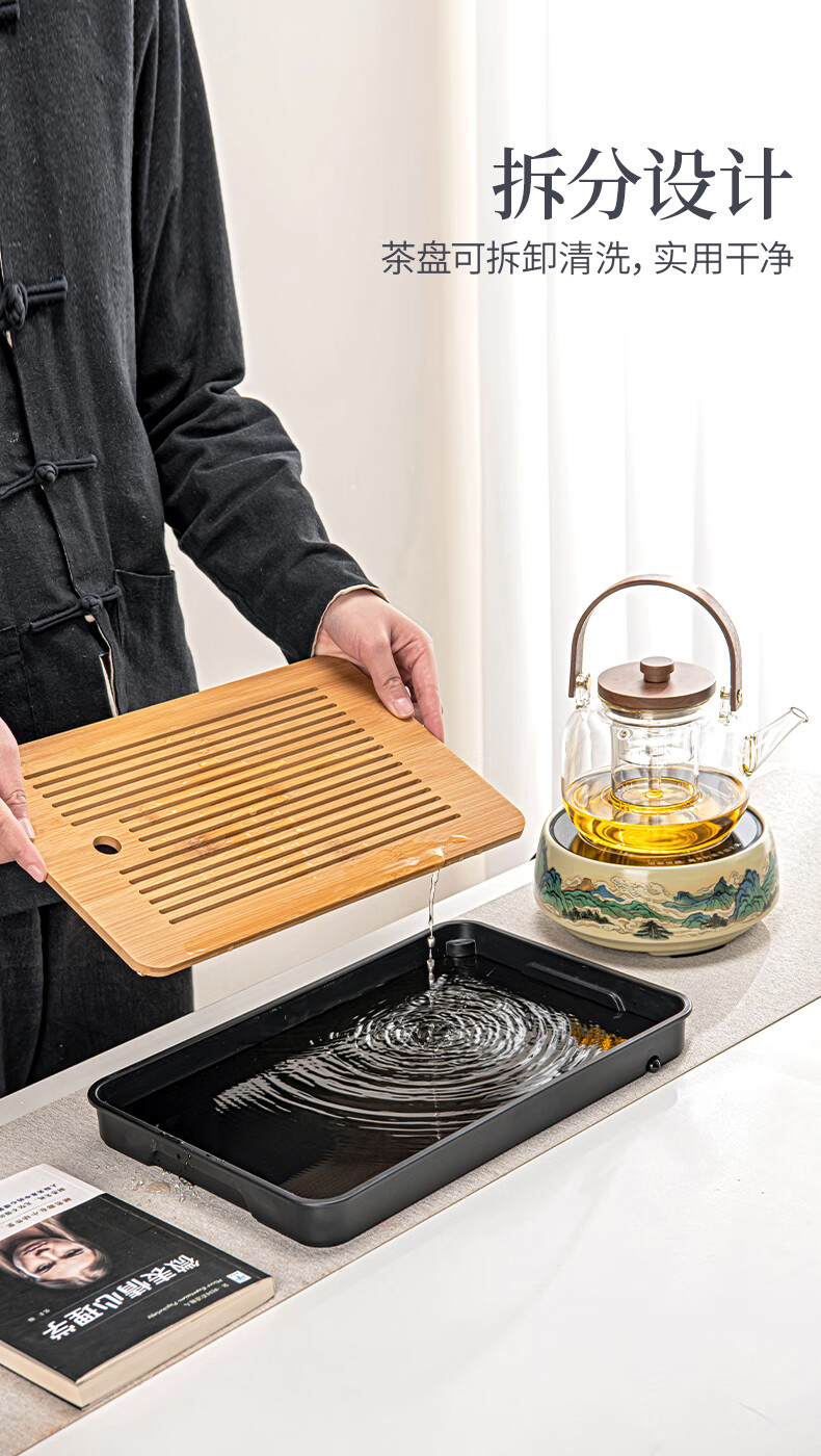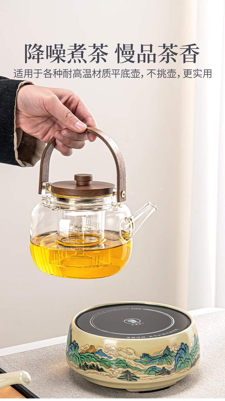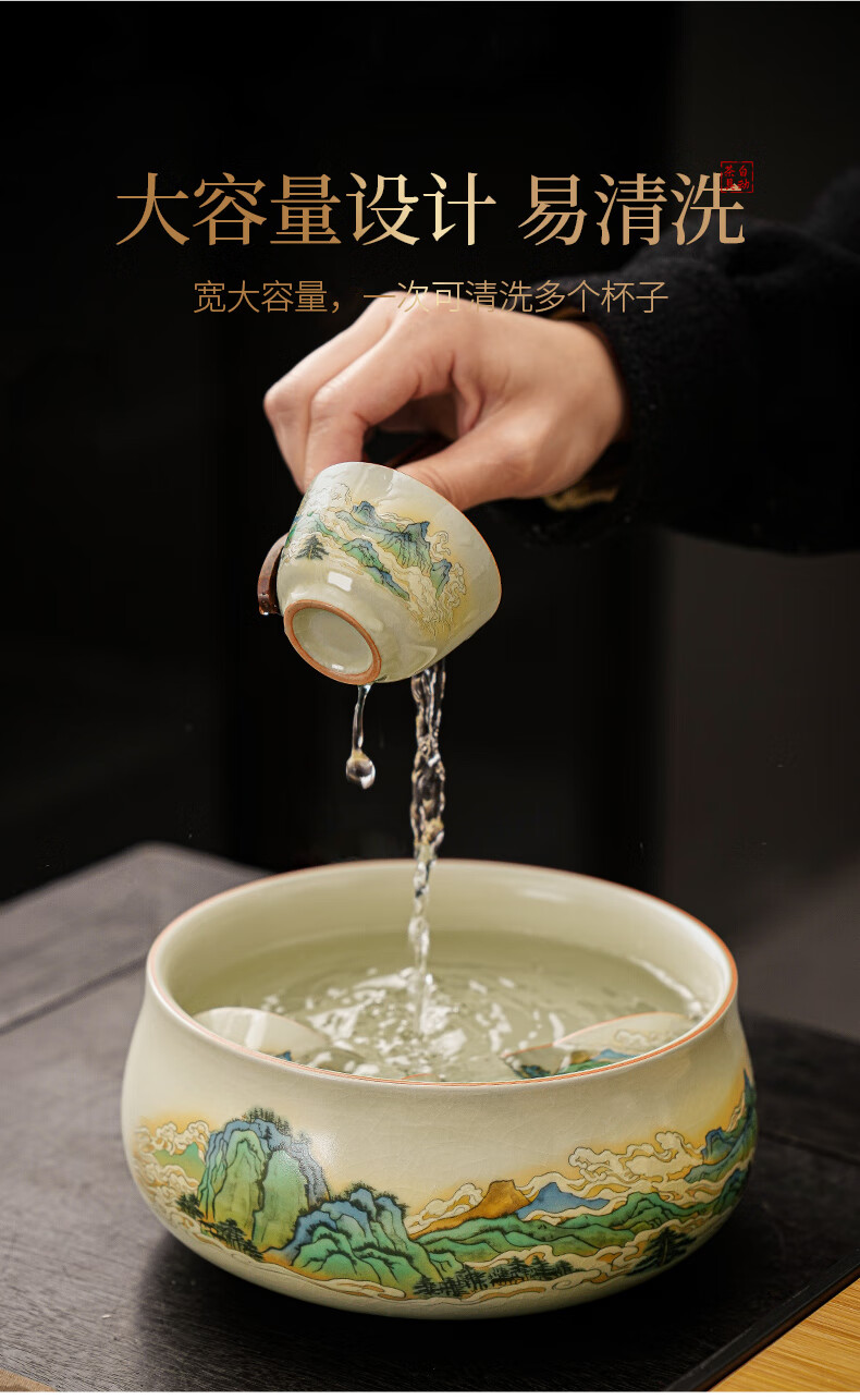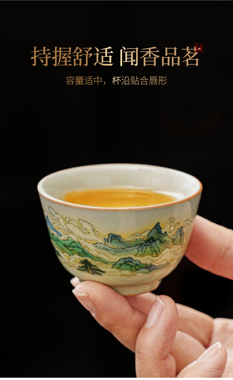 Xiangye Huangru kiln fully automatic lazy kung fu tea set set for home light luxury high-end lazy teapot artifact tea cup Huangru Qianli Jiangshan automatic eight cups 12 pieces + gift box