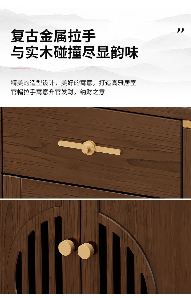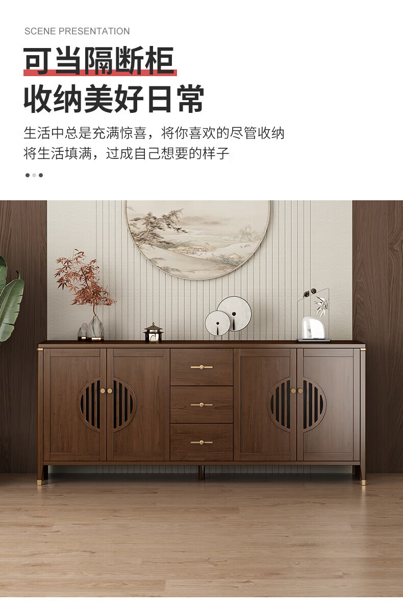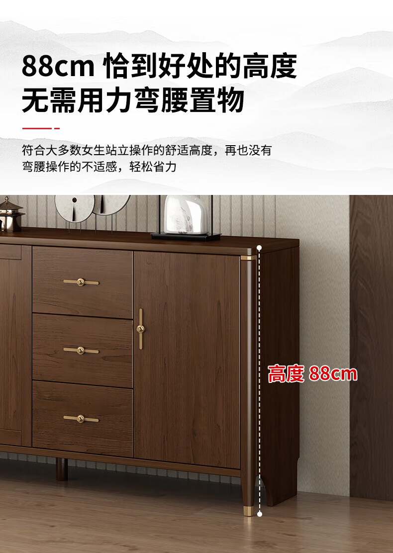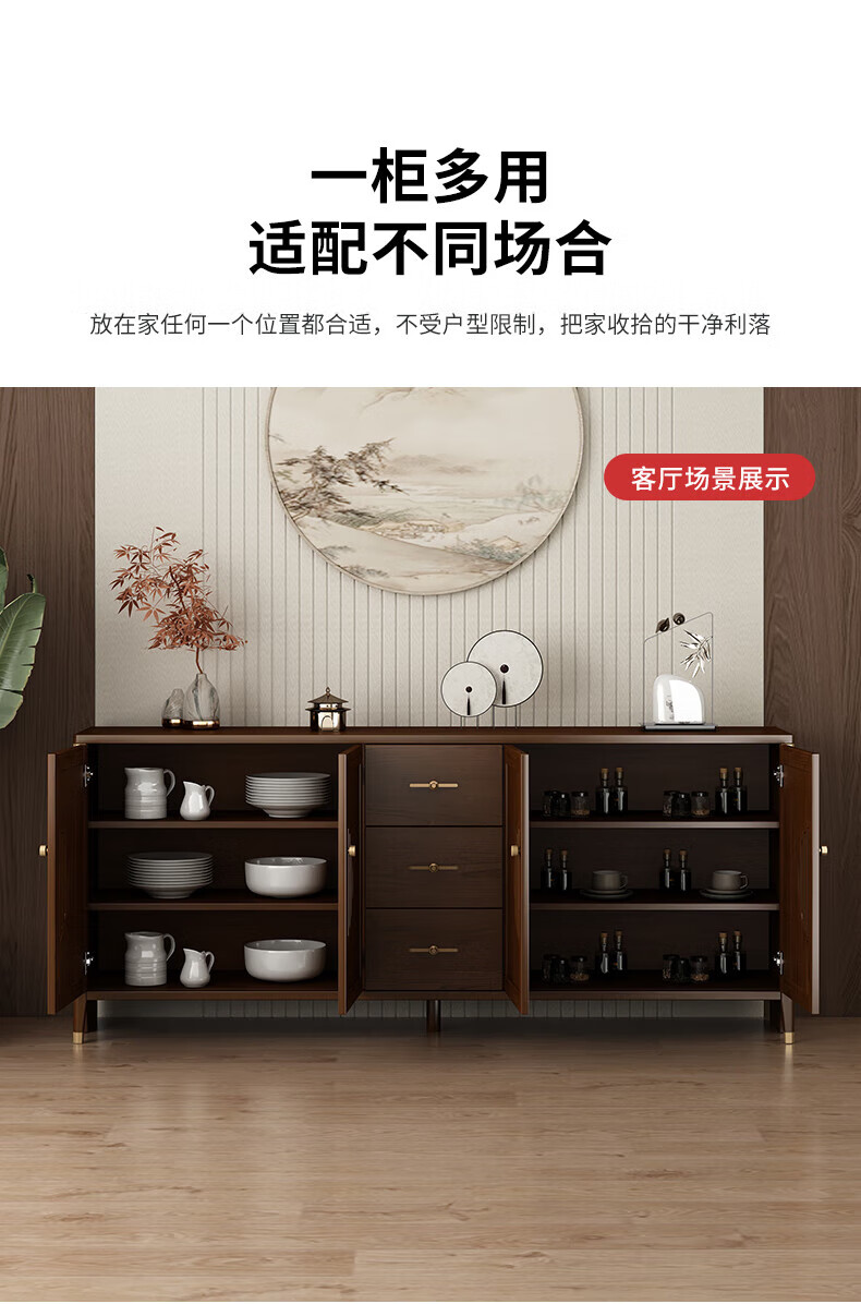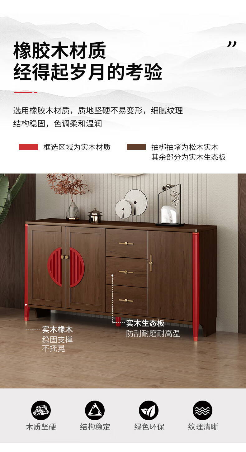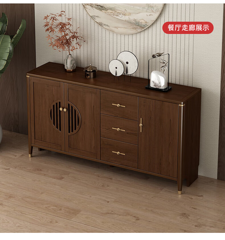 Huanghai Furniture new Chinese style solid wood sideboard tea cabinet wine cabinet multi-functional all-in-one wall storage cupboard home kitchen sideboard metal handle + solid wood cabinet leg length 158CM