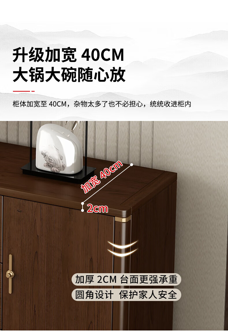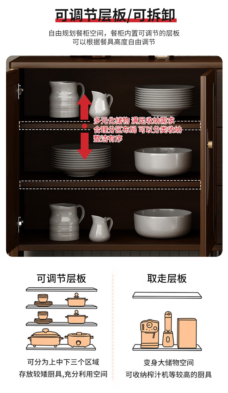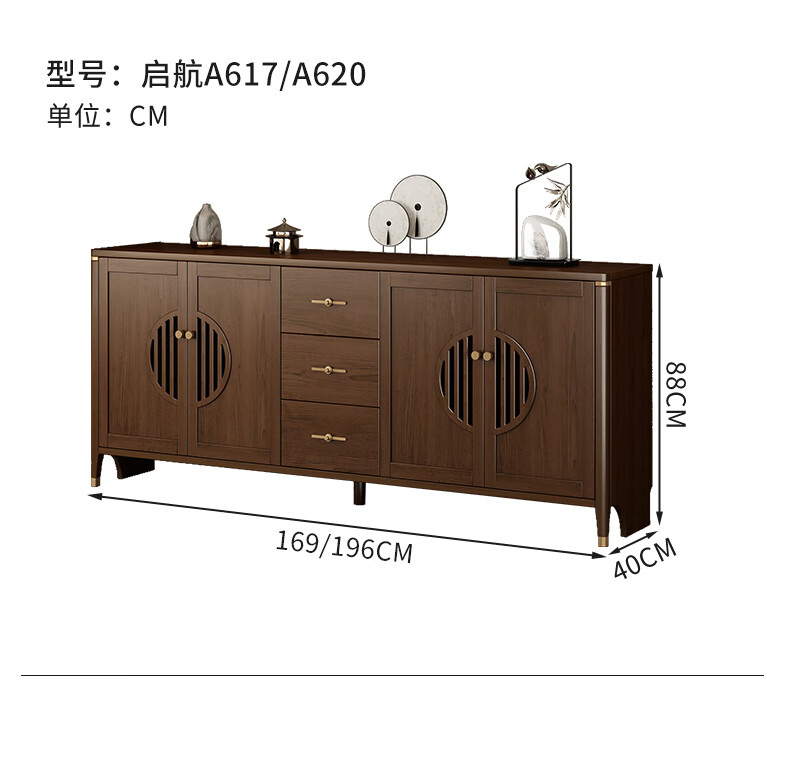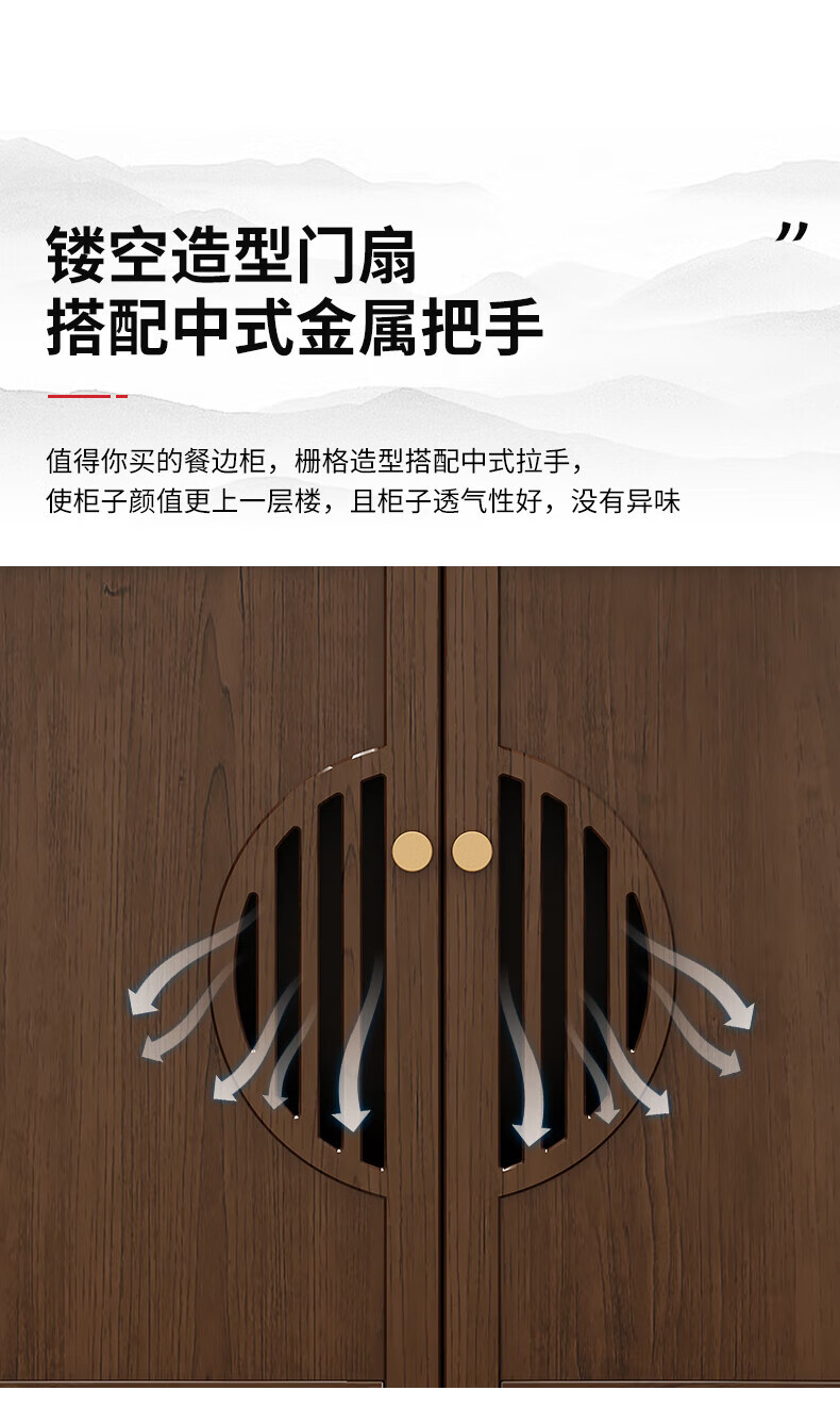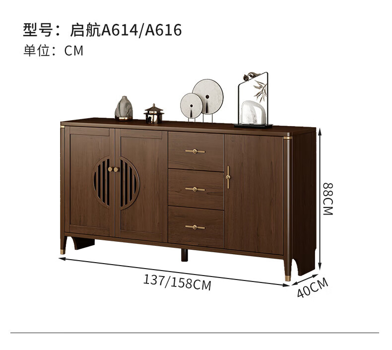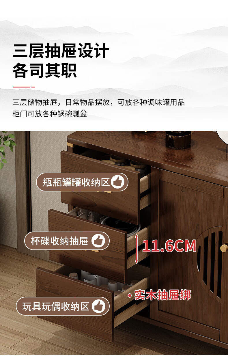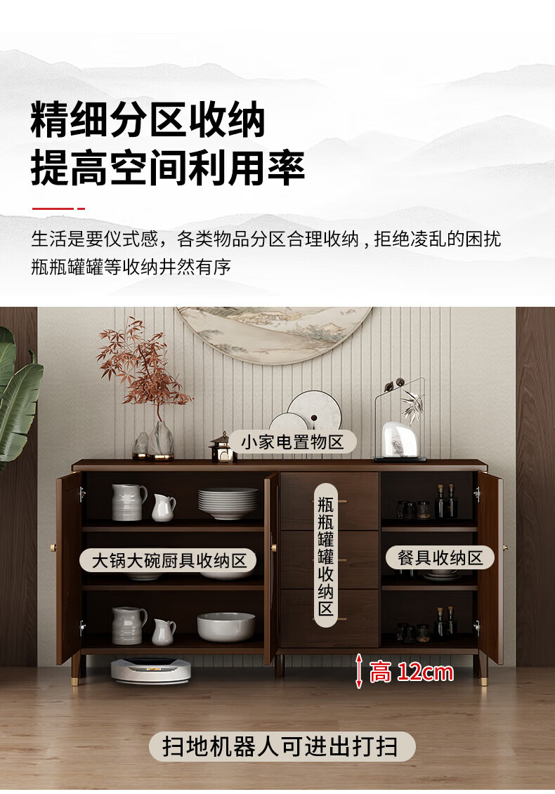 Huanghai Furniture new Chinese style solid wood sideboard tea cabinet wine cabinet multi-functional all-in-one wall storage cupboard home kitchen sideboard metal handle + solid wood cabinet leg length 158CM