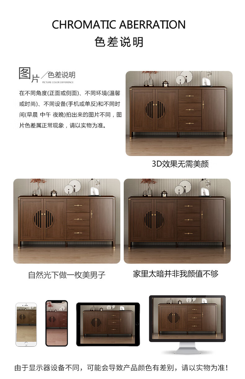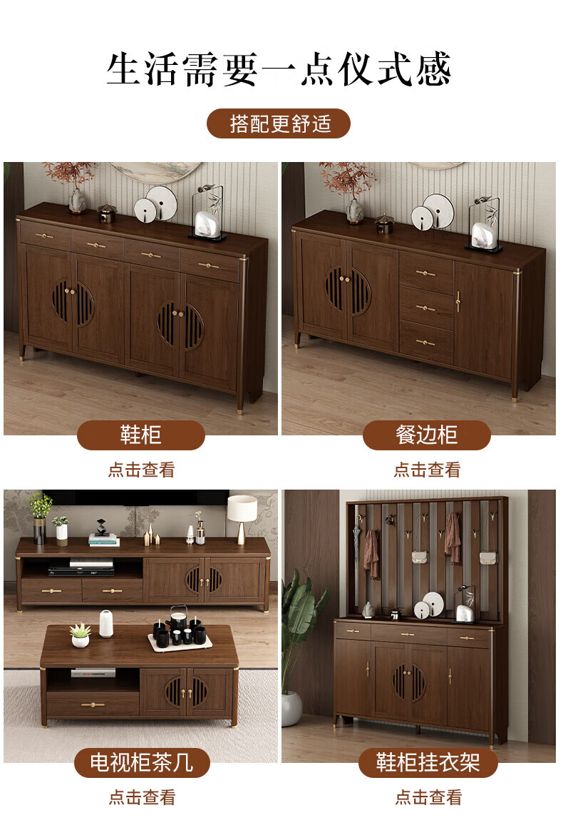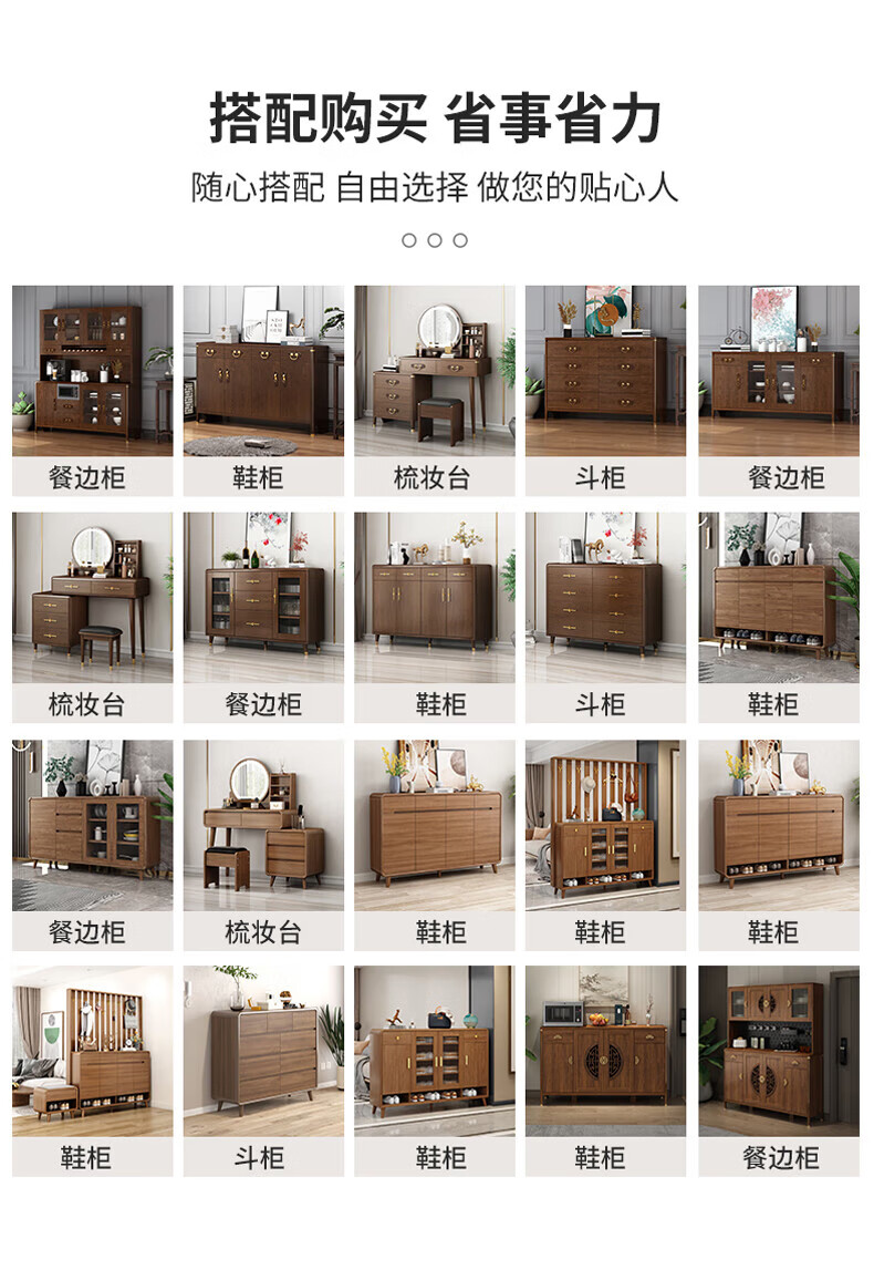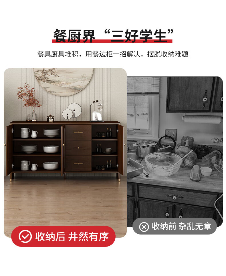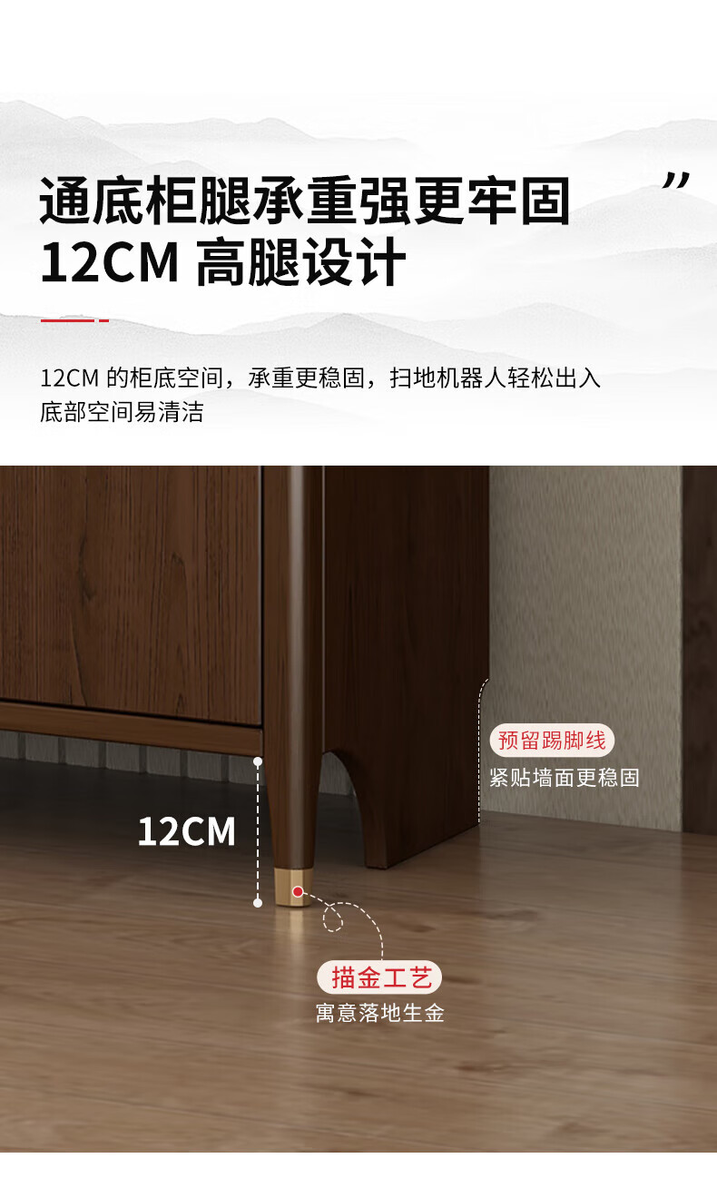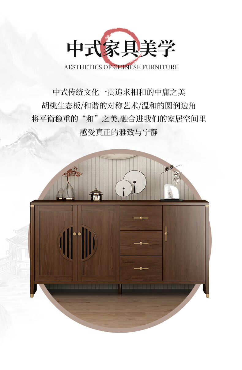 Huanghai Furniture new Chinese style solid wood sideboard tea cabinet wine cabinet multi-functional all-in-one wall storage cupboard home kitchen sideboard metal handle + solid wood cabinet leg length 158CM