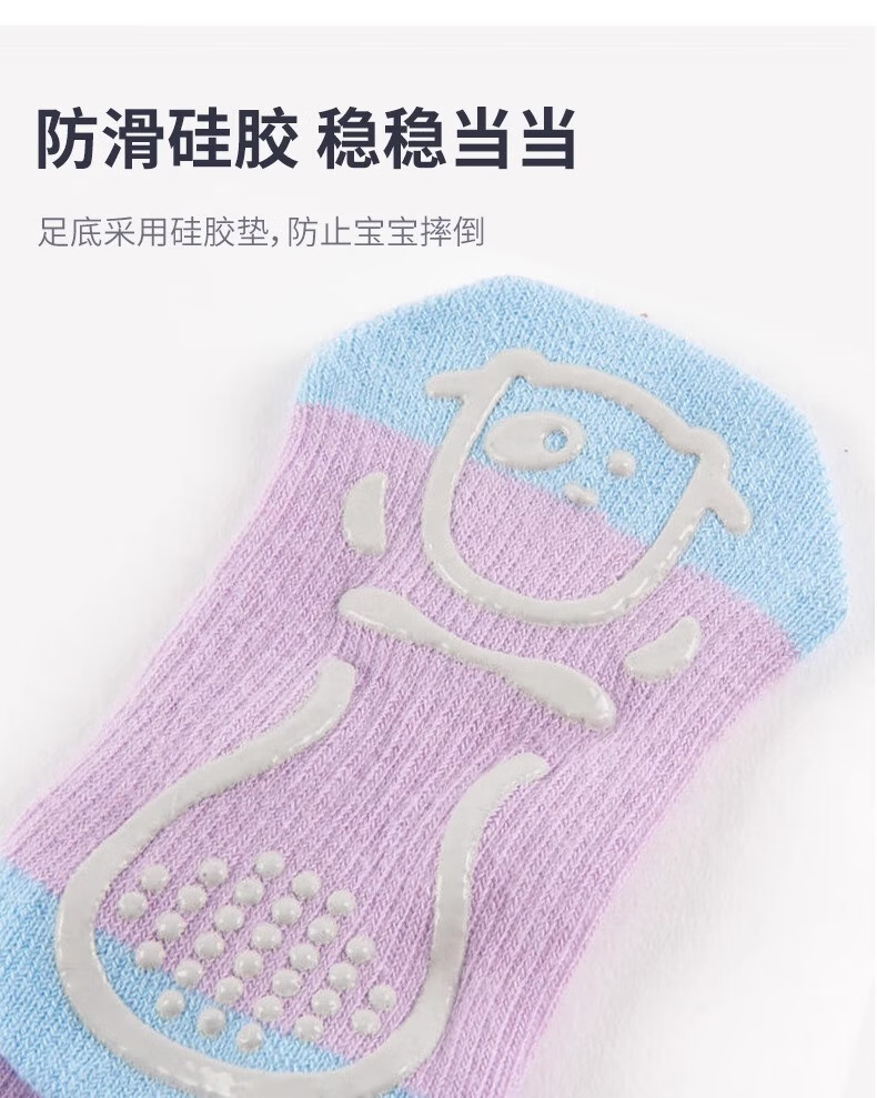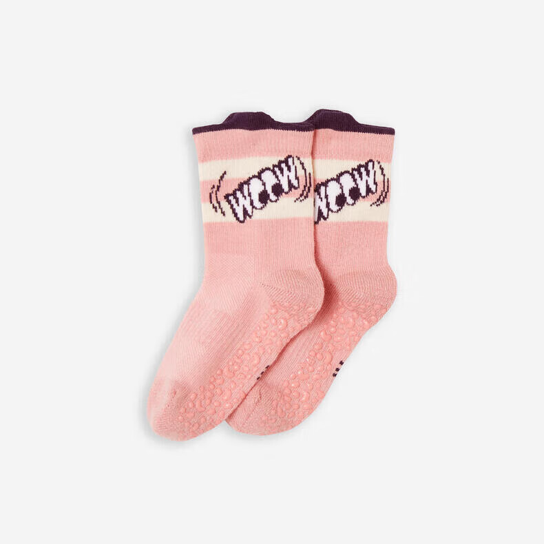 Decathlon baby socks spring and autumn children's cotton socks baby 1~3 years old baby anti-slip trampoline socks floor socks old pink 19~22 size