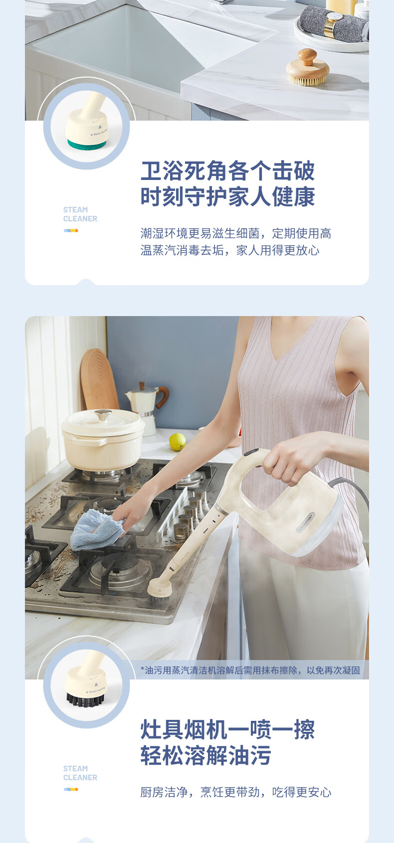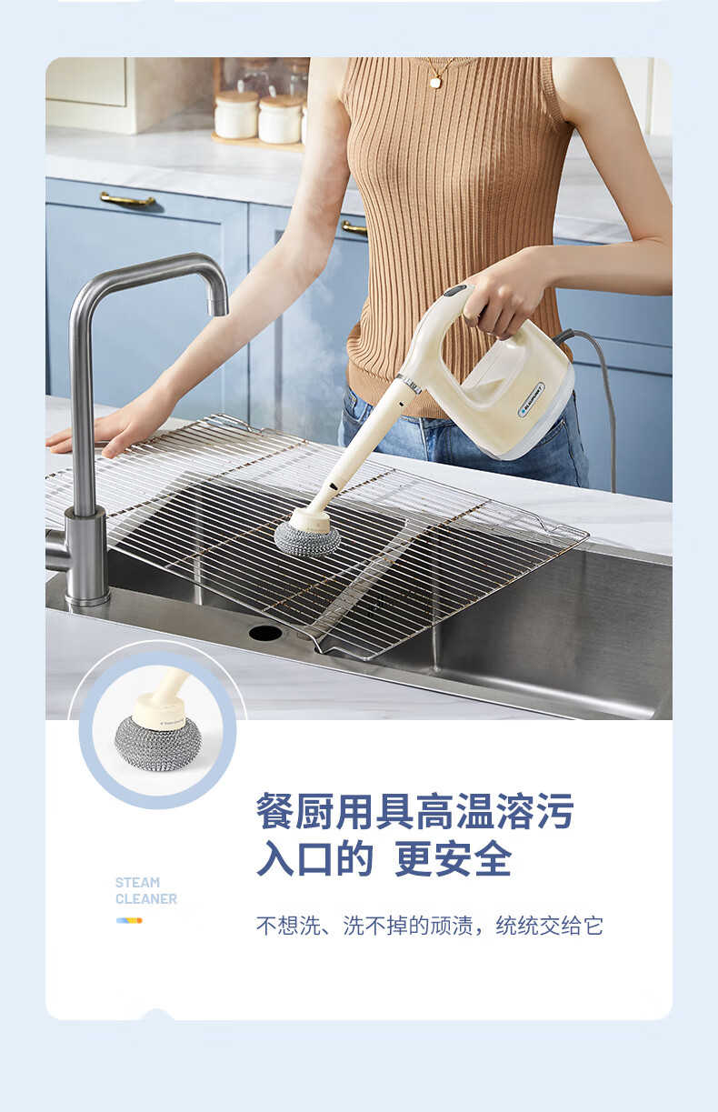 Sapphire steam cleaner household kitchen range hood cleaning artifact multi-functional high temperature and high pressure steam engine kitchen air conditioner cleaning machine all-in-one handheld 24-year new color warm apricot yellow upgraded 12-piece complete set