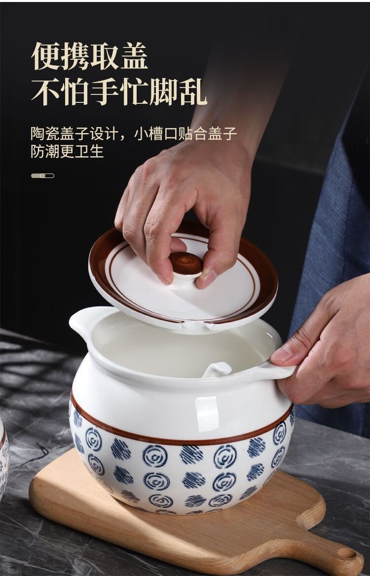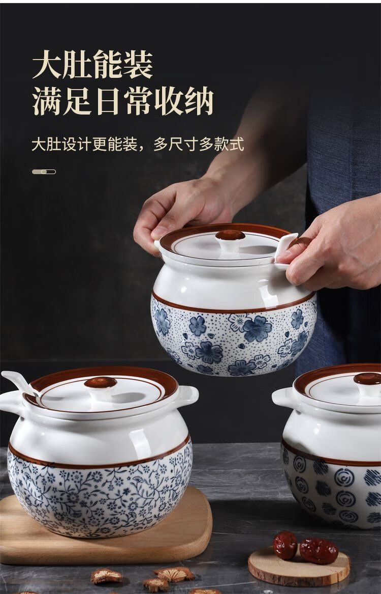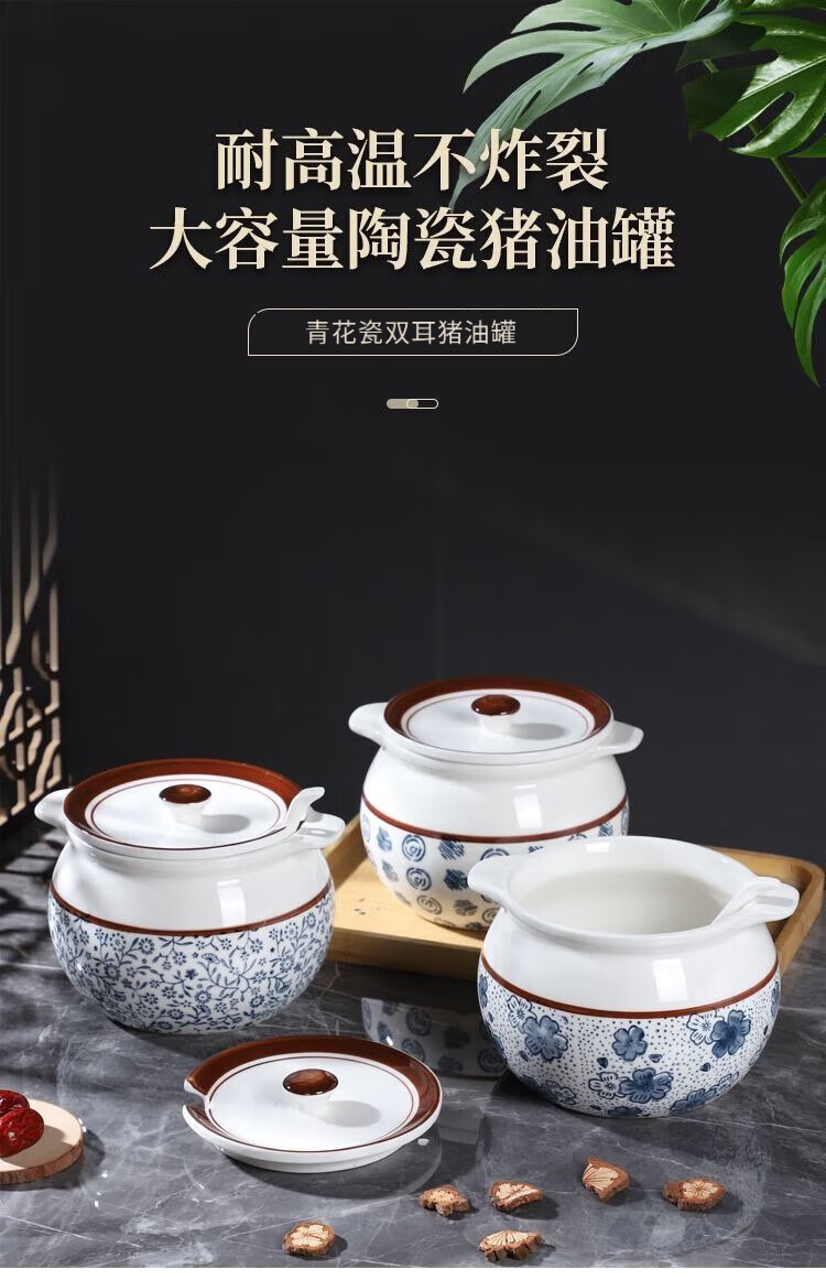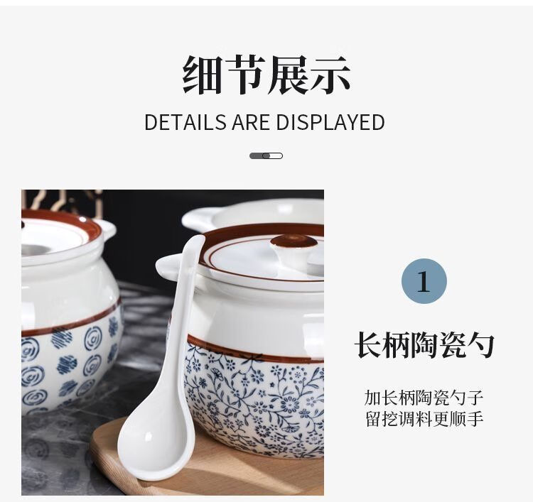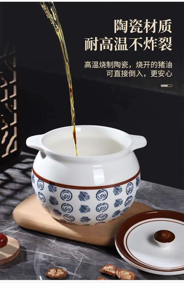 High-temperature ceramic lard jar, thickened amphora oil bottle with spoon and lid, seasoning jar, chili oil bottle, Uncaria thickened with spoon 5Jin Jin is equal to 0.5kg 2500ml