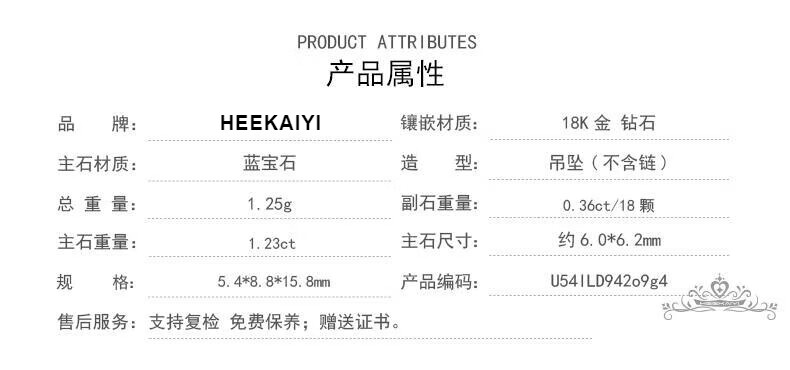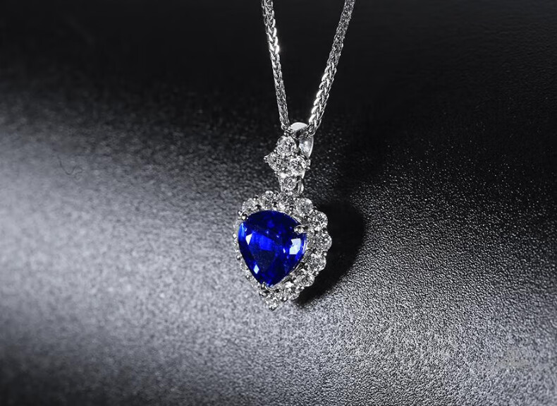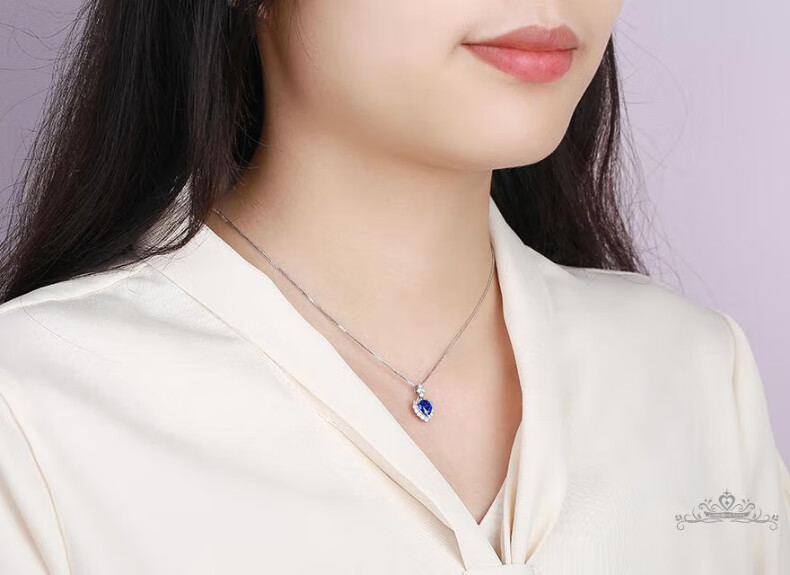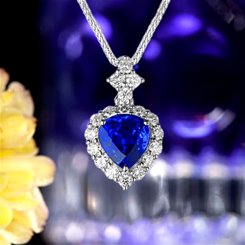 Haikai Necklace Women's Heart of the Ocean Sapphire Necklace Luxury Jewelry Valentine's Day Birthday Gift for Wife Heart-Shaped Cornflower Sapphire Necklace (1.23 carats/Selected Flawless)