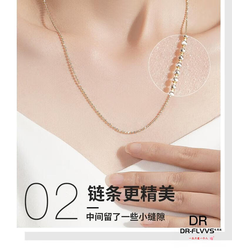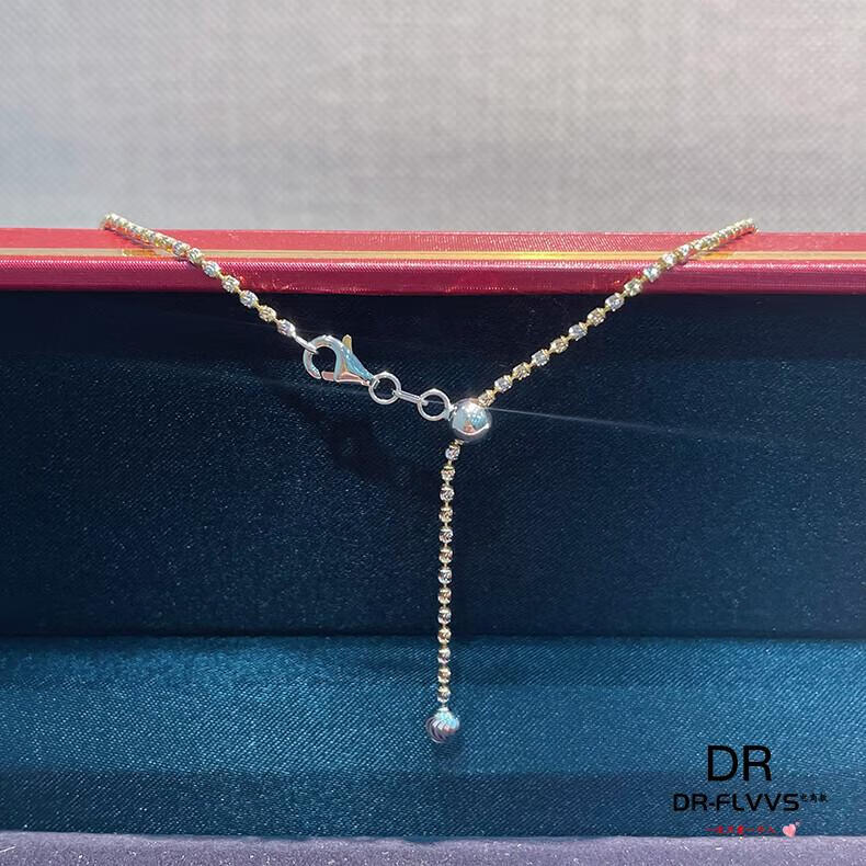 Fat Donglai's same Italian 18k gold-plated necklace, silver diamond chain, 18K gold chain, platinum plain chain for women, imported technical long style - white and yellow 60cm (24 inches)