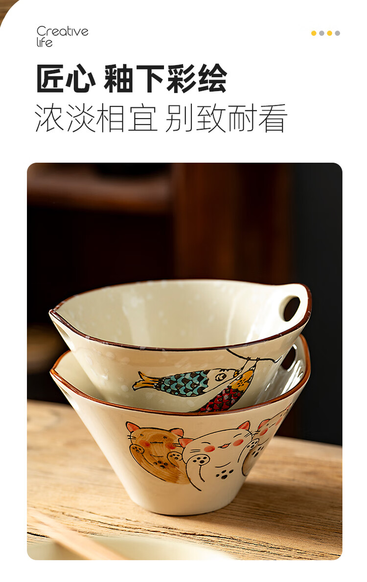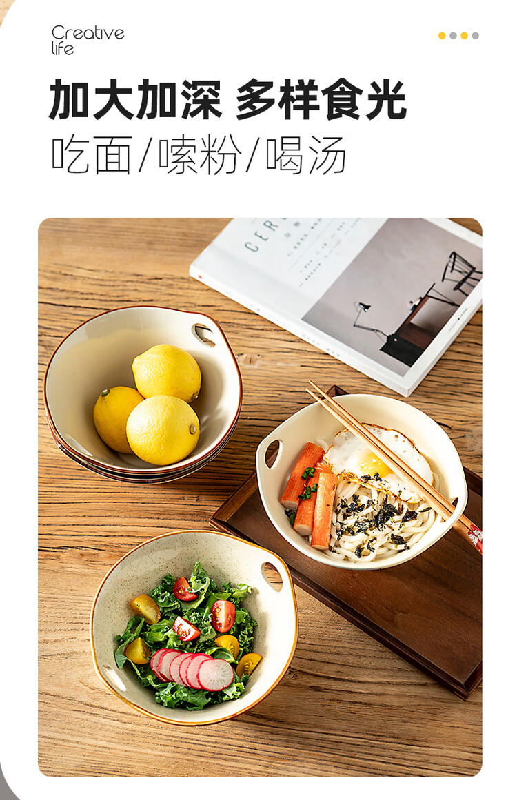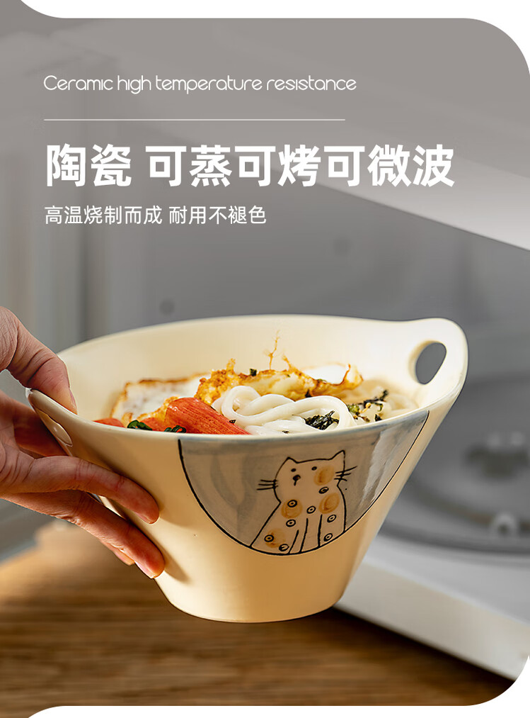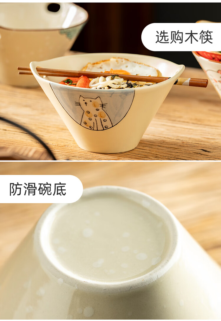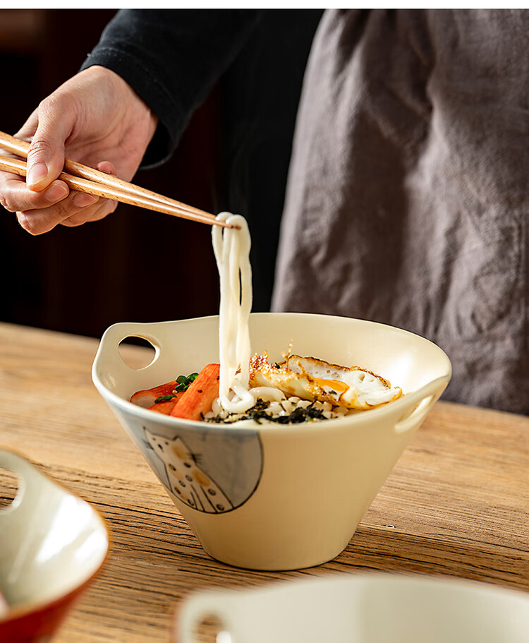 BOMP ceramic holed bamboo hat bowl Japanese retro ramen bowl underglaze color instant noodle bowl cold vegetable noodle bowl red head fish