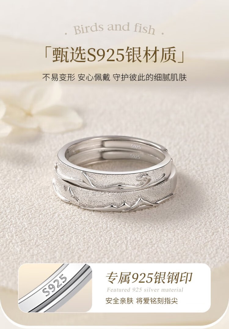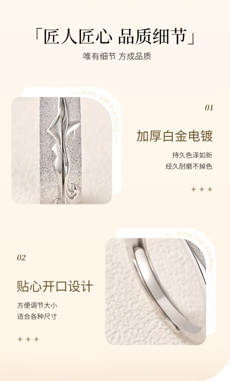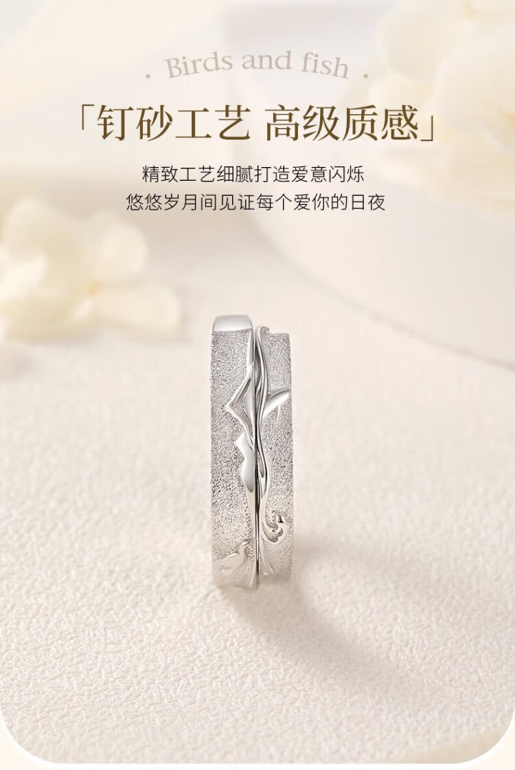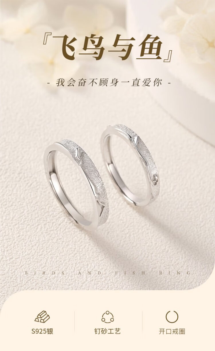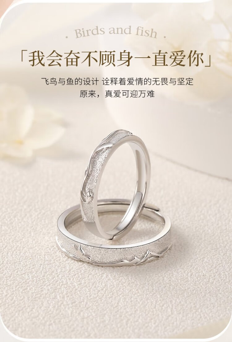 Chinese gold bird and fish couple ring, silver ring, female ring, male ring, Chinese Valentine's Day birthday gift for boyfriend and girlfriend, bird and fish ring + medium gold rose gift box
