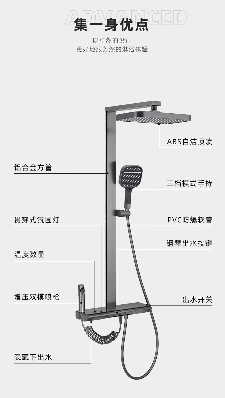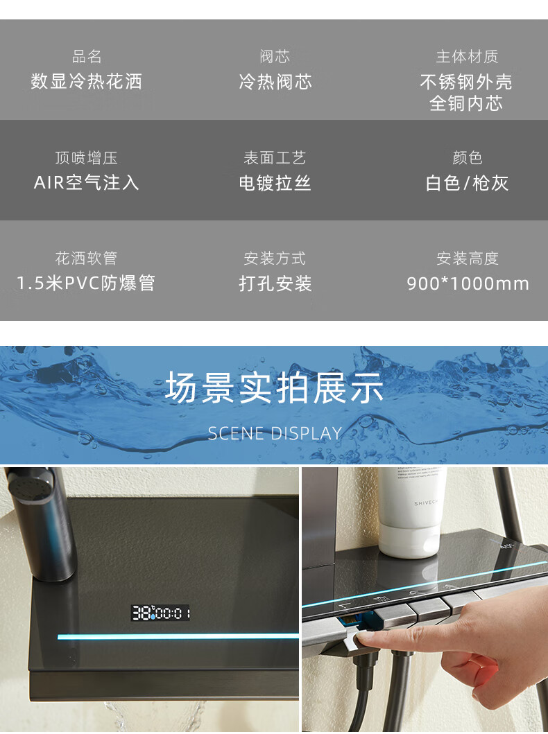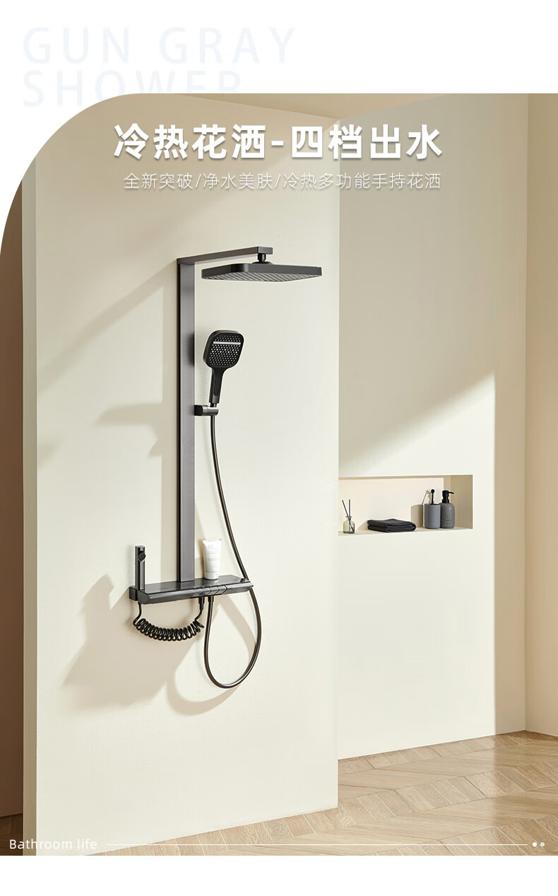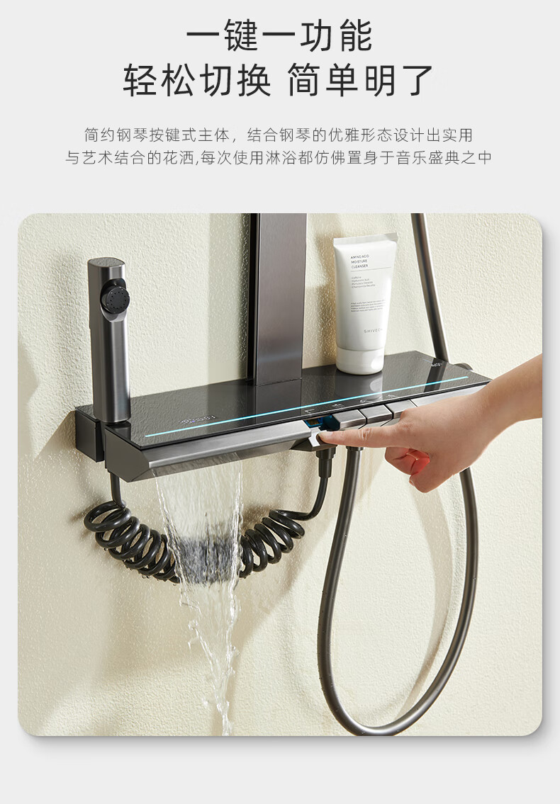 Hansgrohe German all-copper piano key constant temperature shower shower set household shower essence copper gun gray supercharged white nozzle gun gray hot and cold version