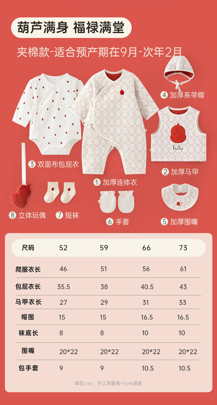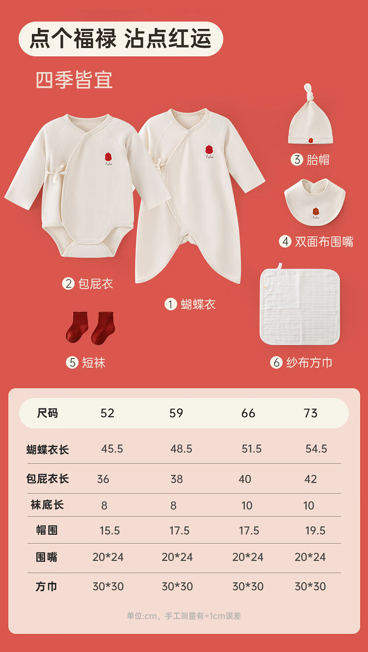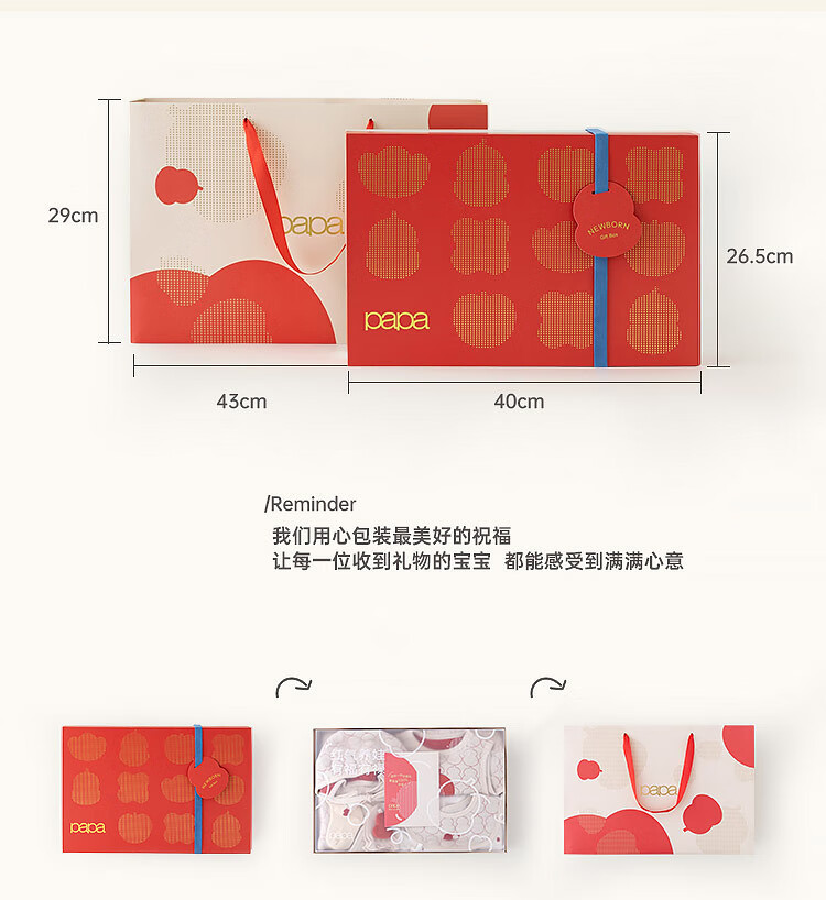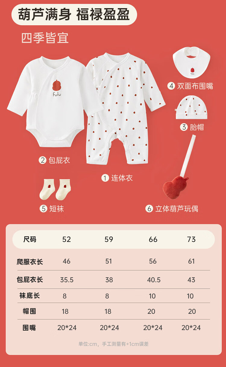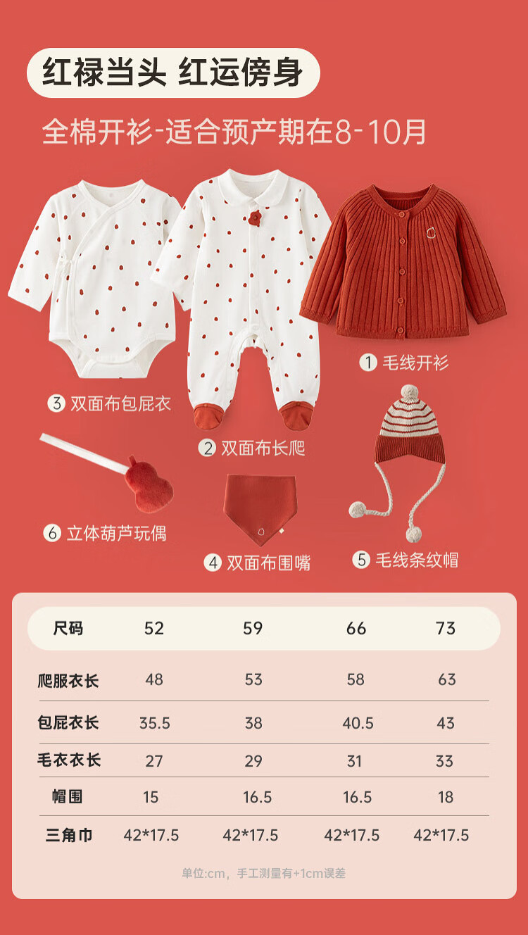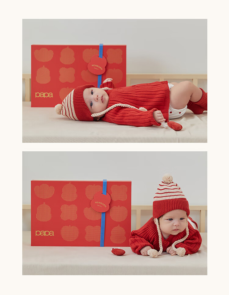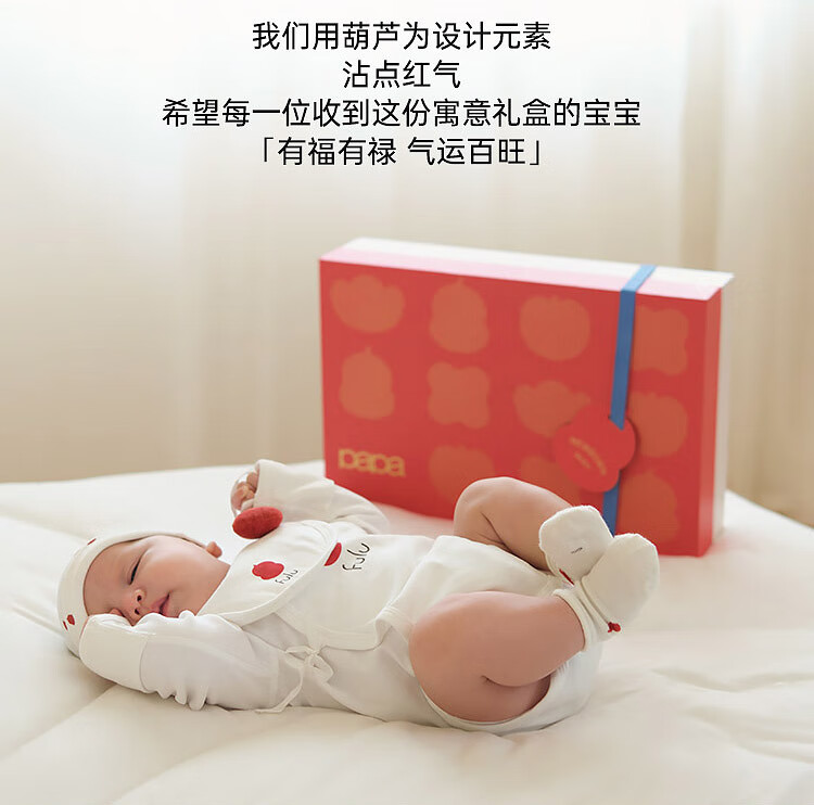 Papa fulu crawling newborn baby complete gift box baby suit clothes ritual cute gift giving red head 66cm