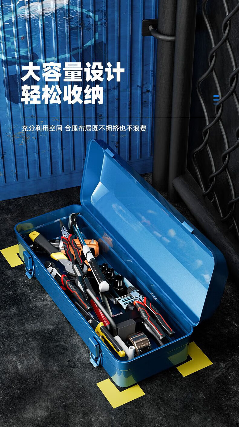 TGK tool box household multifunctional hardware tool box industrial grade storage box empty box thickened metal auto repair tin car economical 350 tool box medium size