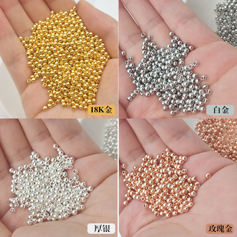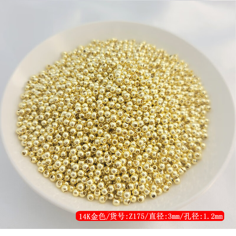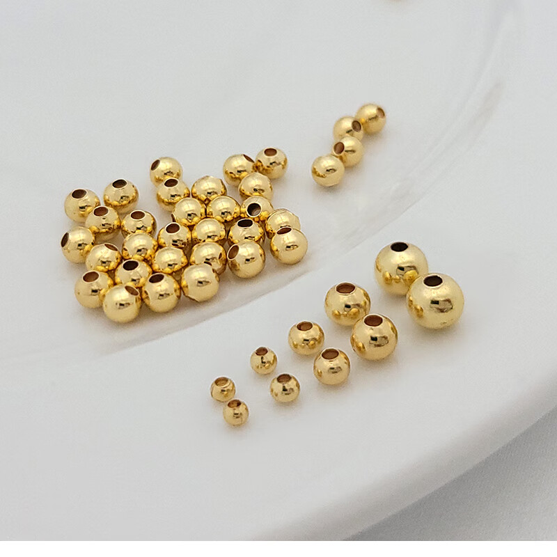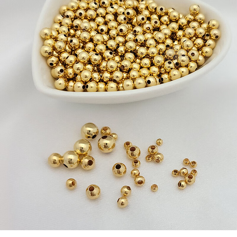 Jea.Pie boutique 18k gold loose beads color-preserving 14K gold-filled spacer beads 18K round gold beads diy bracelet necklace beaded silver Z175 14K gold 3mm round beads 100 pieces