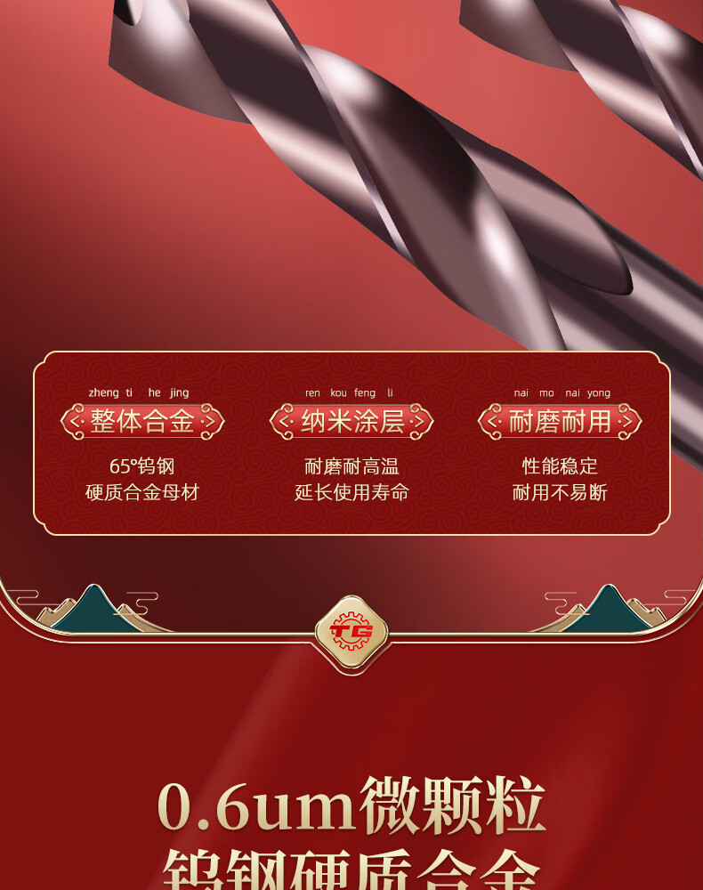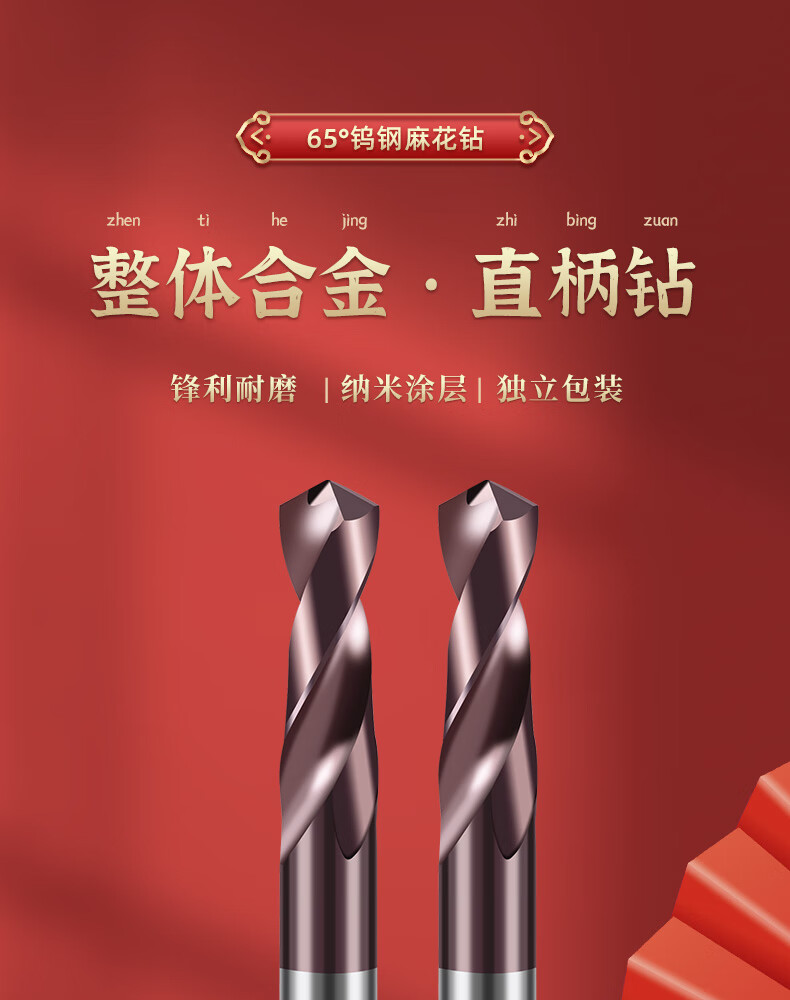 TIANGONG 65-degree carbide drill bits, tungsten steel twist drill bits, special for super-hard drilling of steel and stainless steel 5.0mm