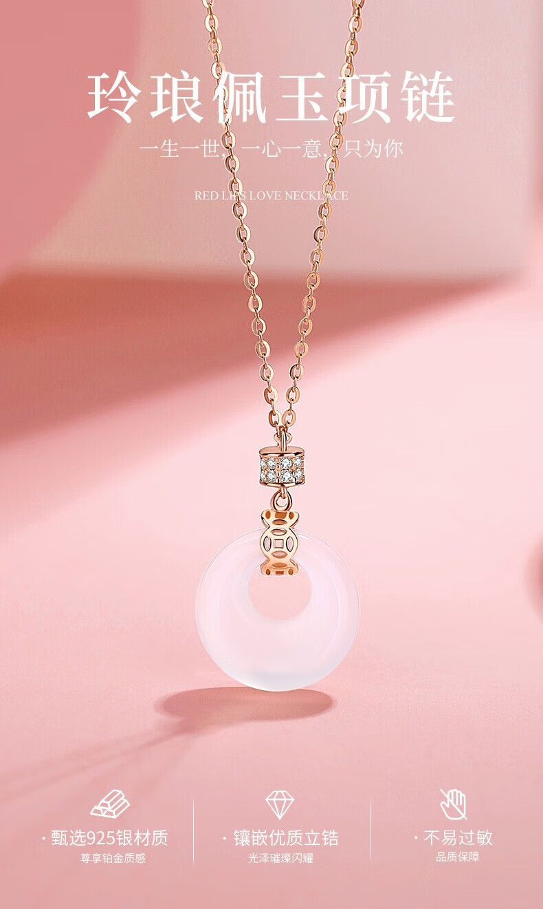 Heartfelt words, safe buckle diamond necklace for women, Hetian jade pendant, high-end heartfelt birthday and anniversary gift for girlfriend and mother, safe buckle necklace
