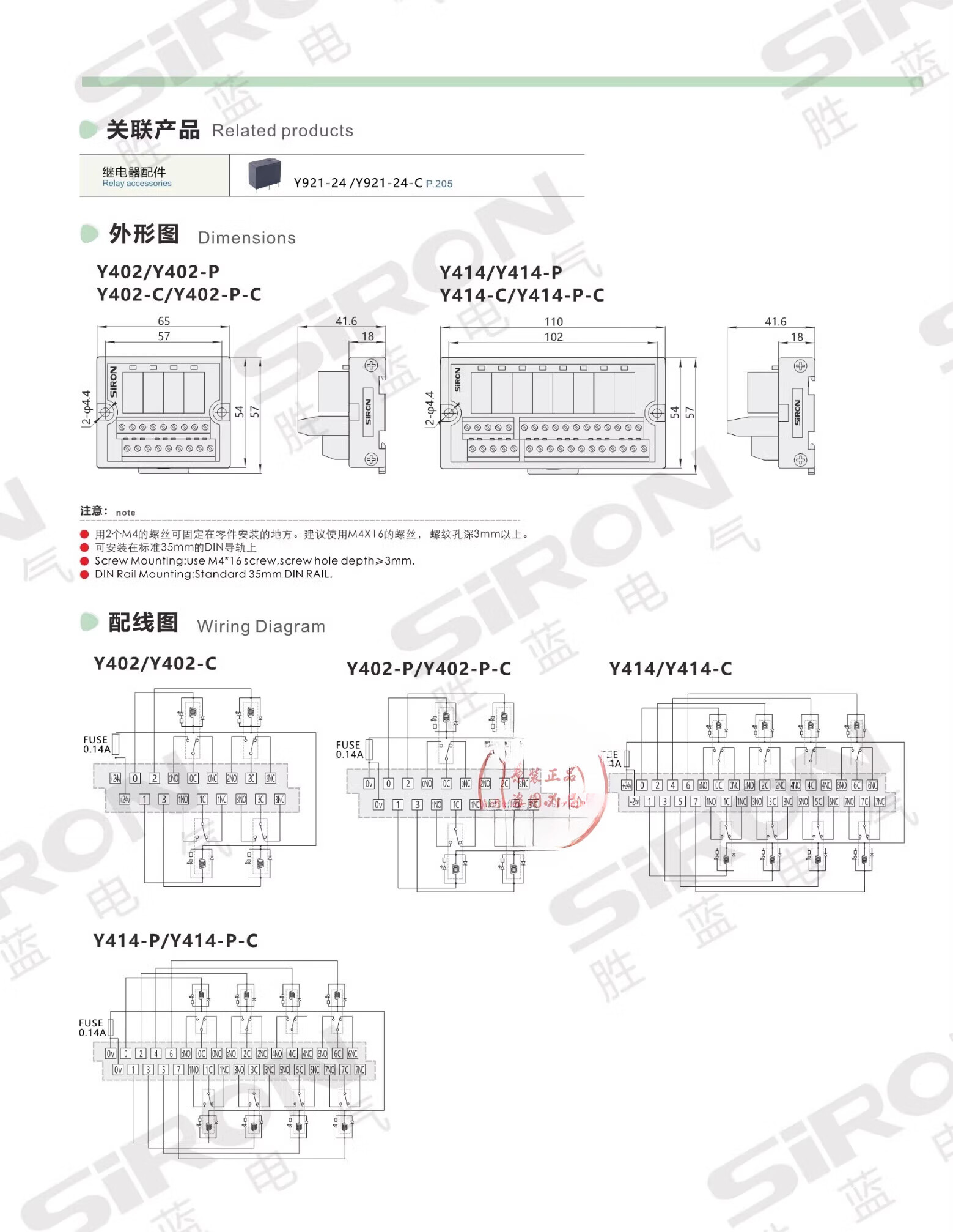 Original SIRON 8-bit relay module Y414 DC24V 8-way relay module Y414