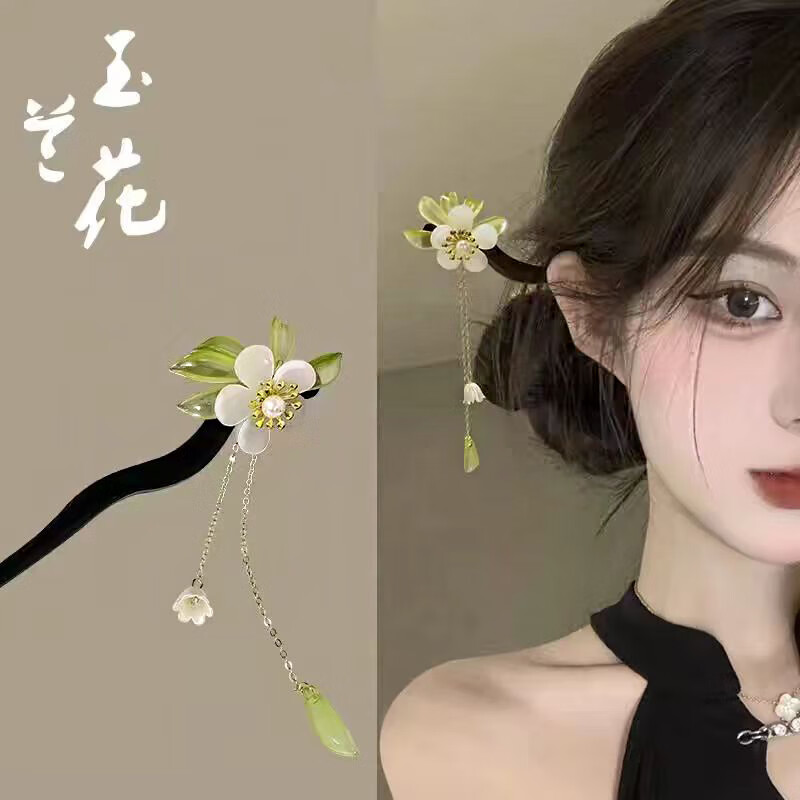 Bai Qixin ancient style hairpin magnolia tassel step shake new Chinese style Chinese style updo wooden hairpin hairpin Hanfu accessories orchid tassel hairpin