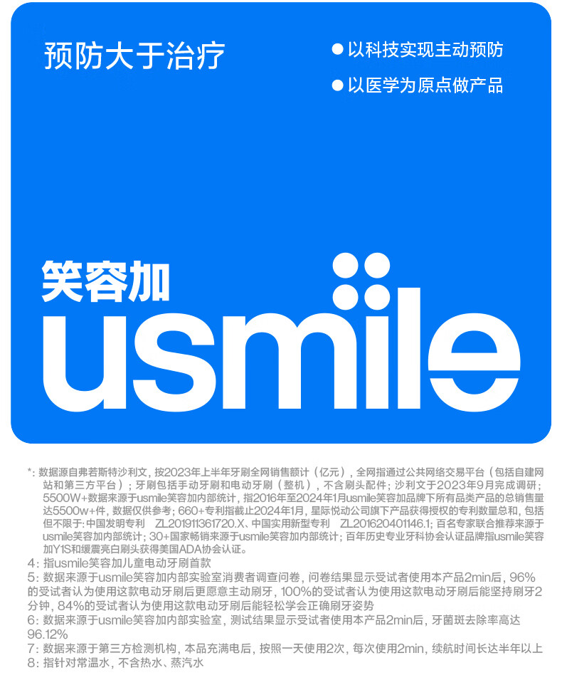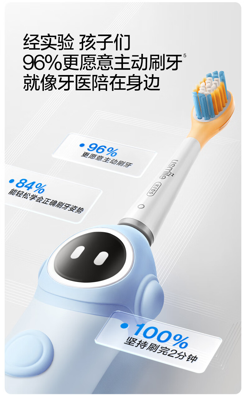 Usmile Smile Plus Children's Electric Toothbrush Q10 3-12 years old missed brushing reminder, toothbrushing guide, gum protection, tooth cleaning, children's birthday gift, corporate procurement, Jingcang Express Delivery Today/Tomorrow, light reminder, toothbrushing guide, Q10 blue