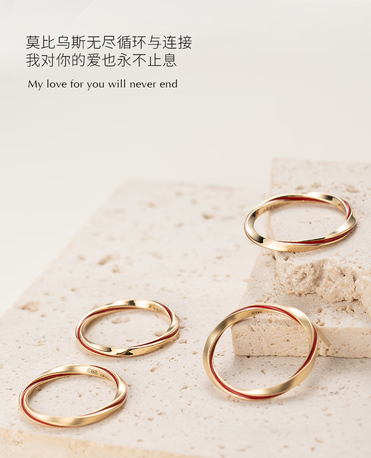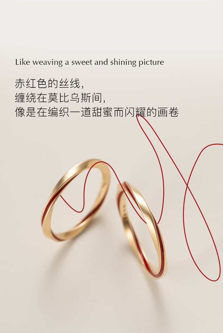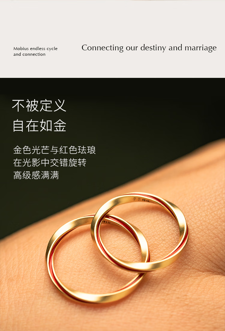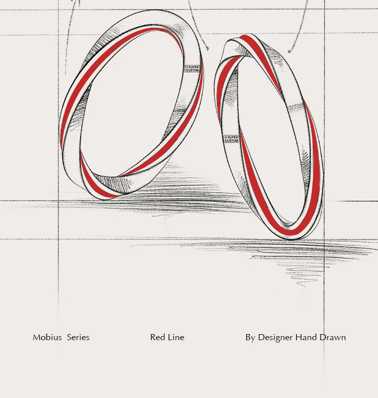 SUPERCUSTOM super custom couple ring 18K gold ring unlimited customization cycle Mobius red line rice ear gold 18K yellow For other ring numbers, please contact customer service