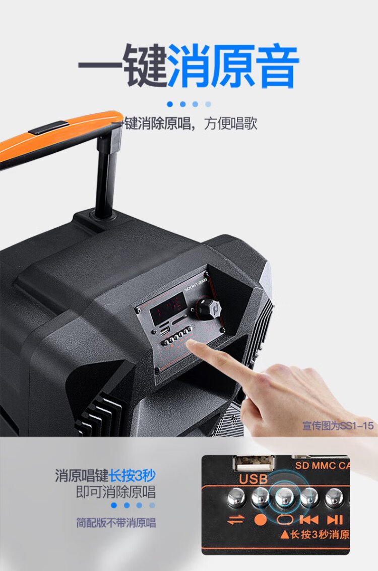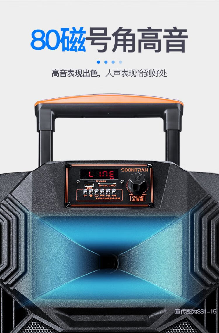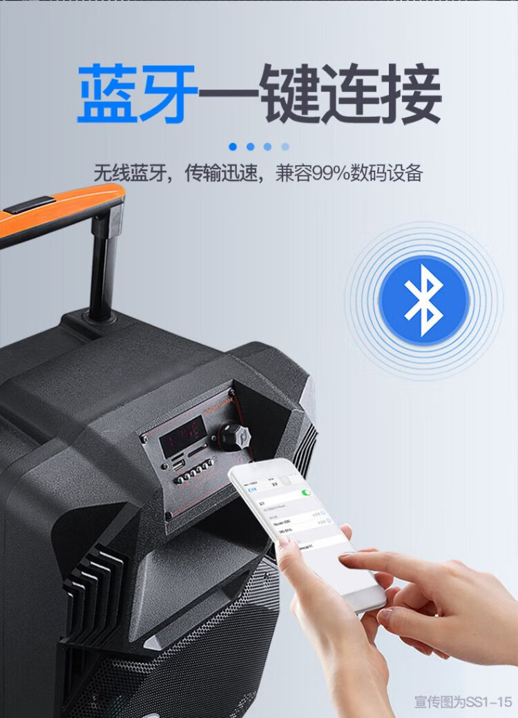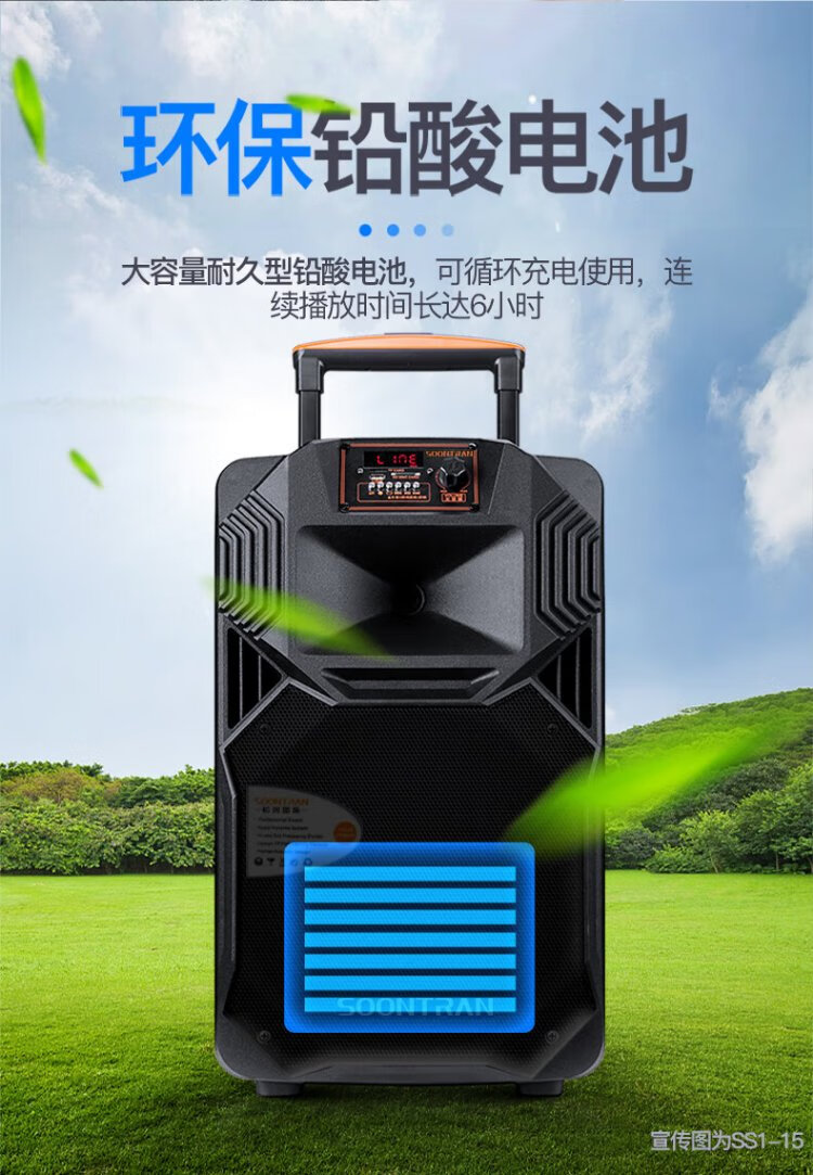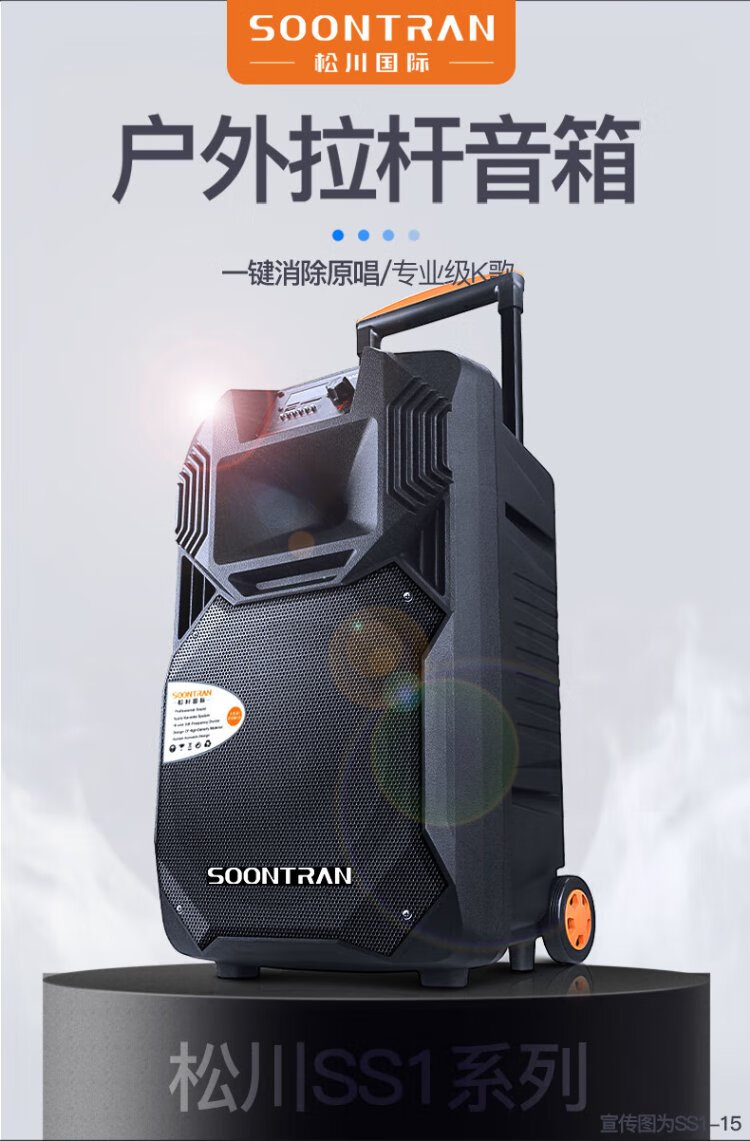 Songchuan International's newly upgraded SS1Pro outdoor square dance audio home Bluetooth high-power subwoofer singing conference outdoor activities portable trolley speaker SS1-15 (15-inch bass) dual microphone gift package