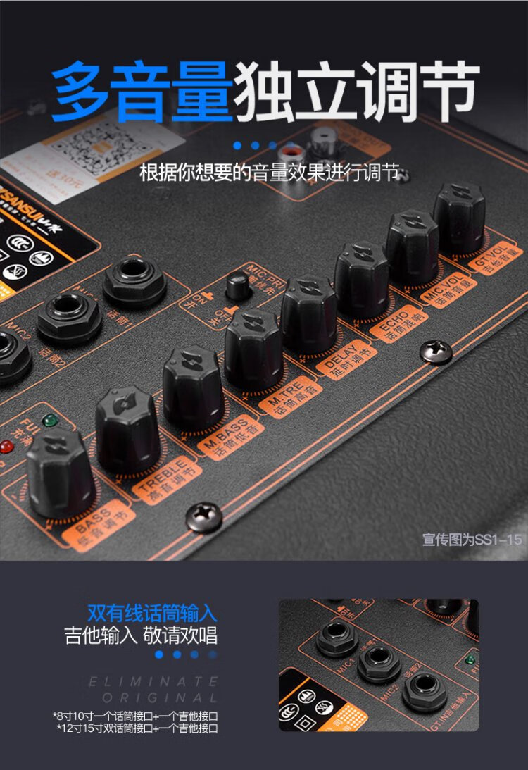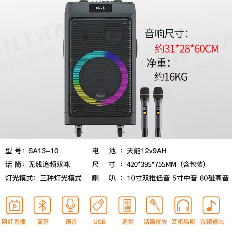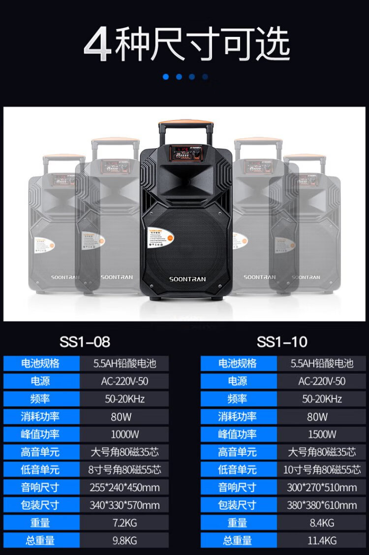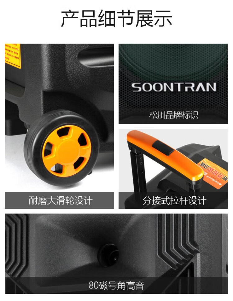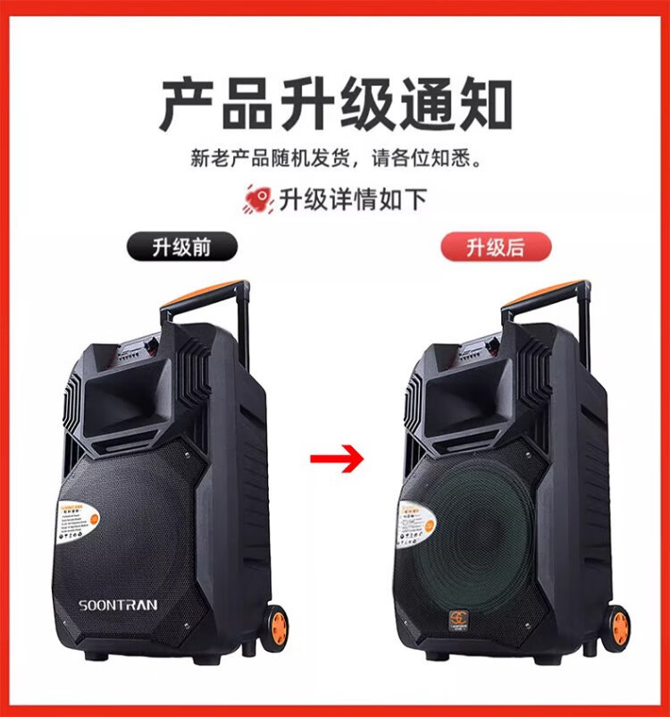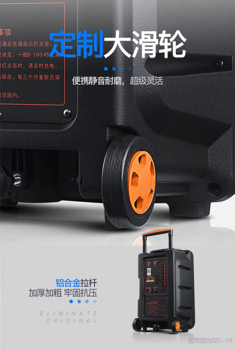 Songchuan International's newly upgraded SS1Pro outdoor square dance audio home Bluetooth high-power subwoofer singing conference outdoor activities portable trolley speaker SS1-15 (15-inch bass) dual microphone gift package