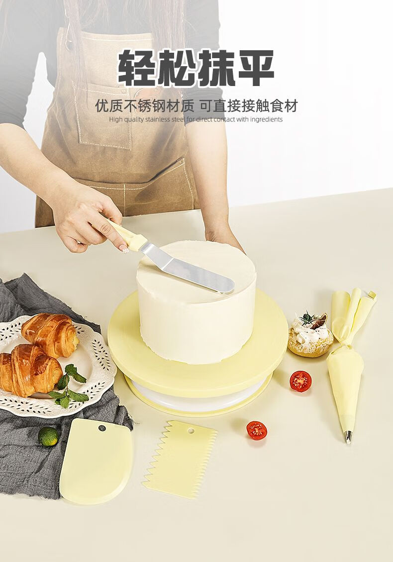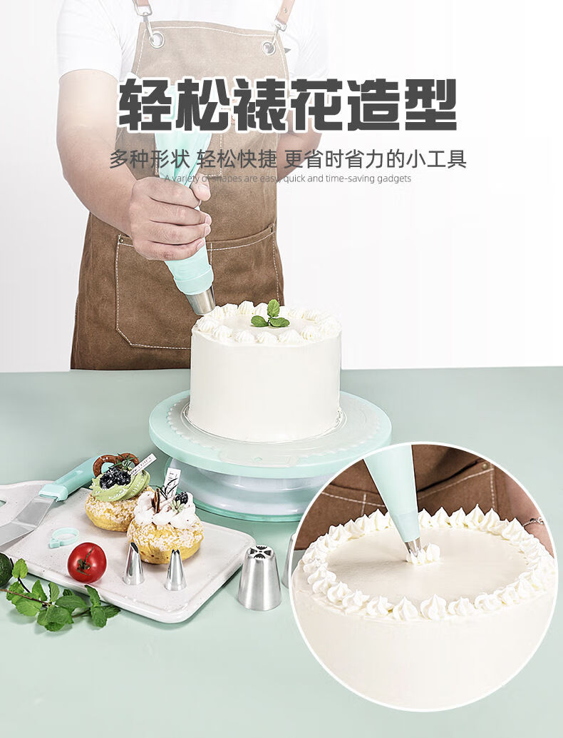 Lailife's new cake turntable rotating table non-slip decorating table set household birthday cake DIY special baking tools macaron pink new turntable set one
